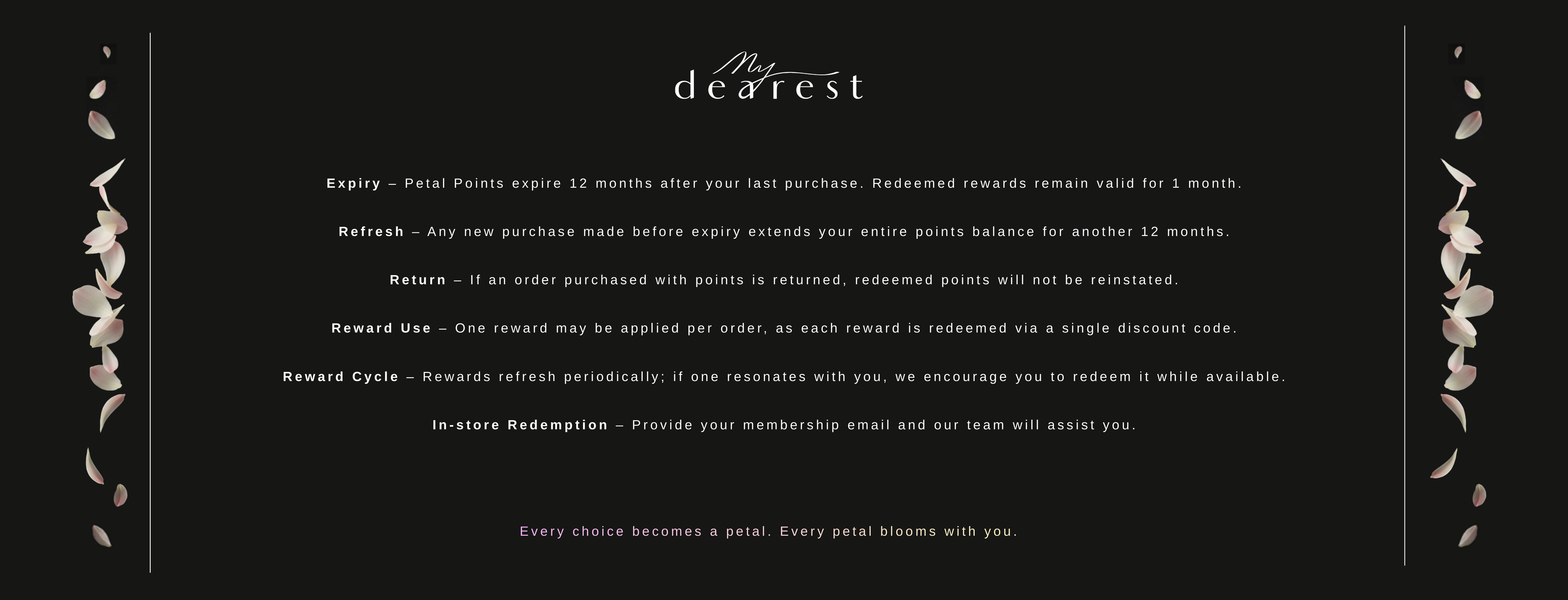 Petal Points are not simply points - they are the gentle unfolding of your journey with My Dearest.