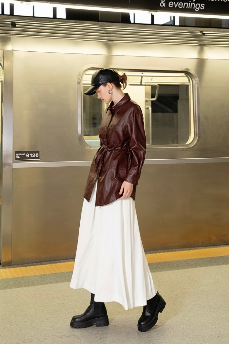 Our Albie shirt is cut from supple leather. Wear yours solo or try it open as a shirt with a pair of leather shorts.