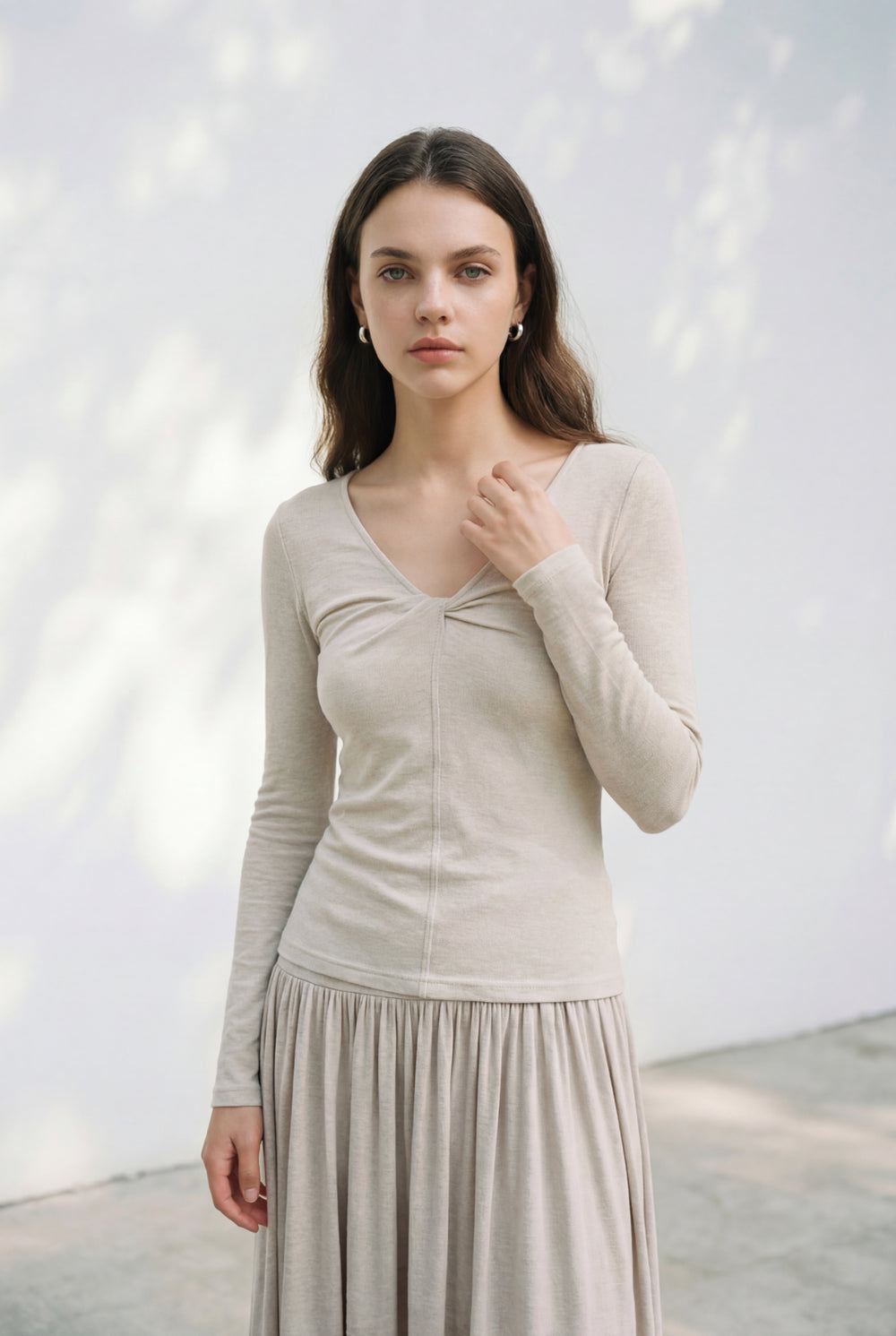 Crafted from a washable wool and lyocell blend in a soft oatmeal hue.