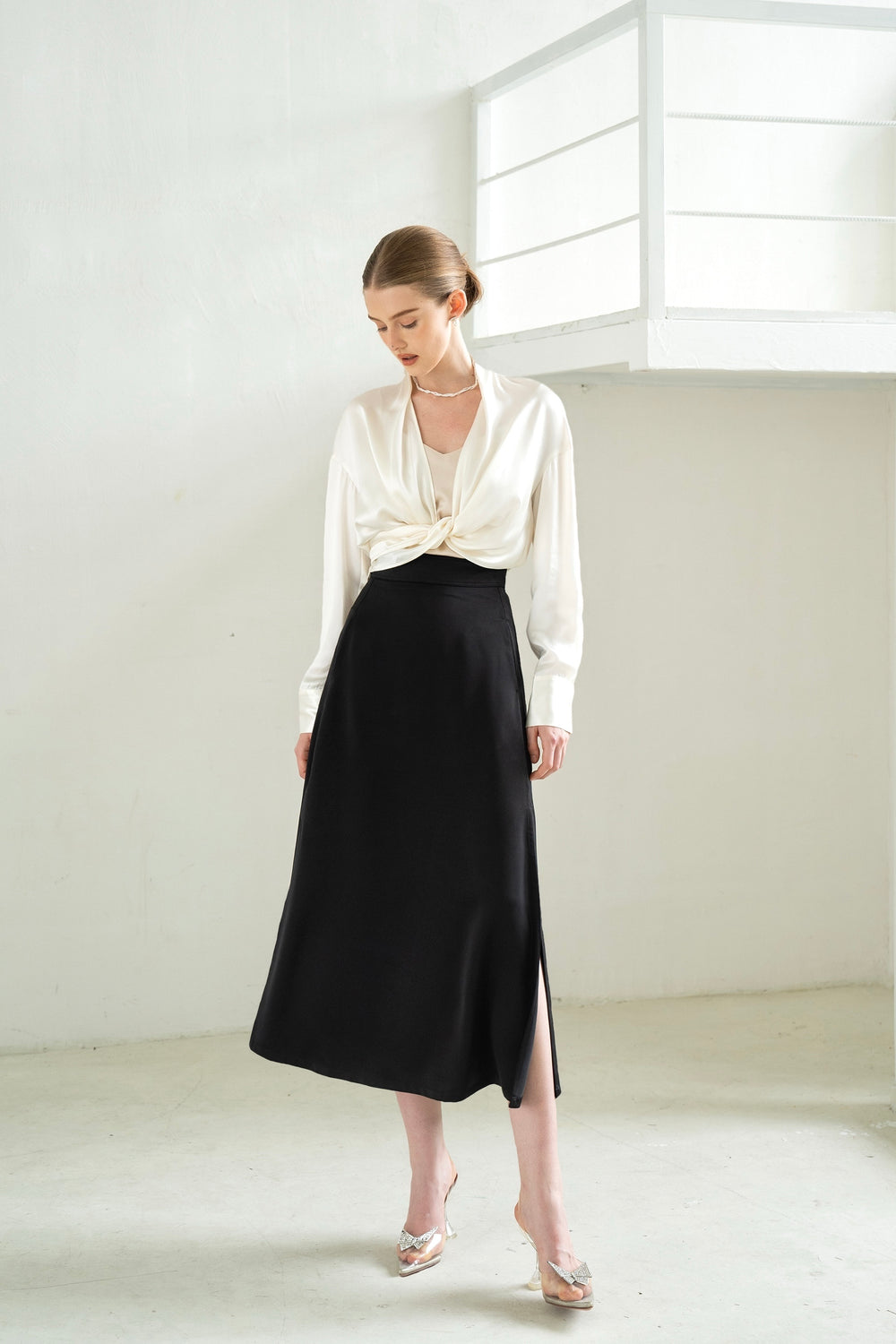 A comeback of our best selling style, we elevated the fabric to lustrous acetate satin.
