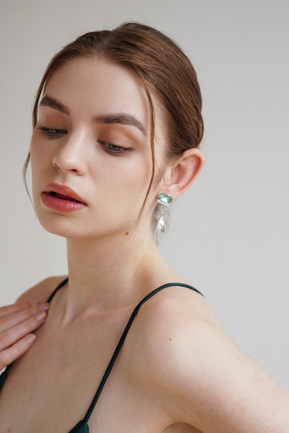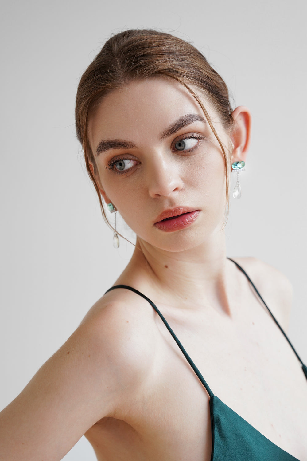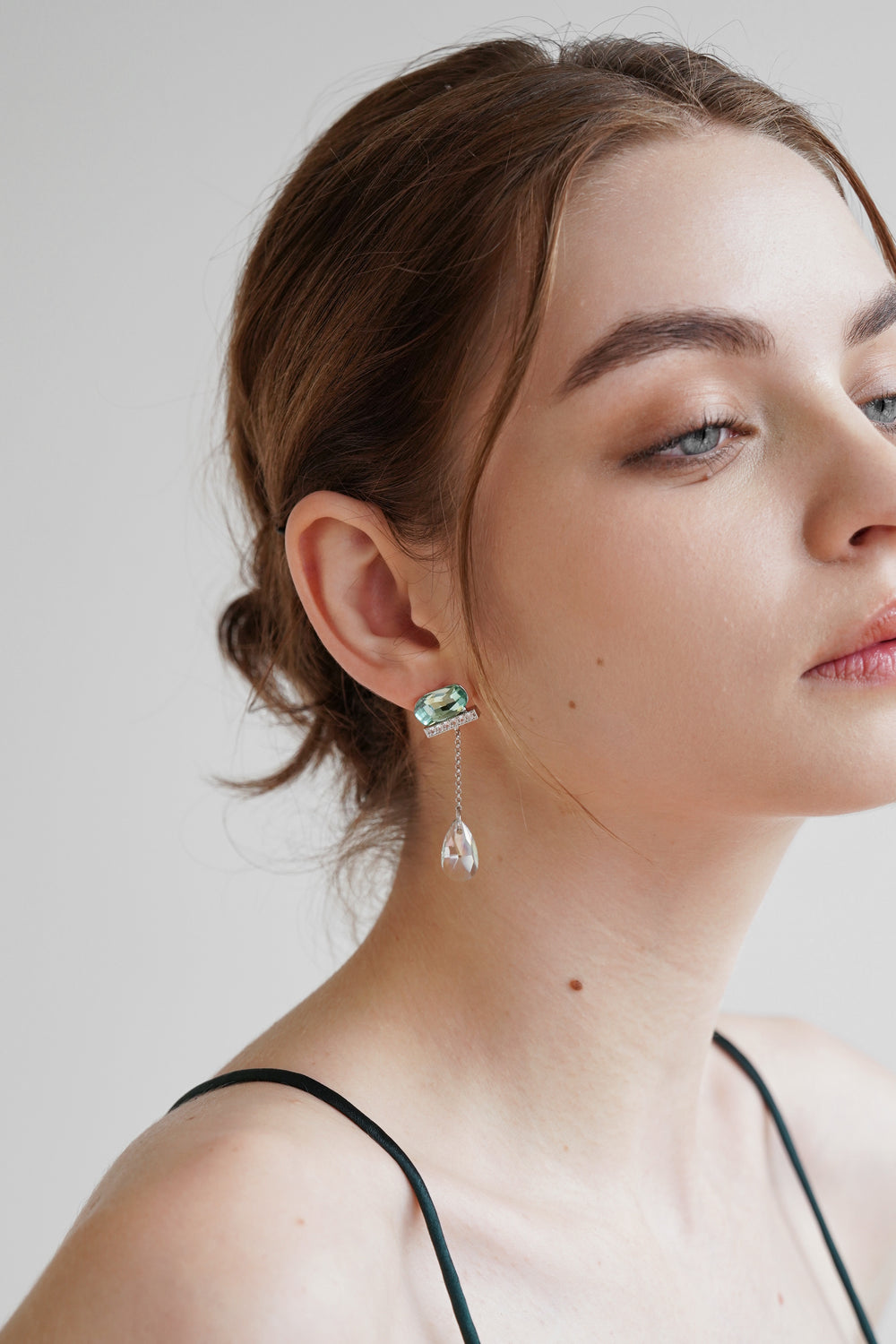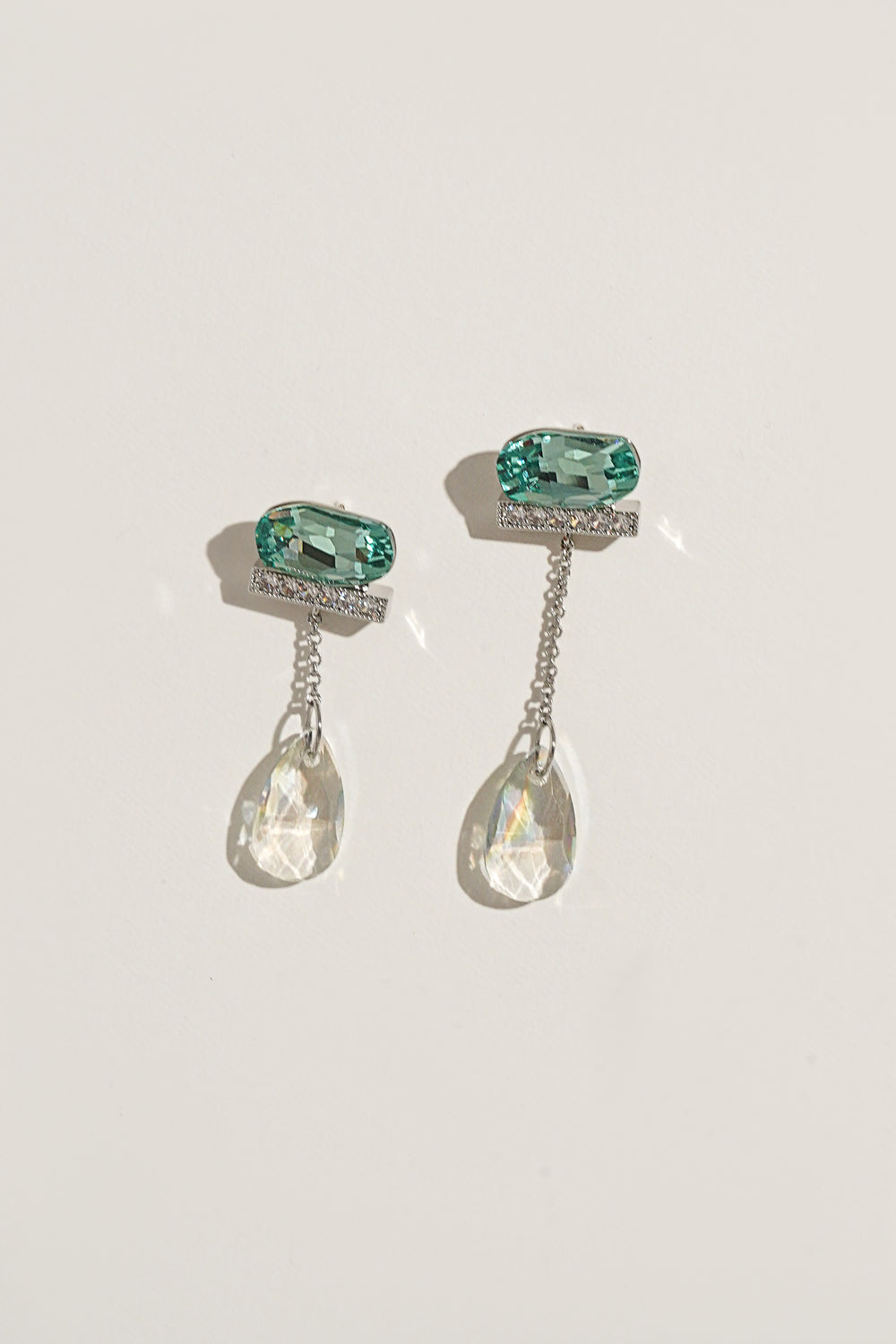 Set with vibrant green gems and have an elongated drop tipped with dazzling zircon.
