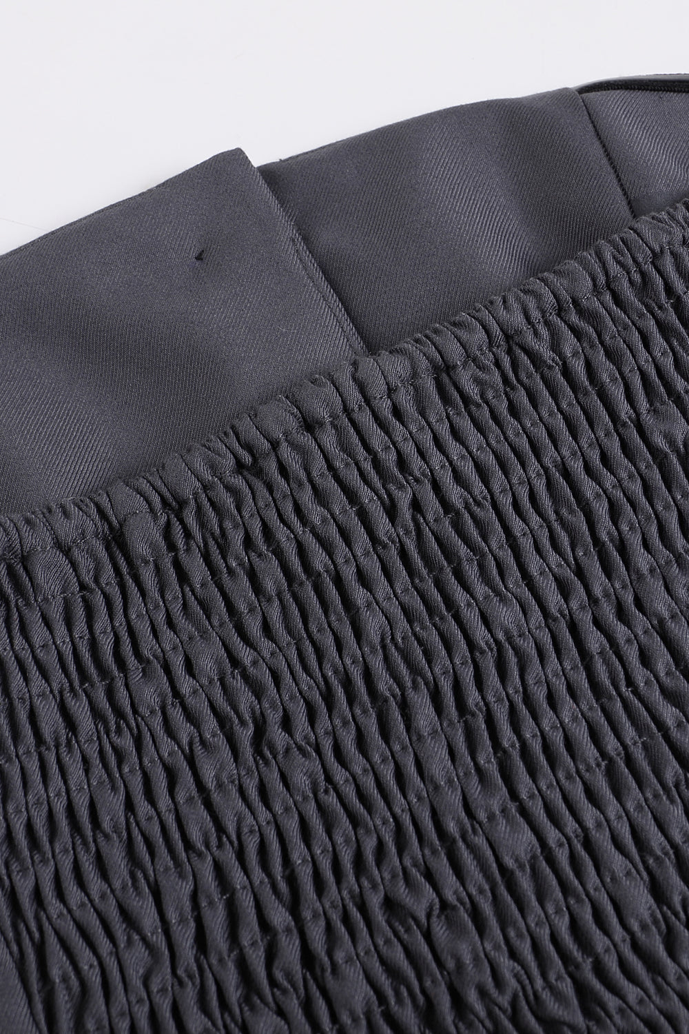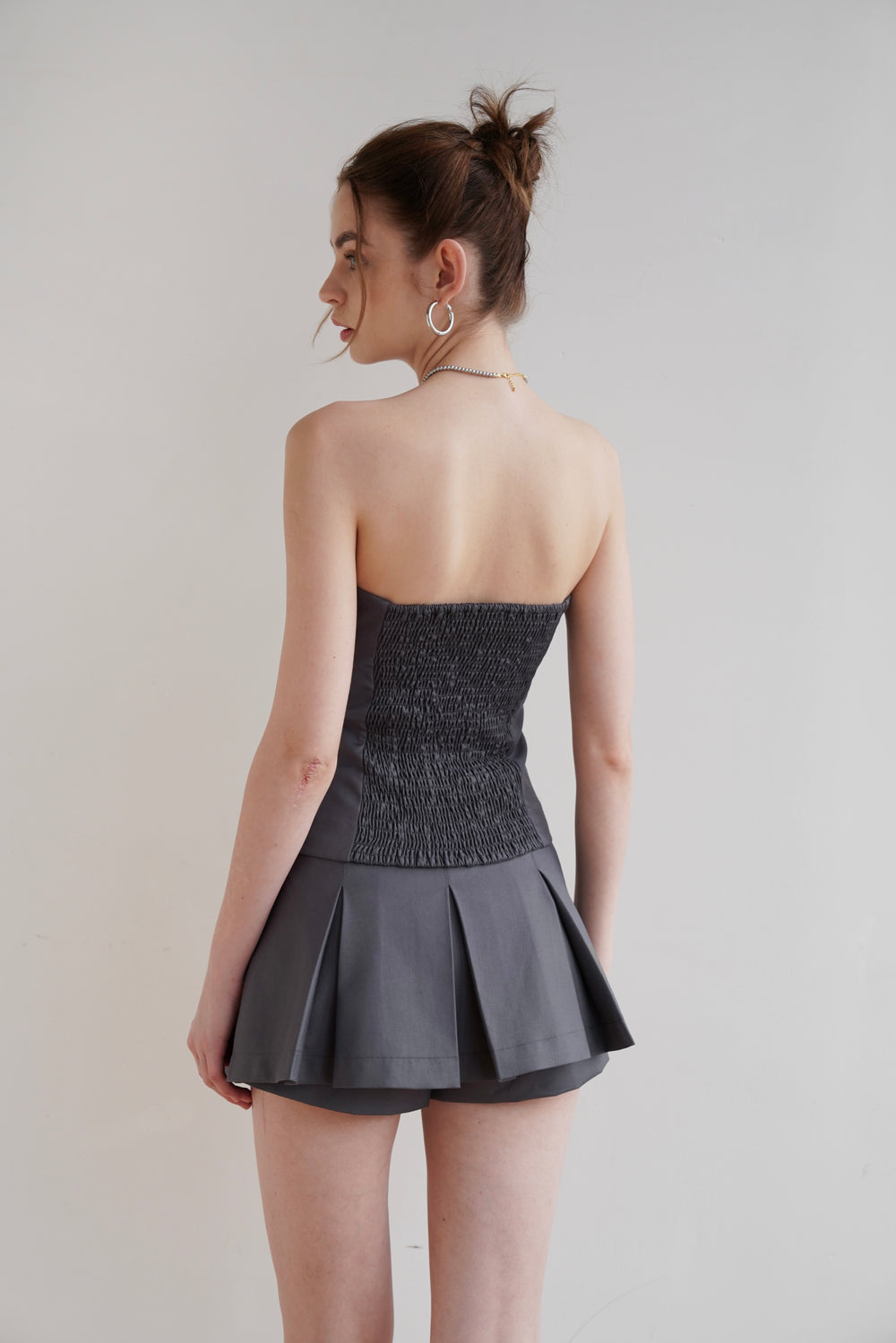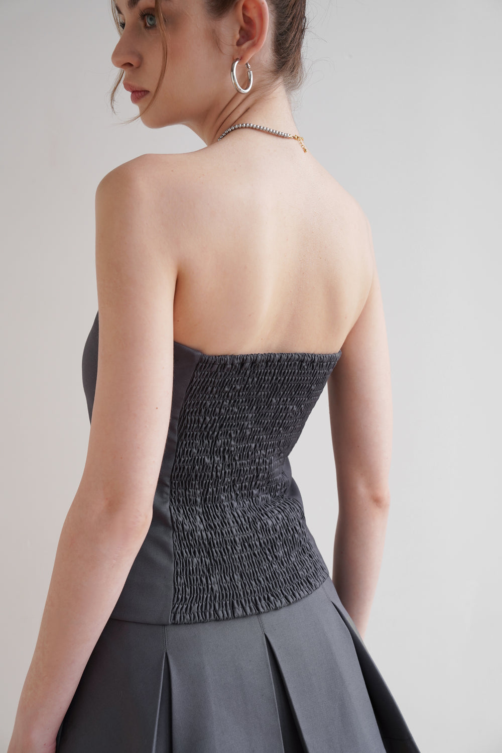 90s-inspired take on minimalism, shirred at the back for a figure.