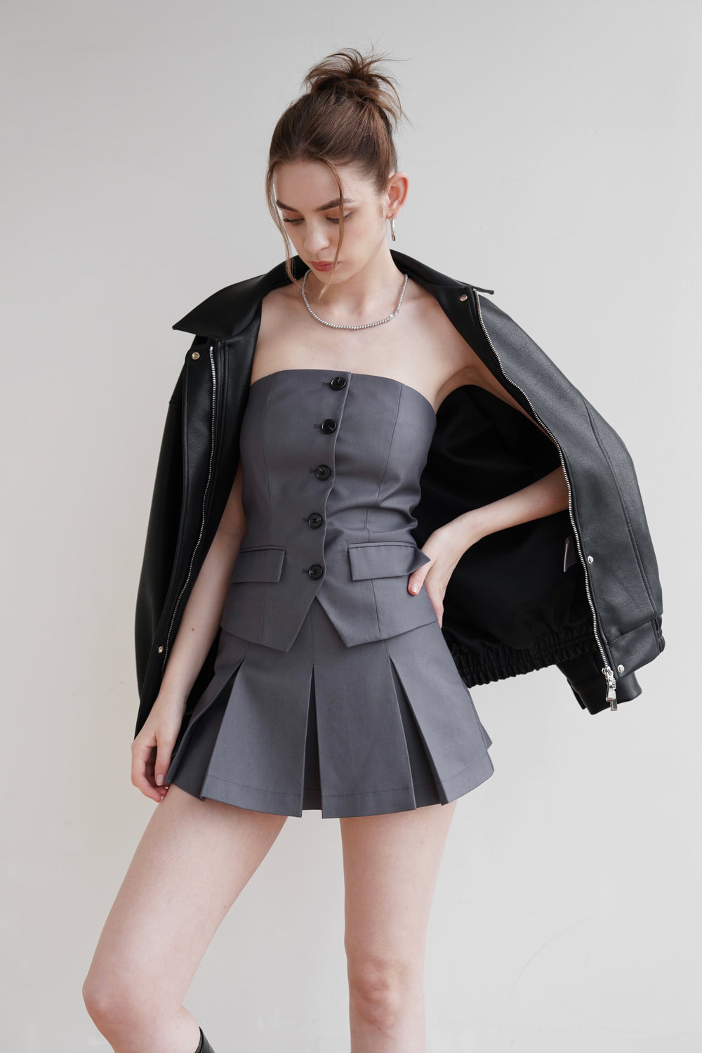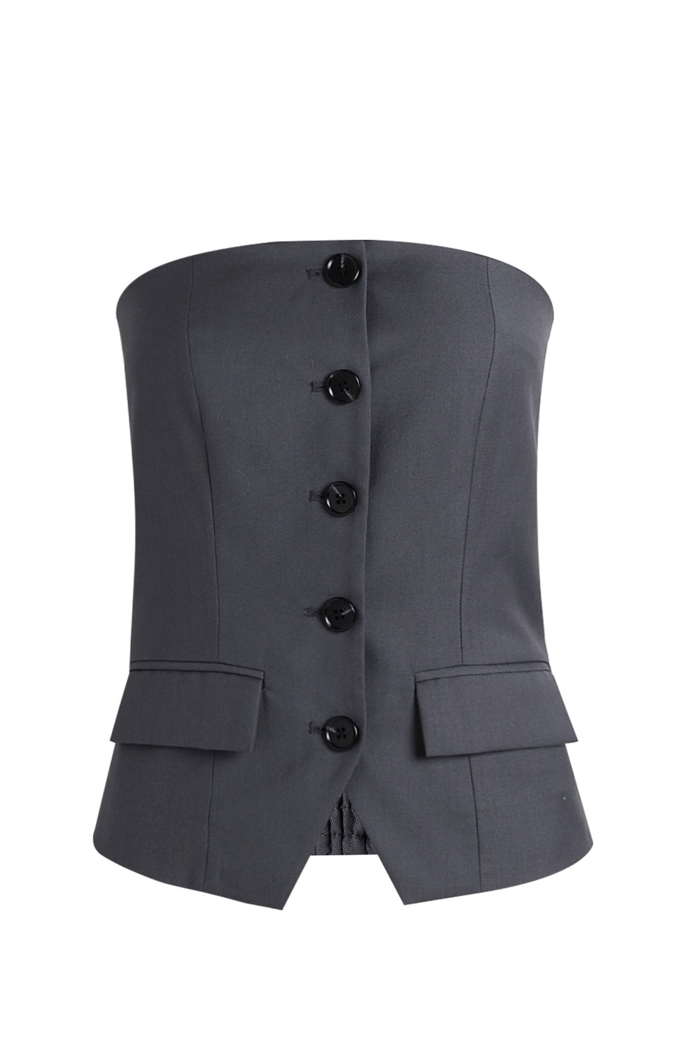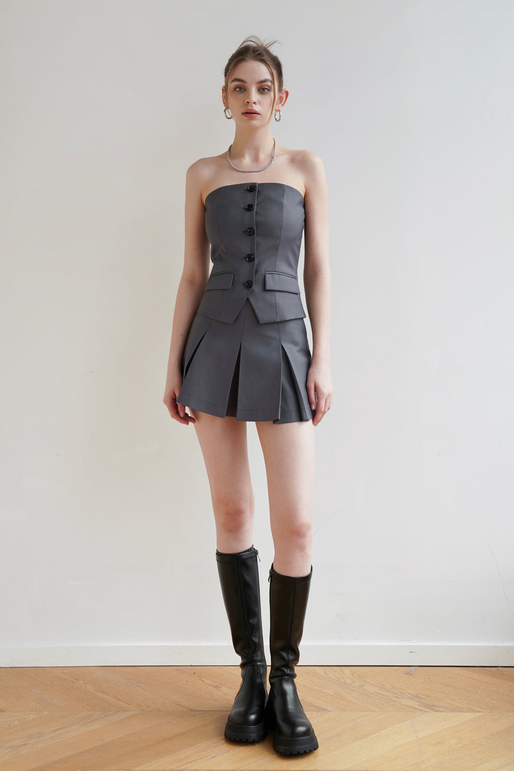 90s-inspired take on minimalism, shirred at the back for a figure.