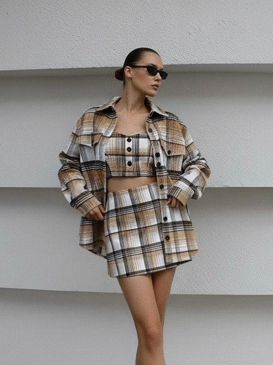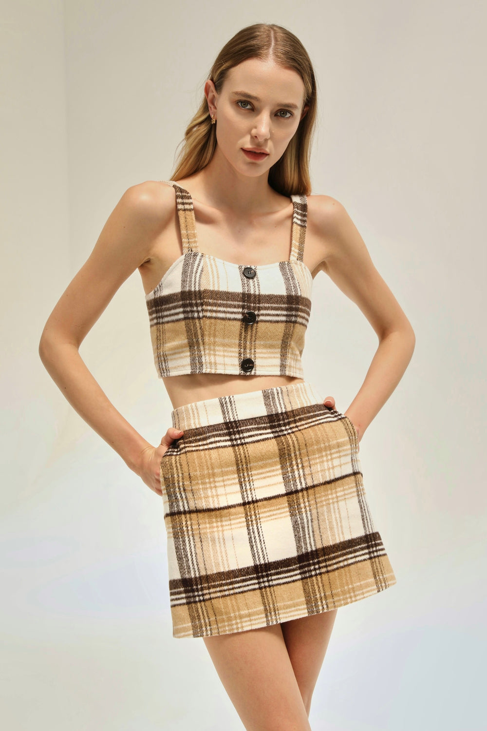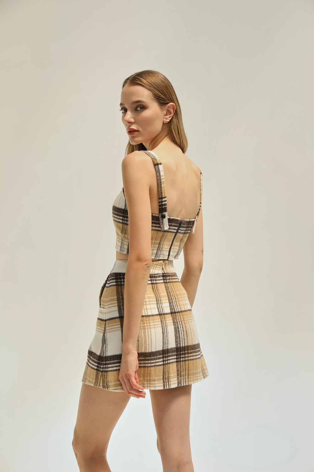Bustier top are a key piece this season. This cropped camisole style is made from checke