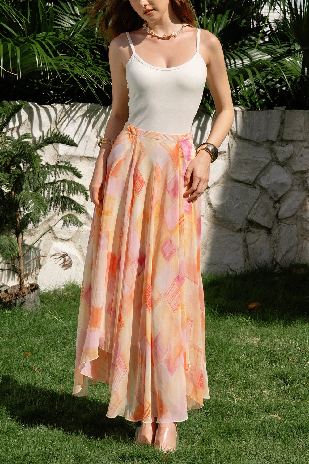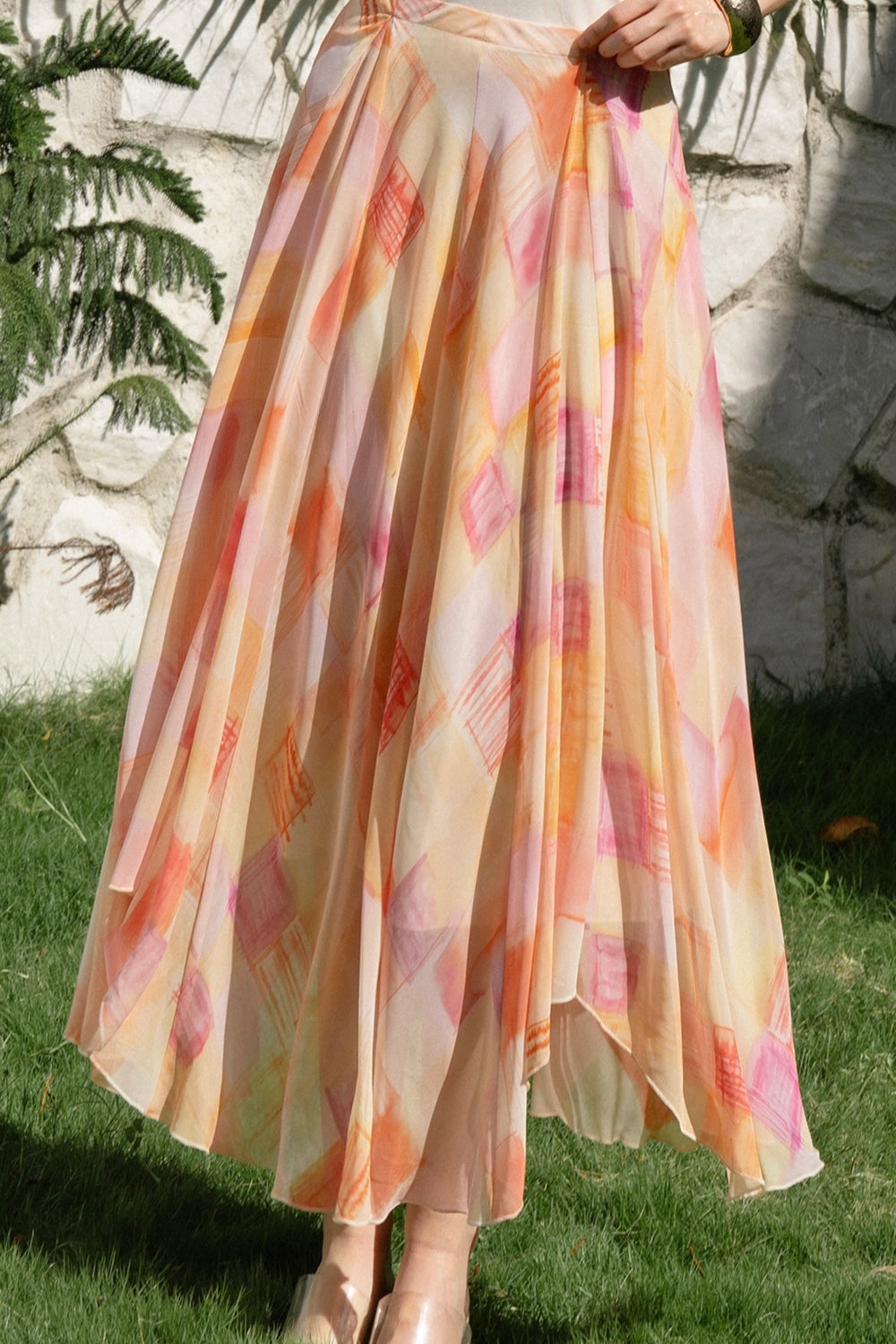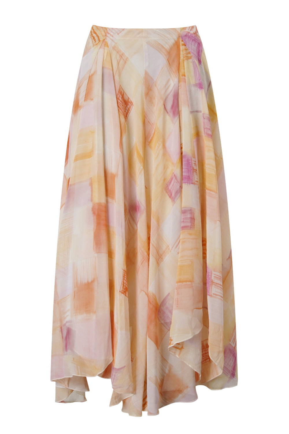 Dopamine skirt moves effortlessly, a combination of construction and floaty fabric.