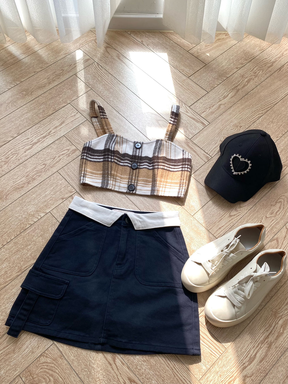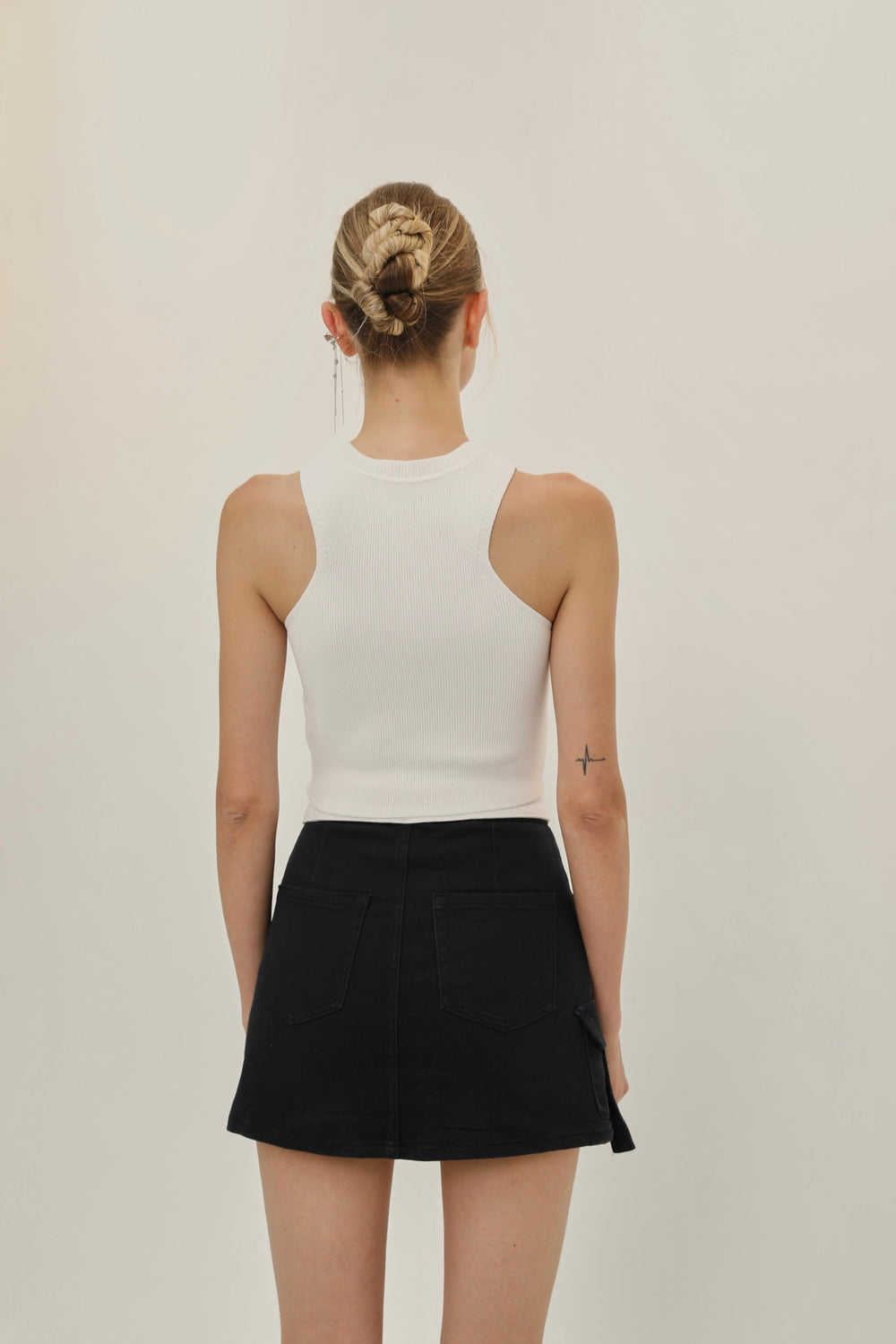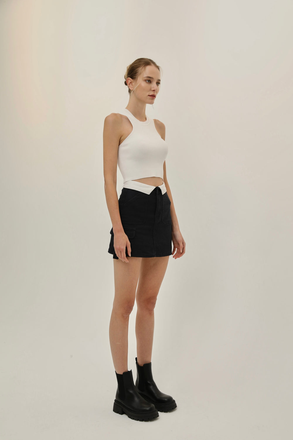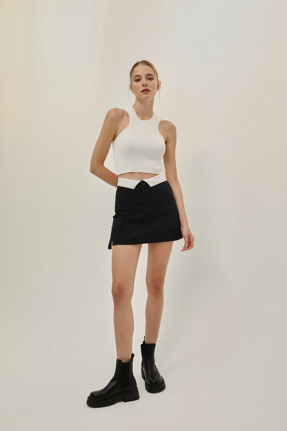 Inspired by utilitarian design, our Dusk mini skirt features cargo pockets.