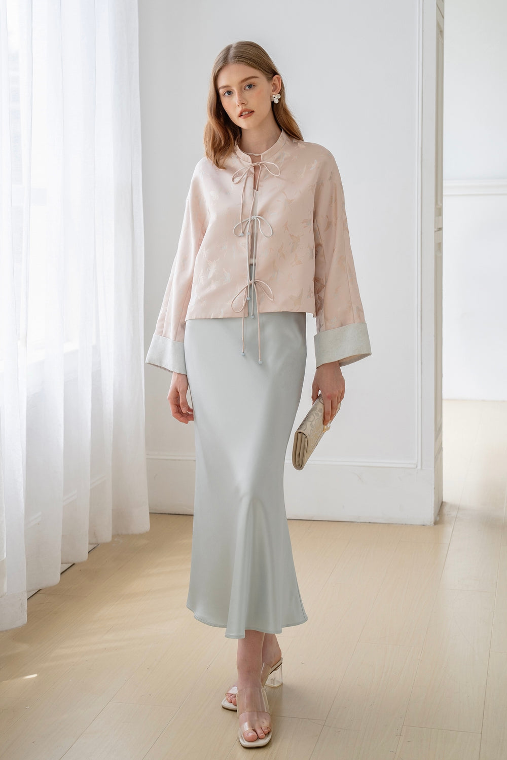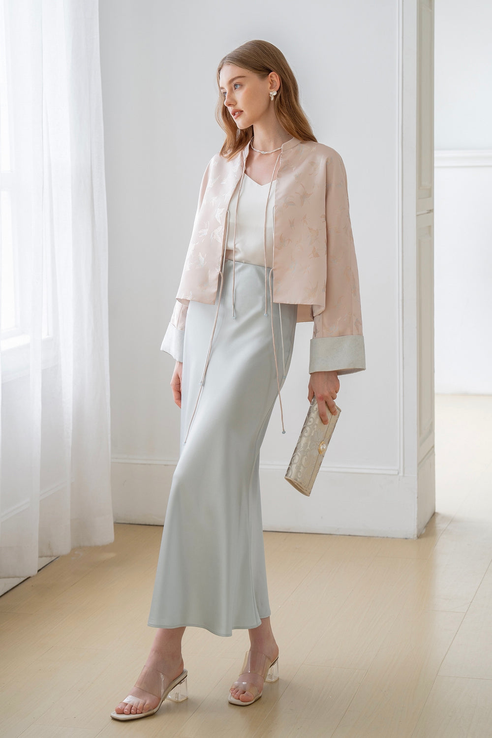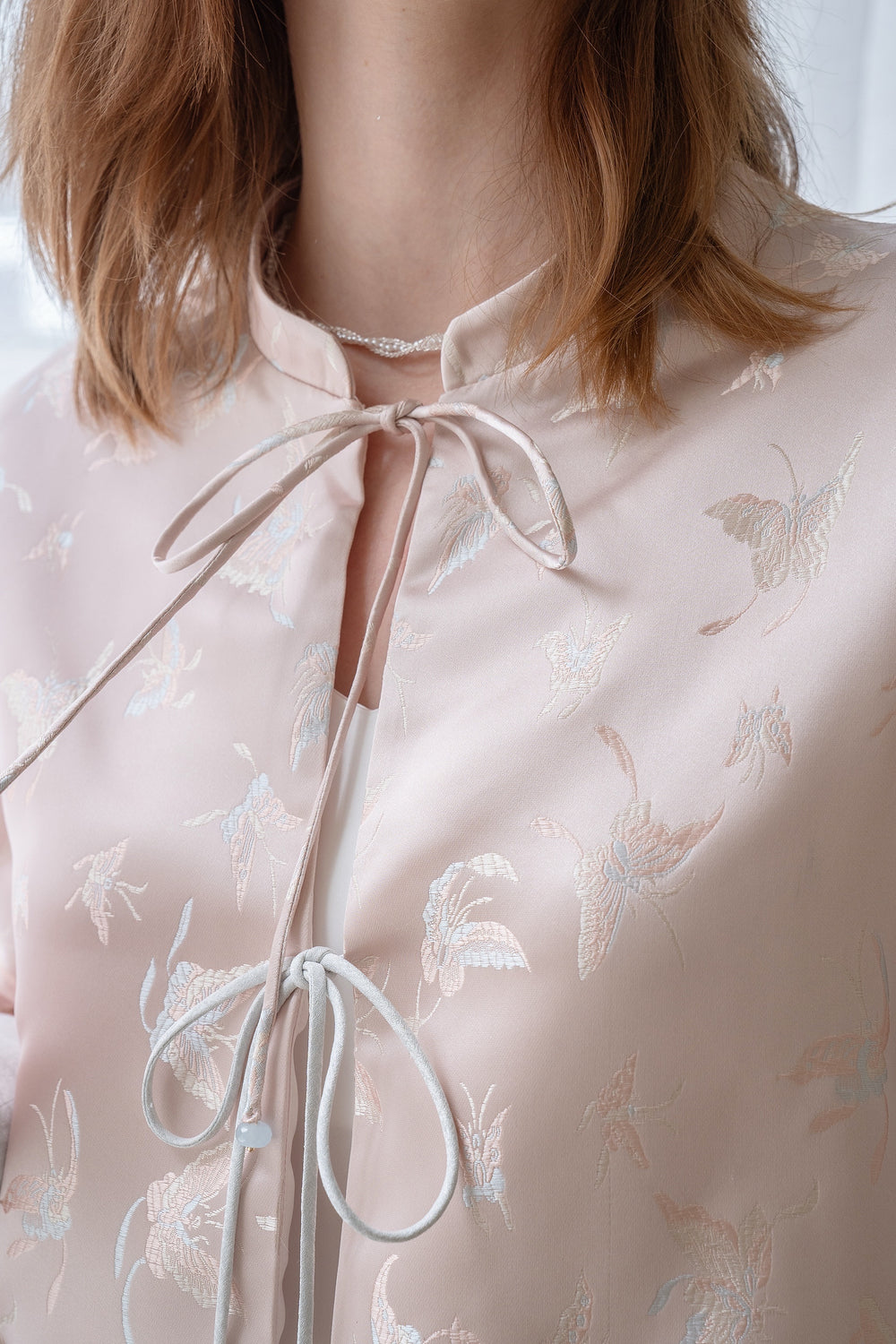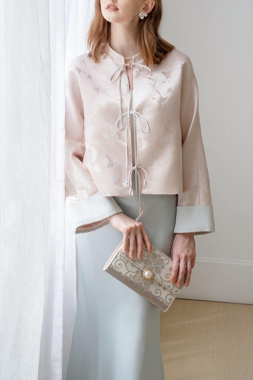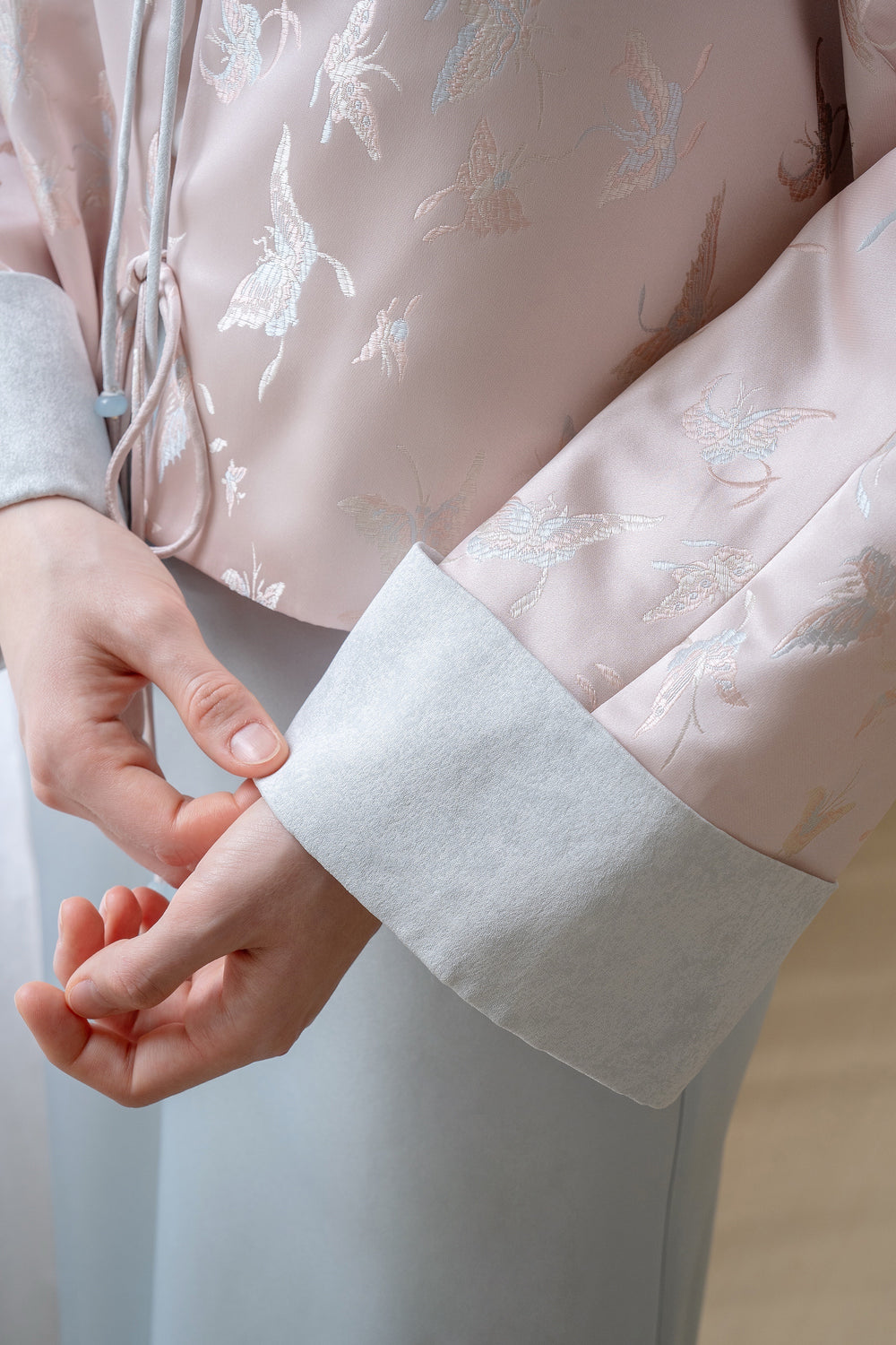 Inspired by Tang dynasty, It has a loose fit and slightly cropped length.