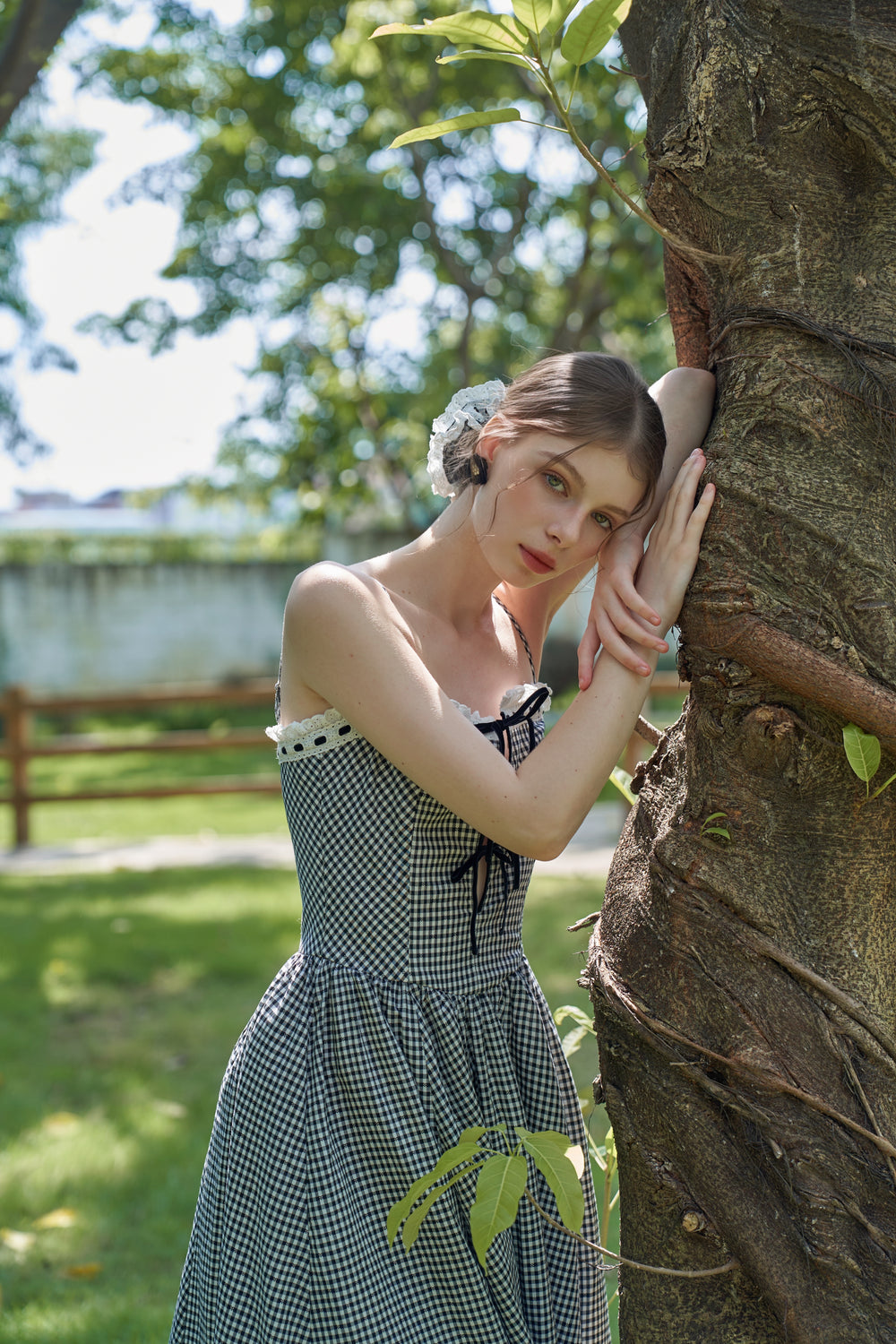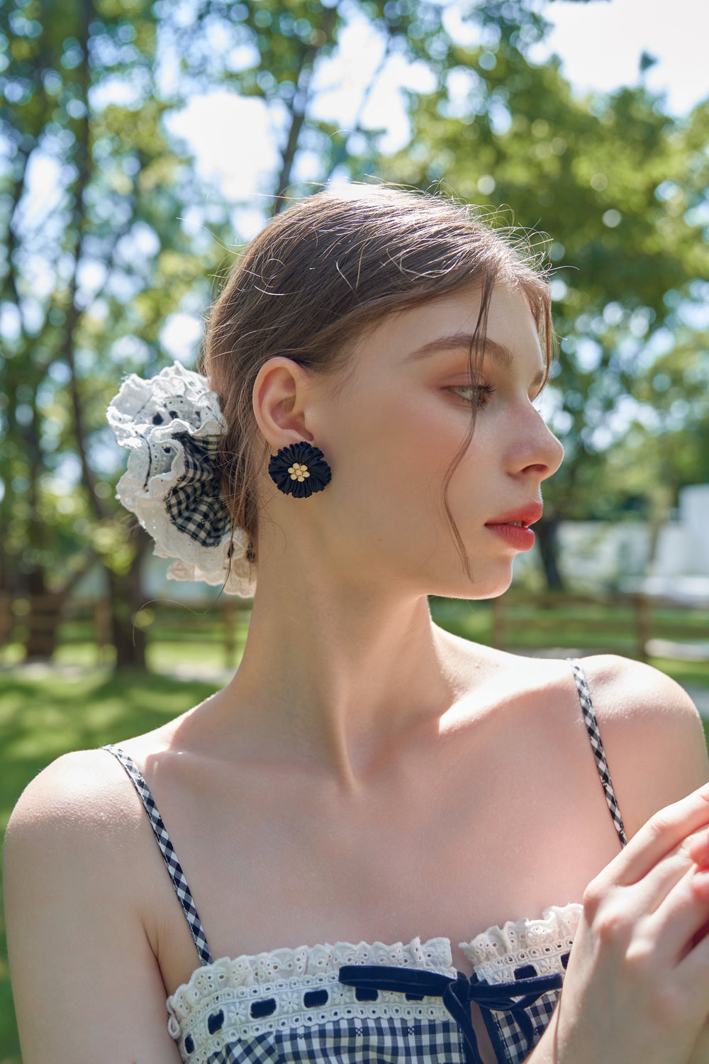 Our Eliza hair tie is made from classic gingham checks for a vintage vibe.
