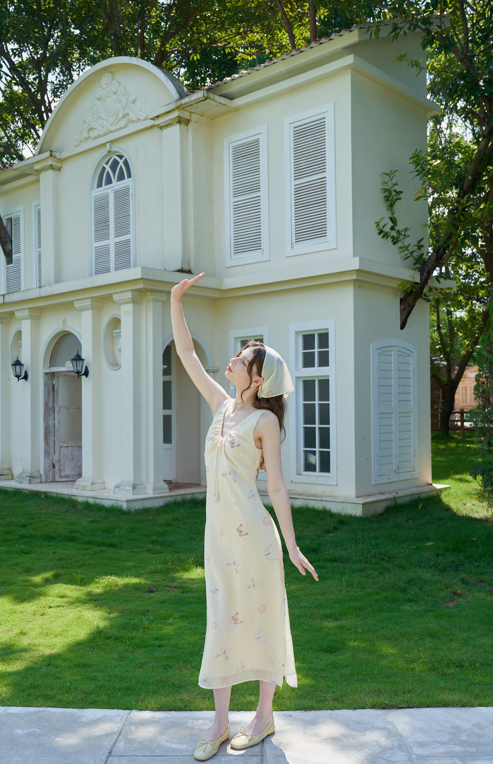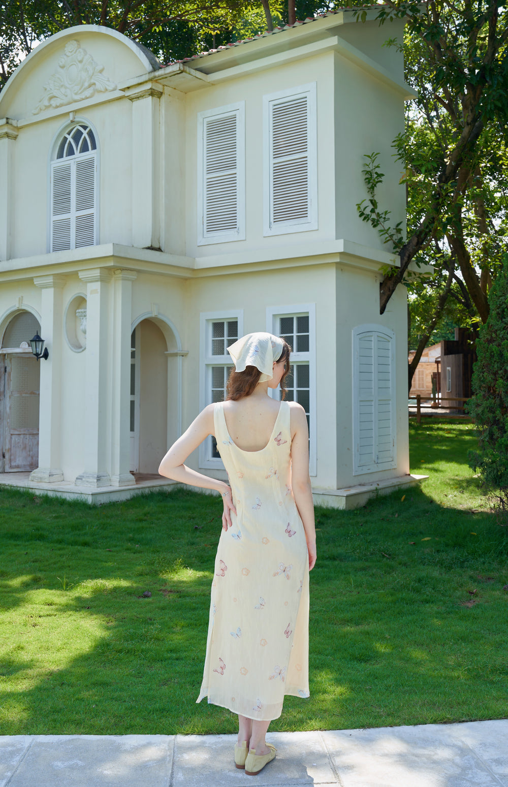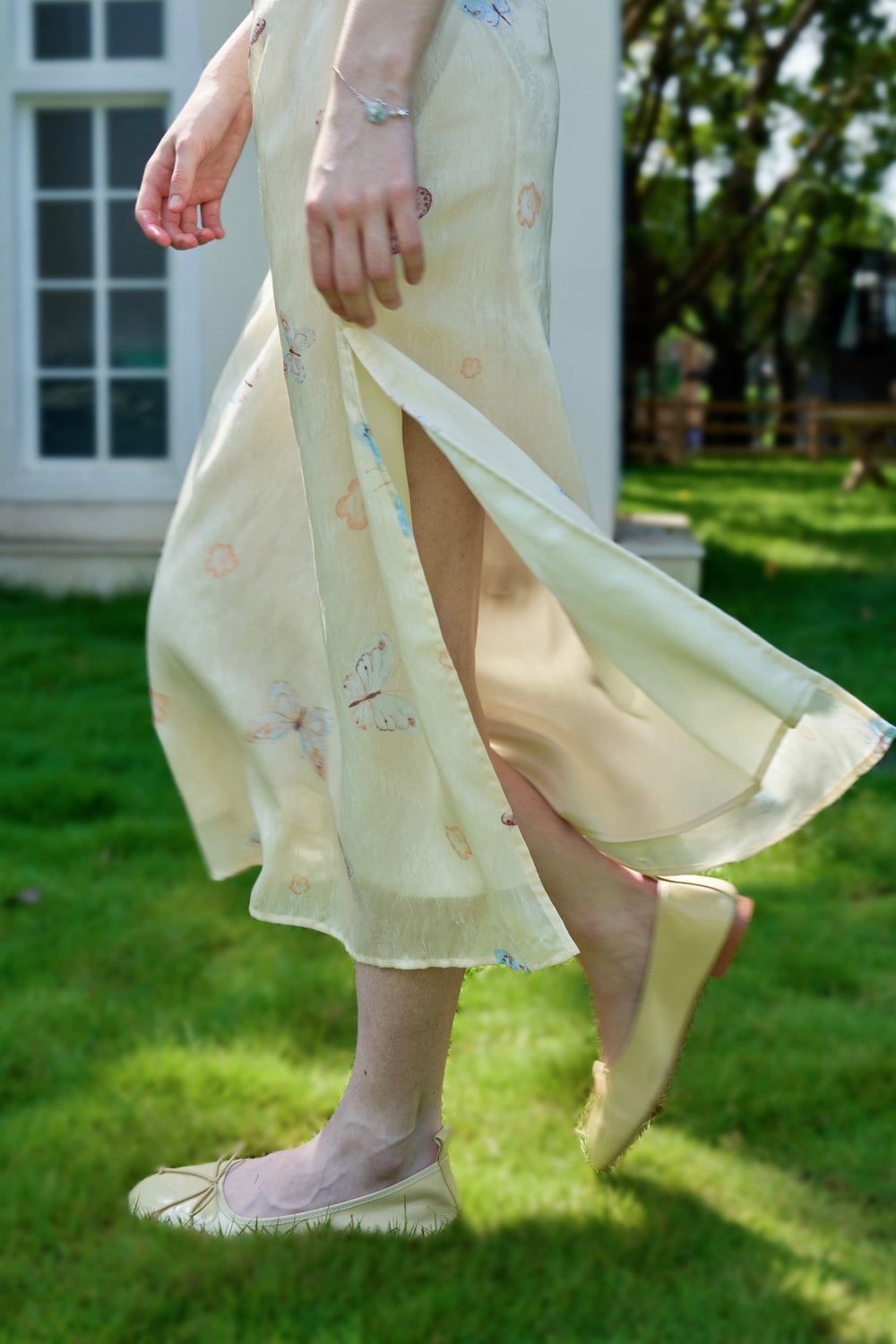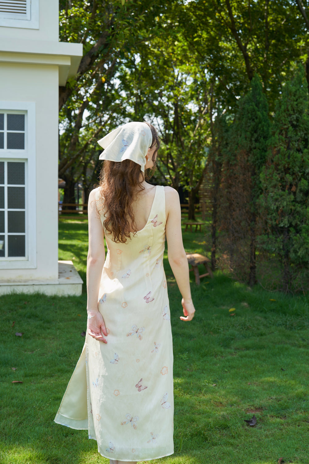 Our English Garden dress is printed with colourful, lifelike butterflies.