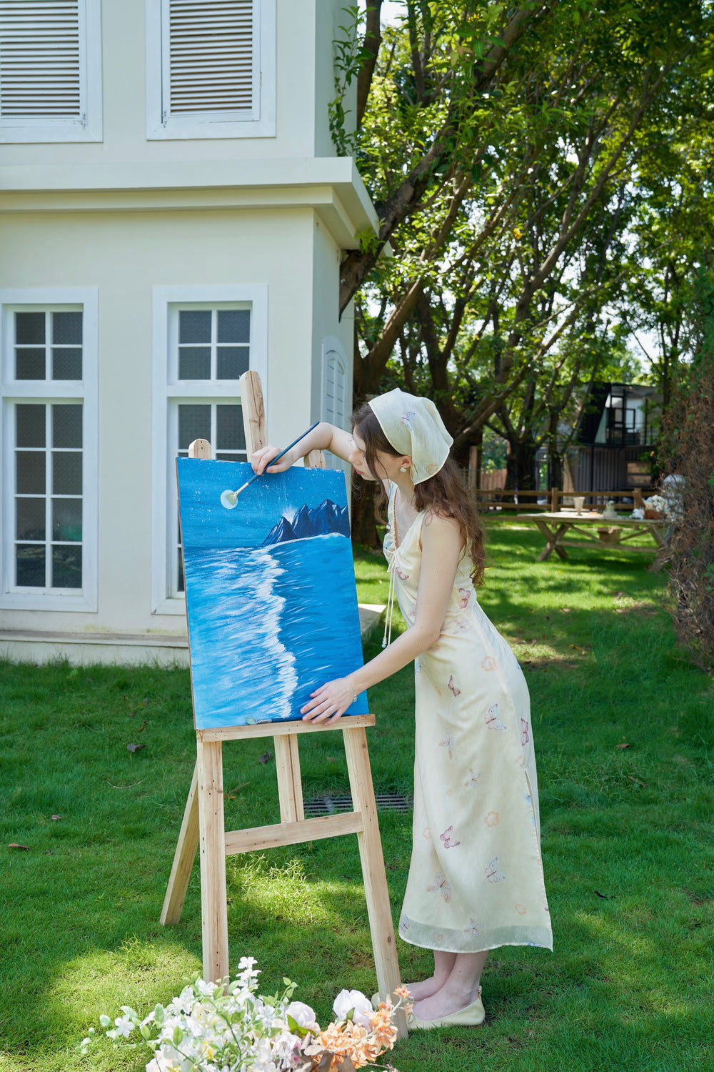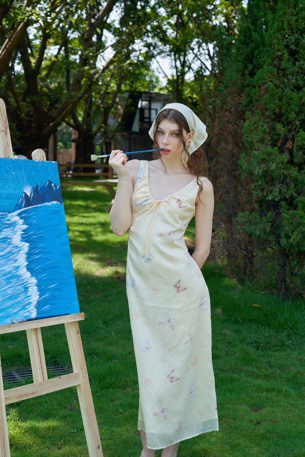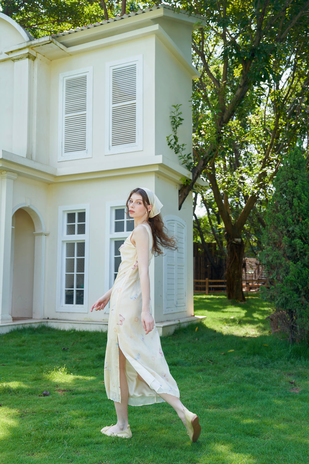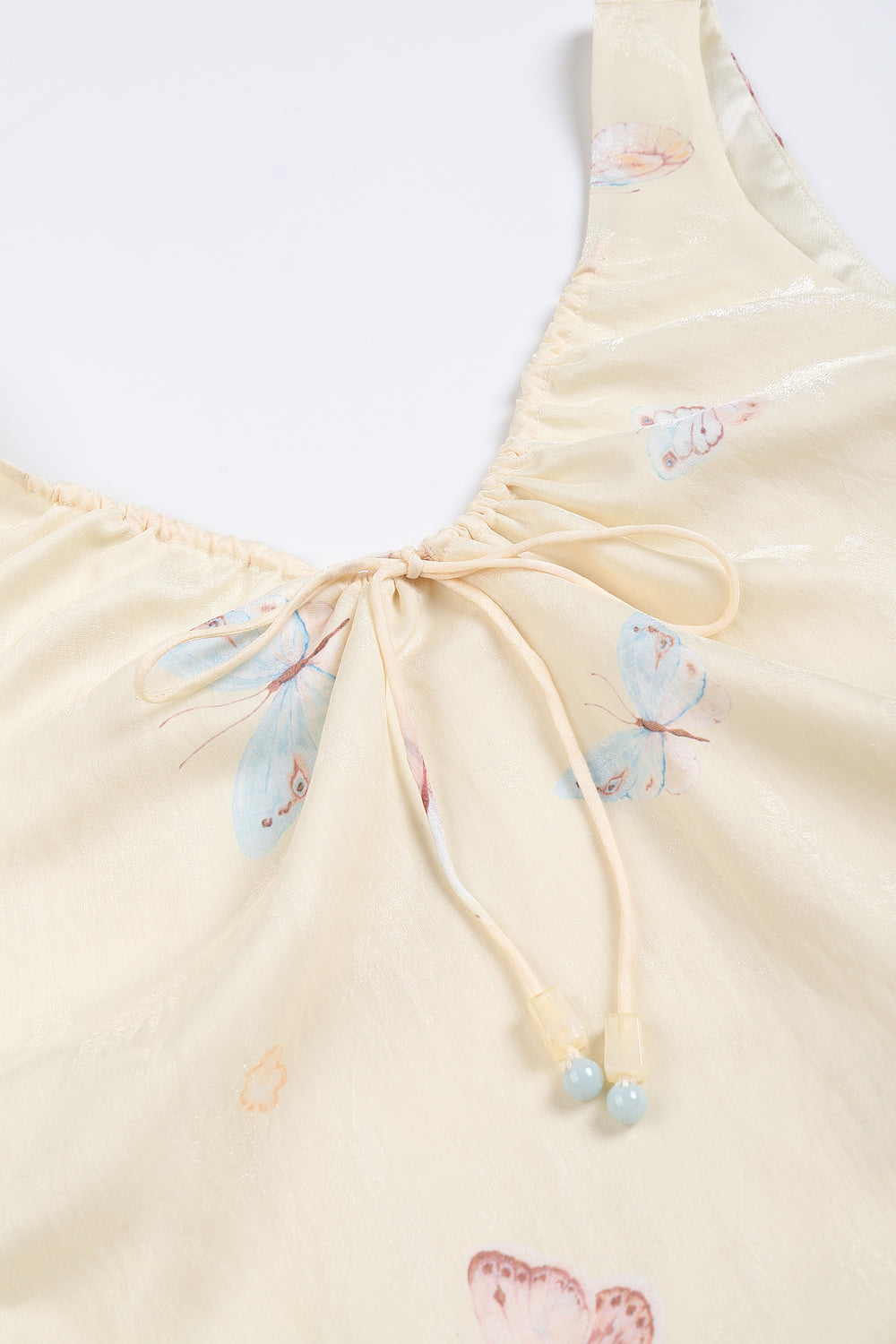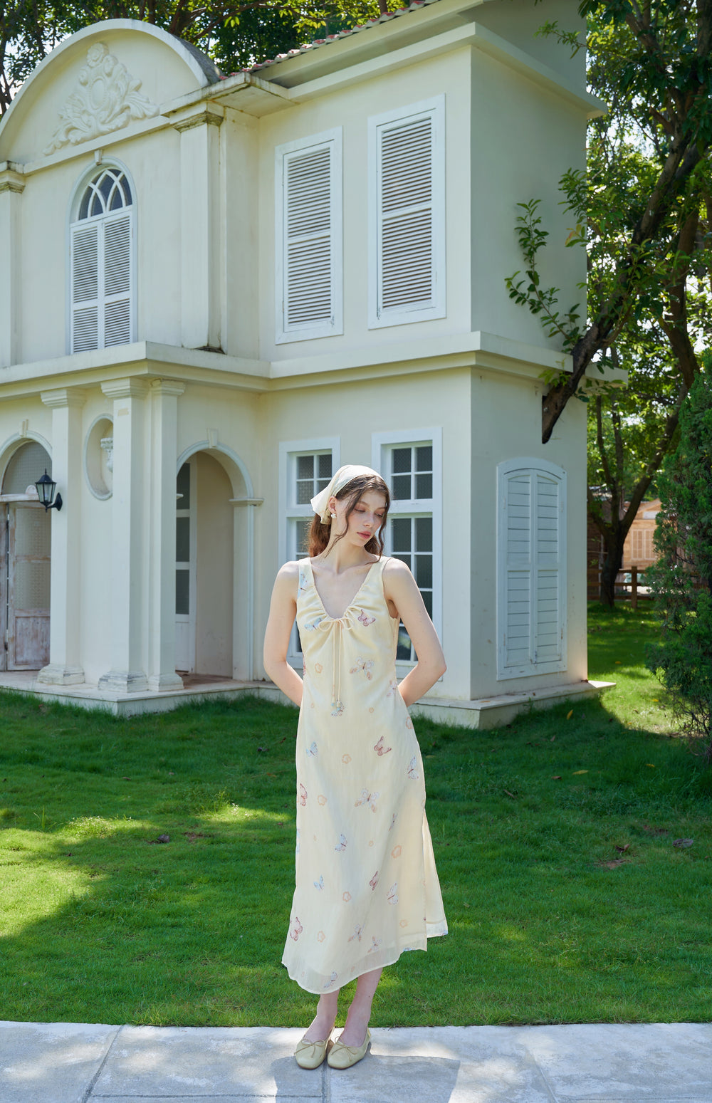 Our English Garden dress is printed with colourful, lifelike butterflies.
