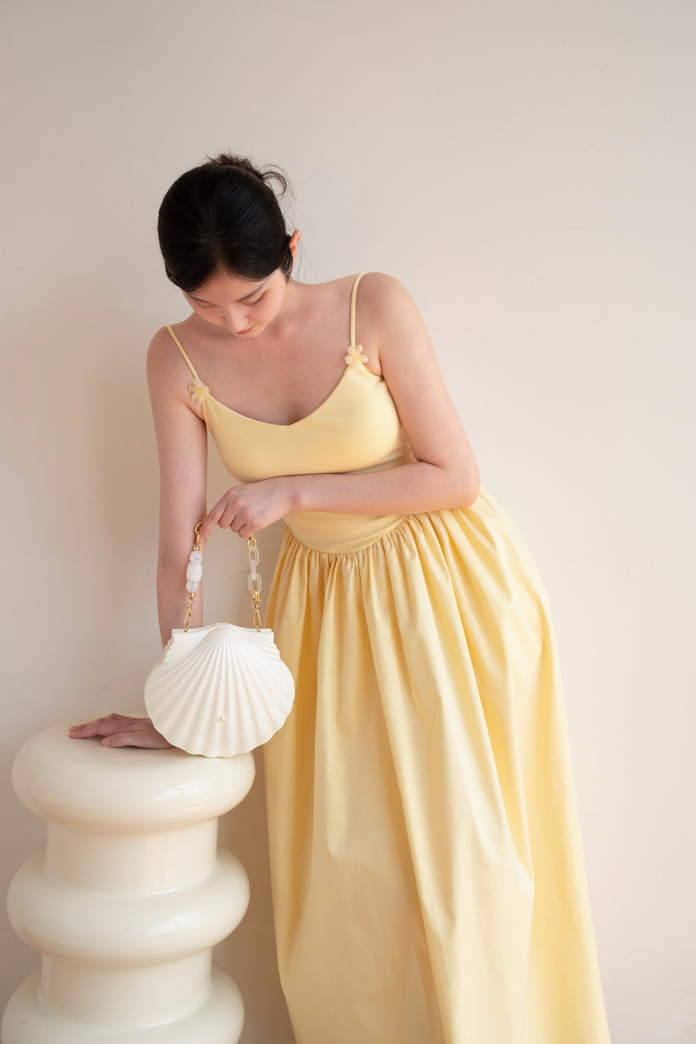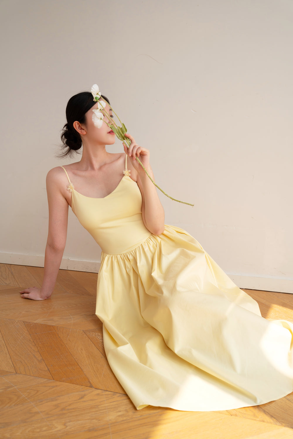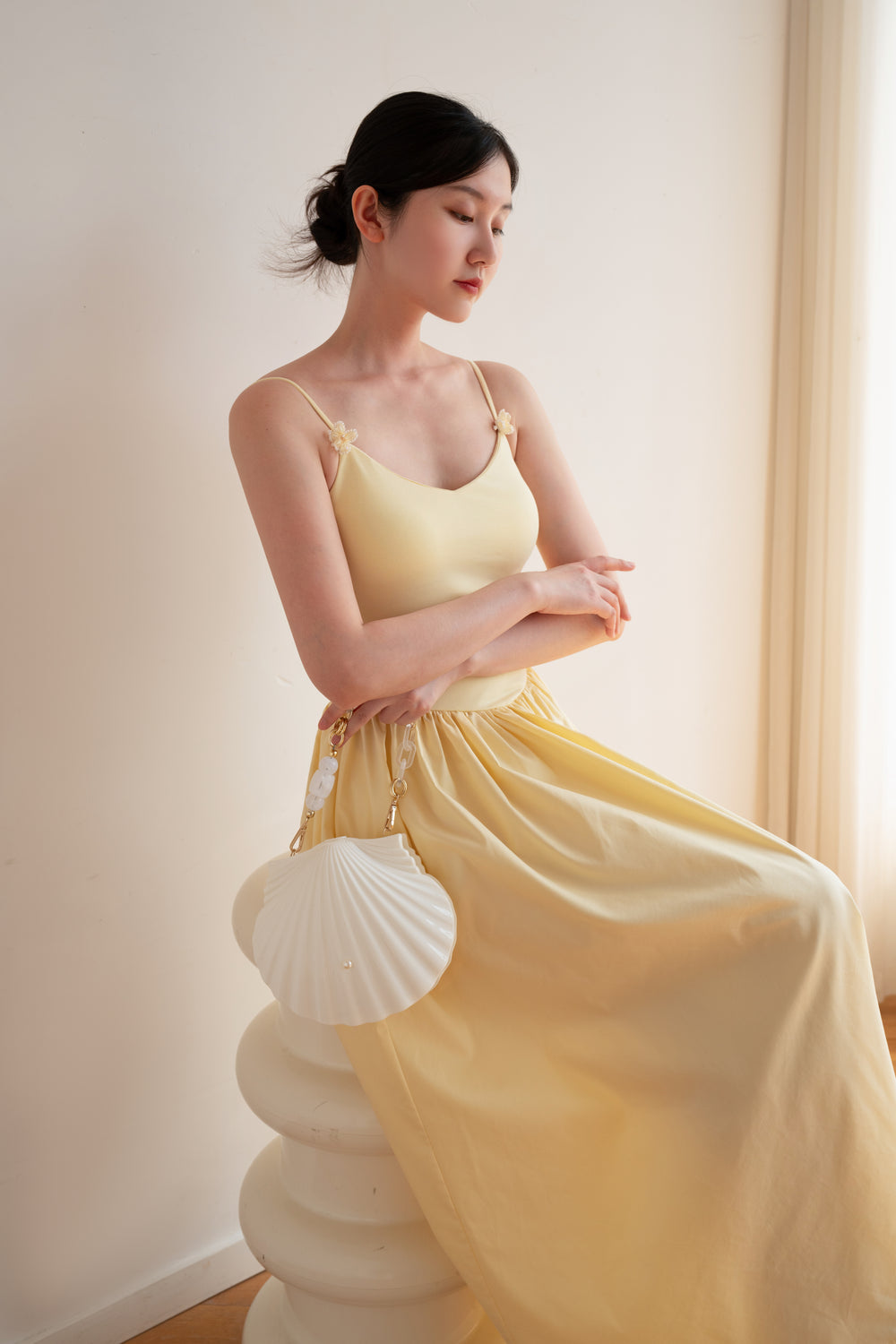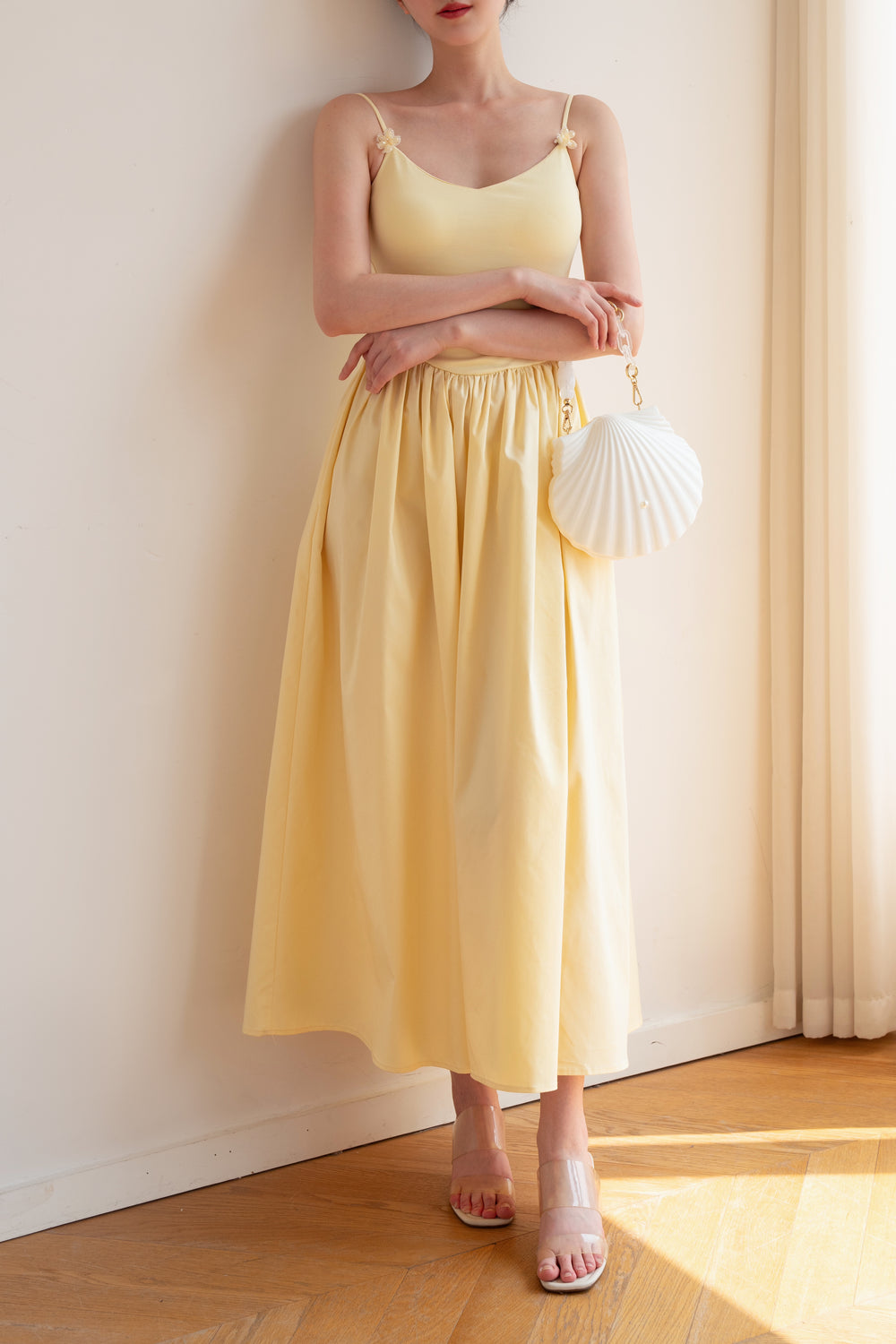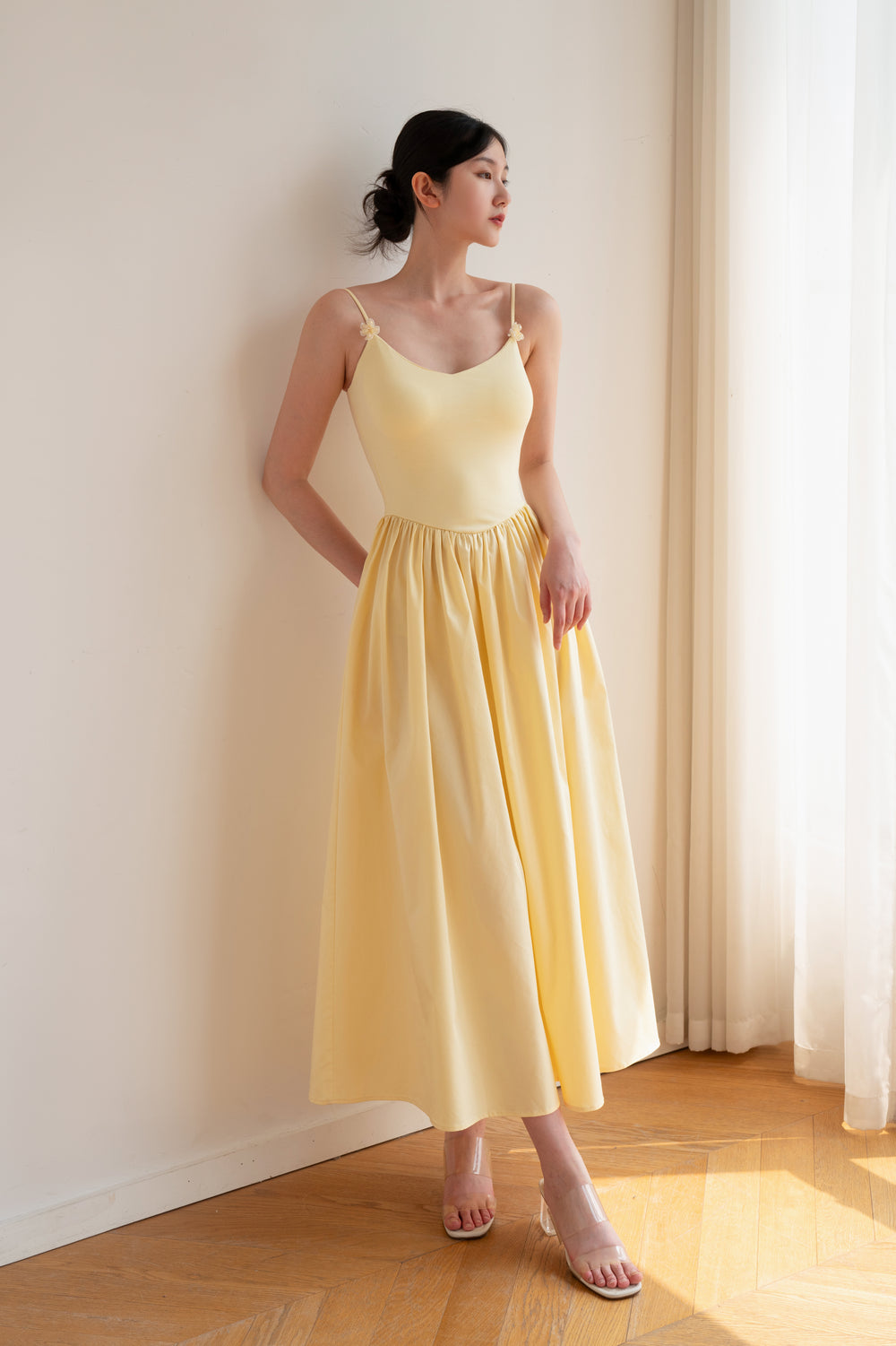 our eternal sunshine dress is designed in a flattering fit and flare silhoutte.