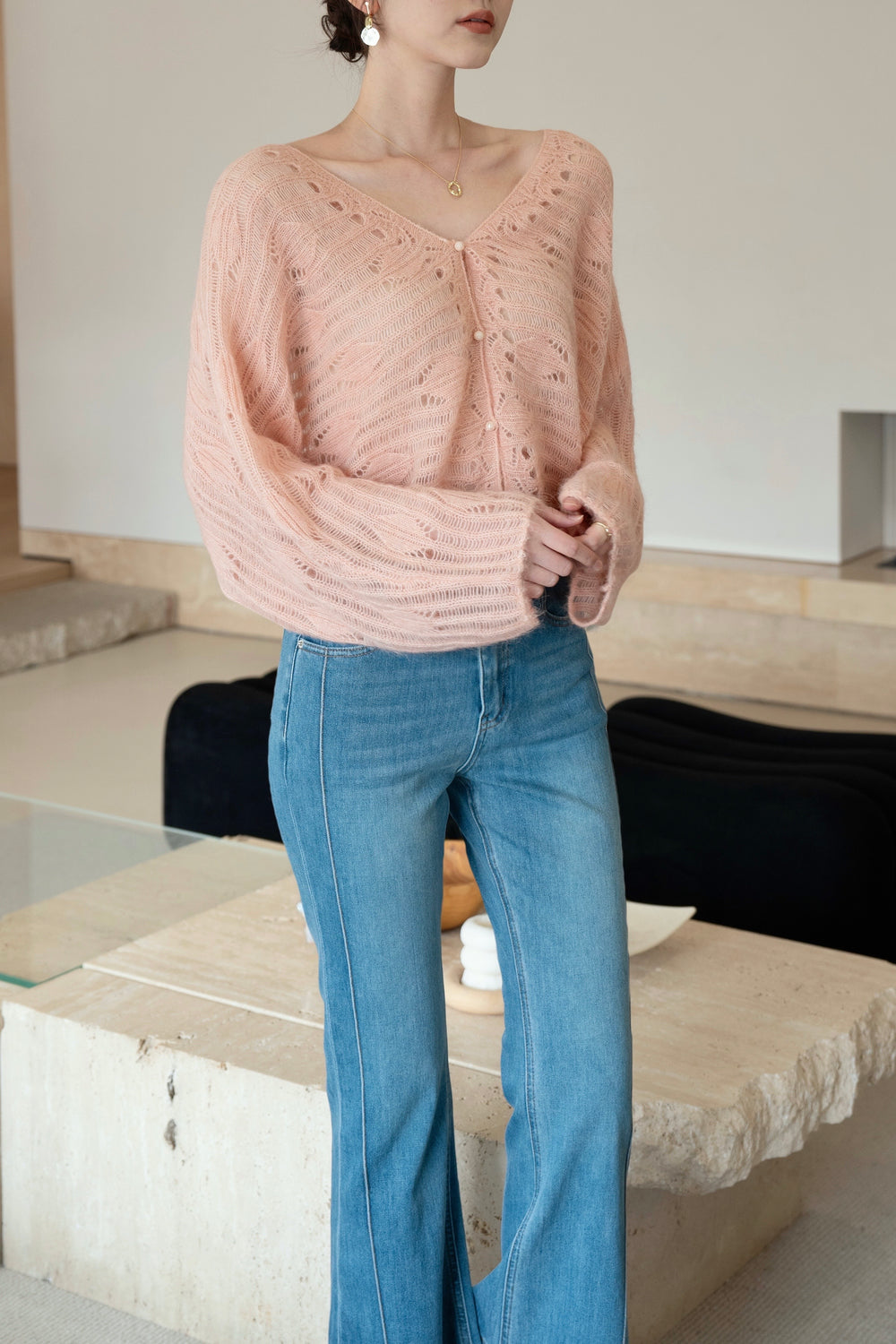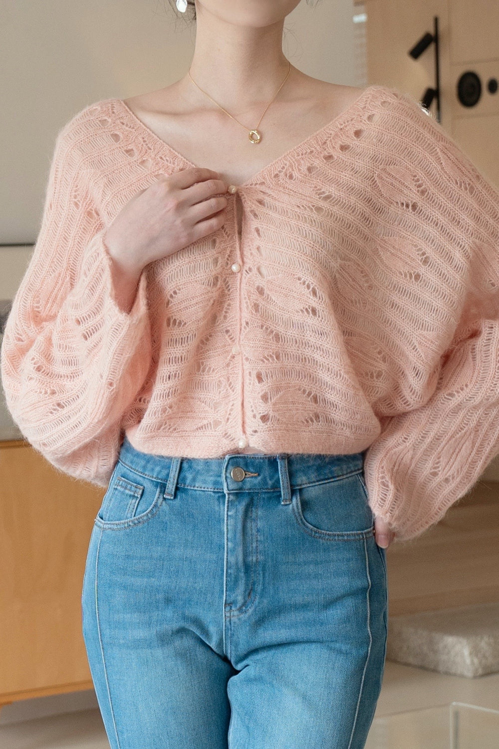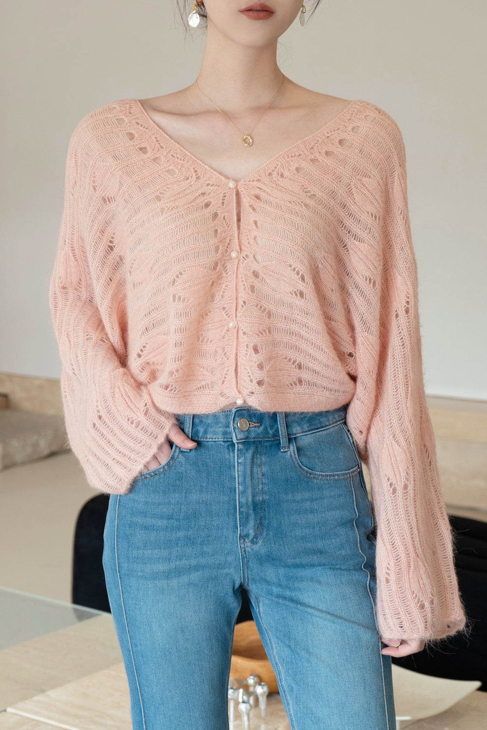Our feather Cardigan is made from luxurious blend of wool and alpaca wool.