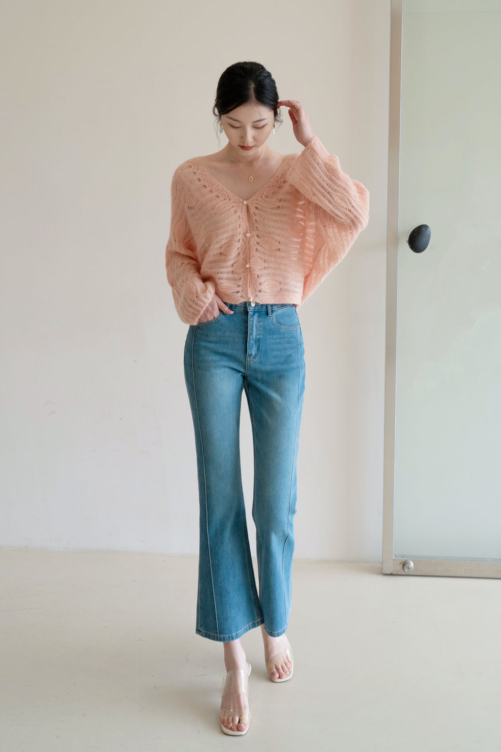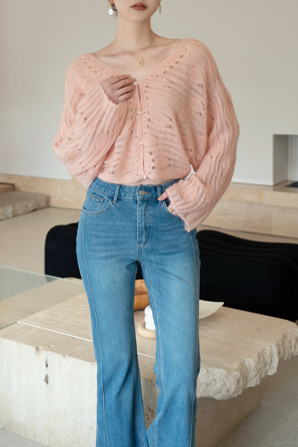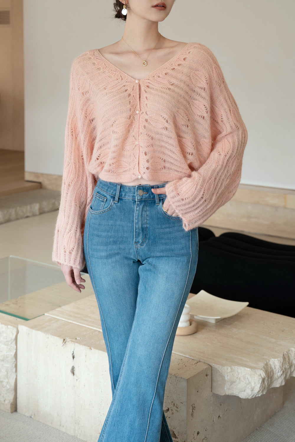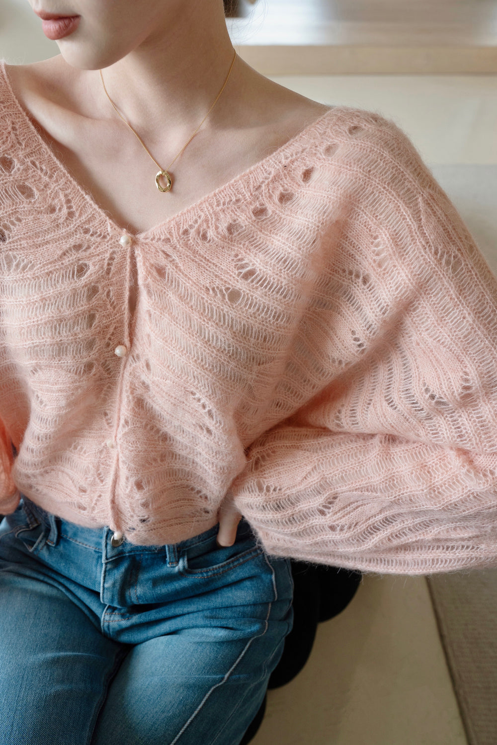 Our feather Cardigan is made from luxurious blend of wool and alpaca wool.