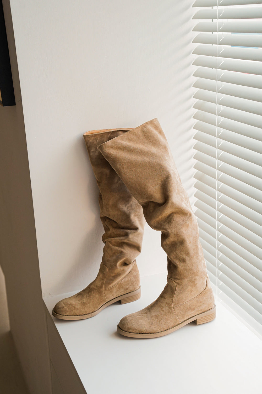 Our Giselle boots have been crafted from suede that's supple enough to gently slouch through the leg.