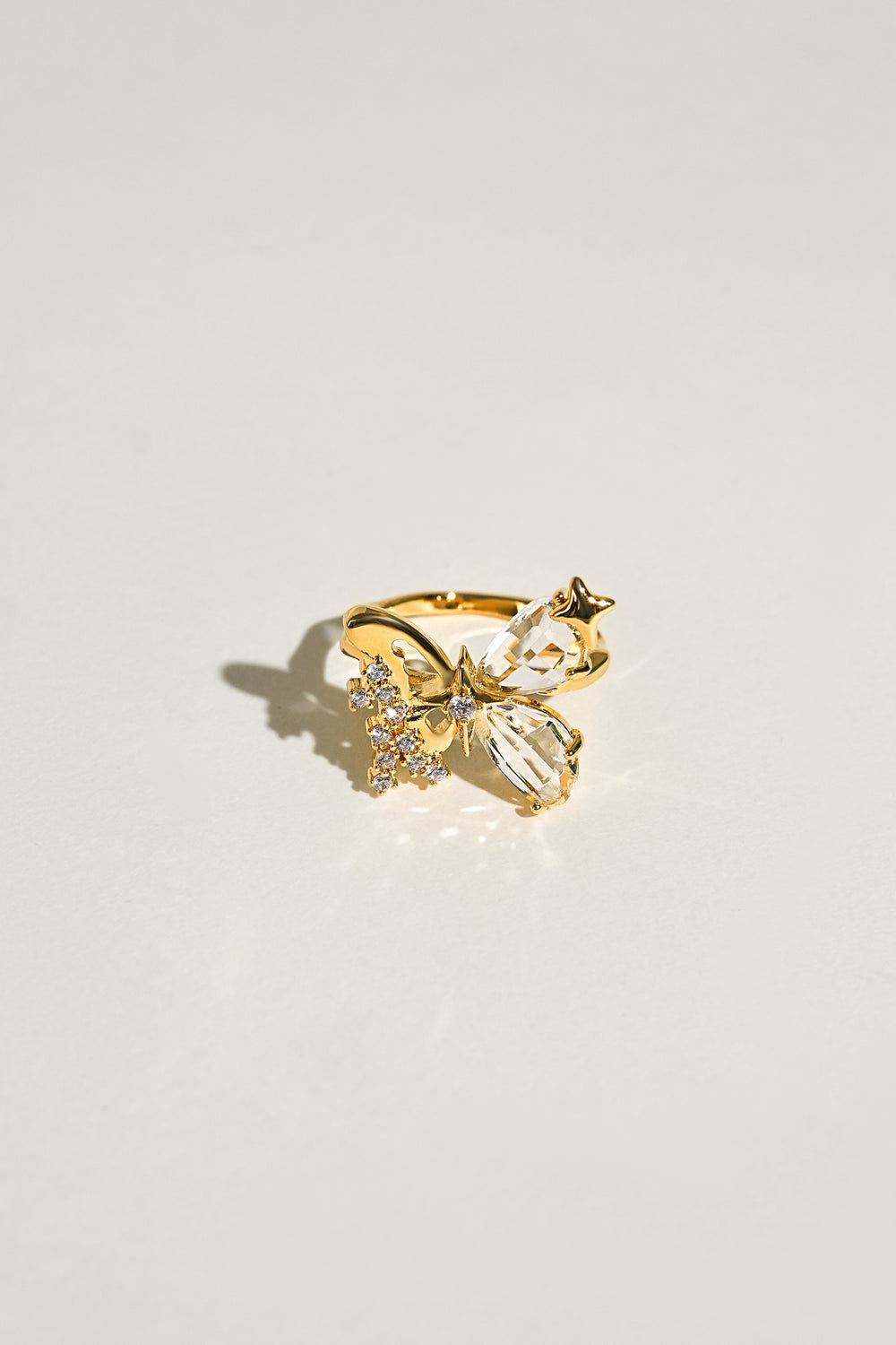 It's been handmade from shiny gold-plated brass topped with shining zircon.