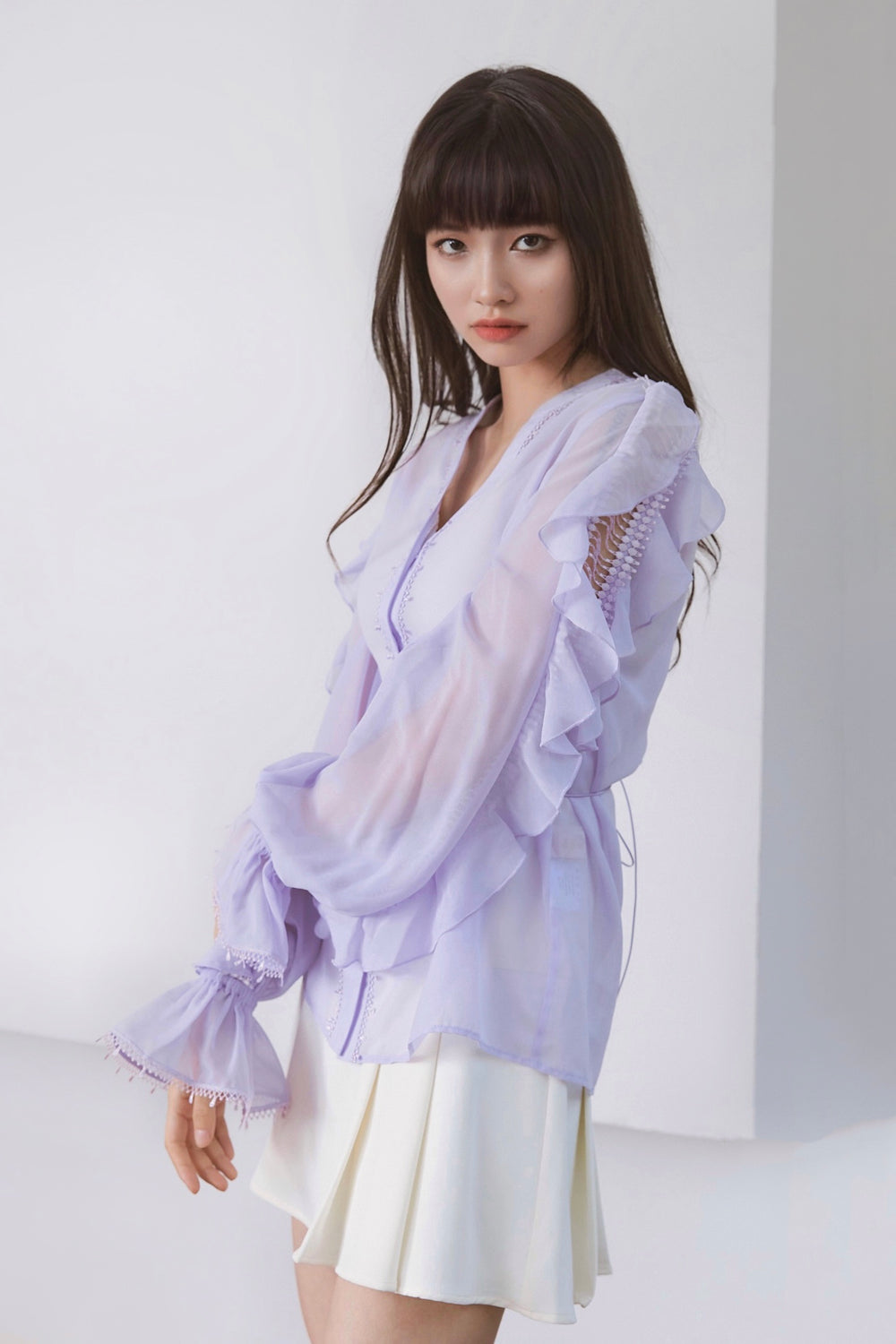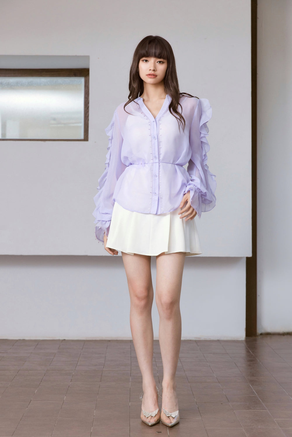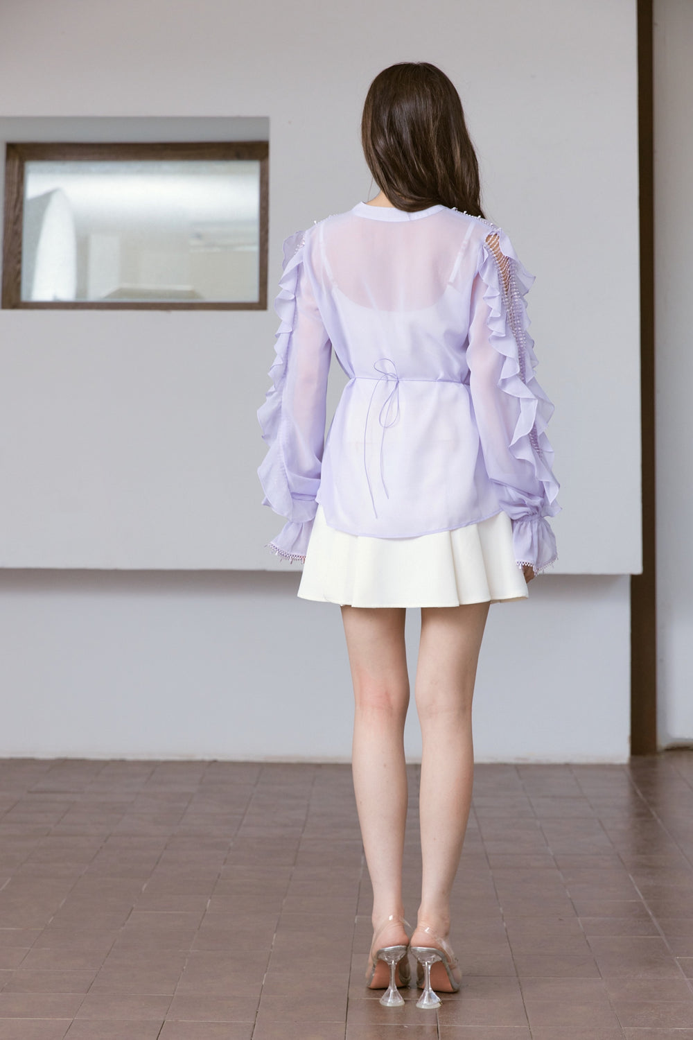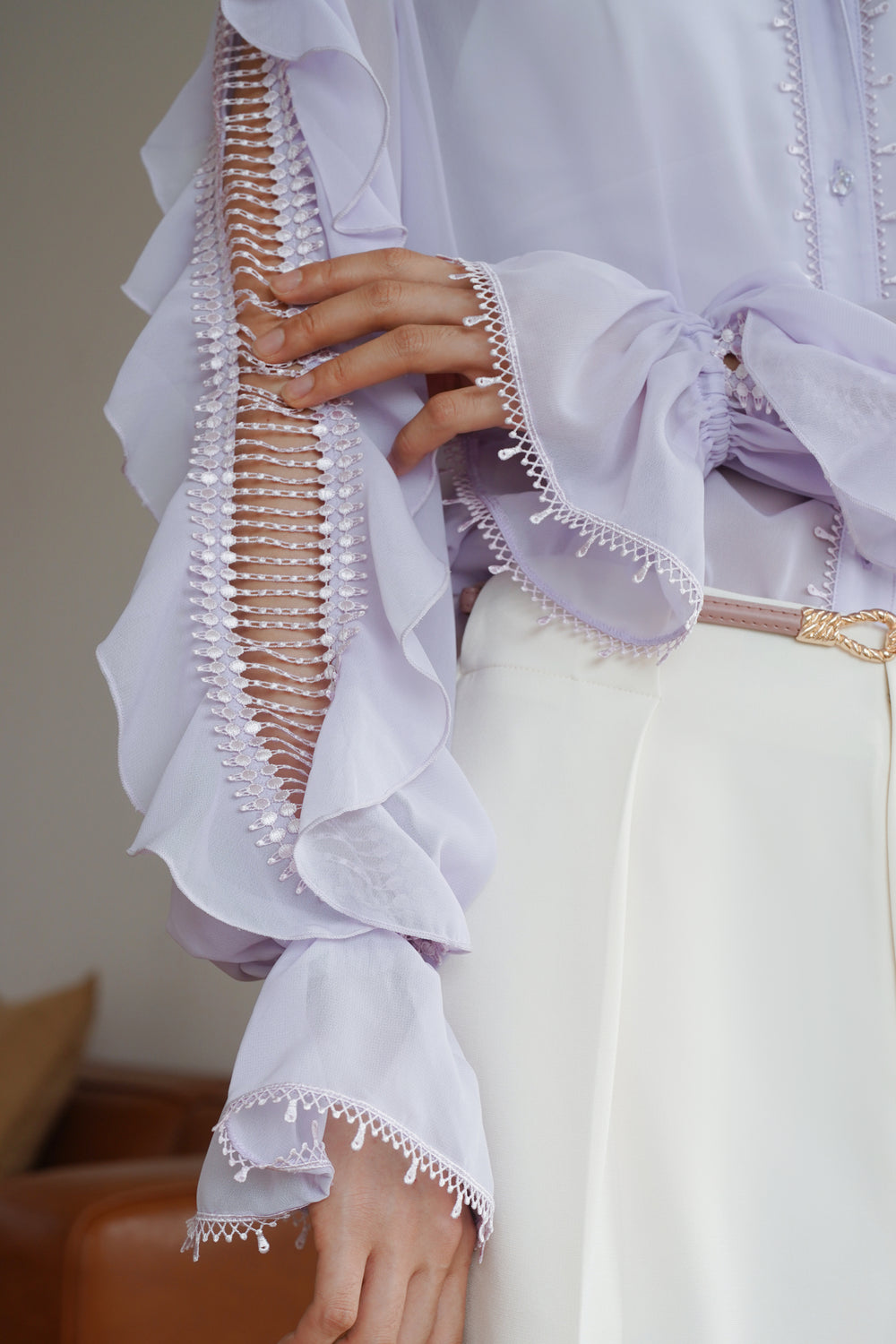 Our Mon Cheri top is made from white lace with customed love heart embroideries.