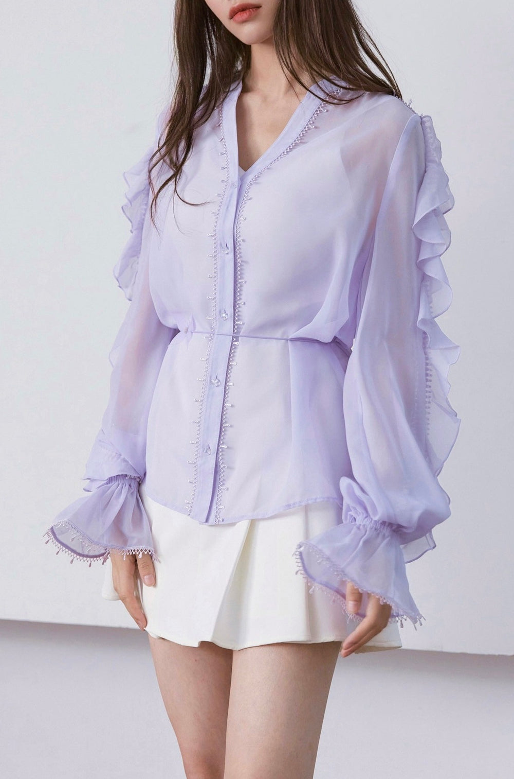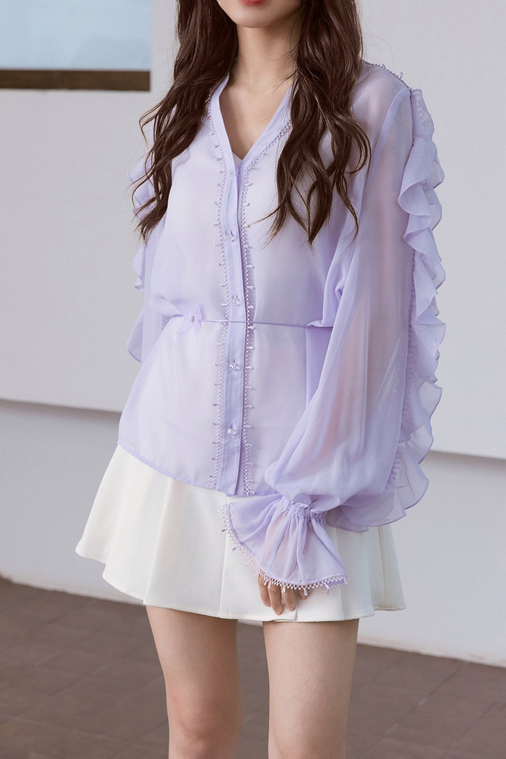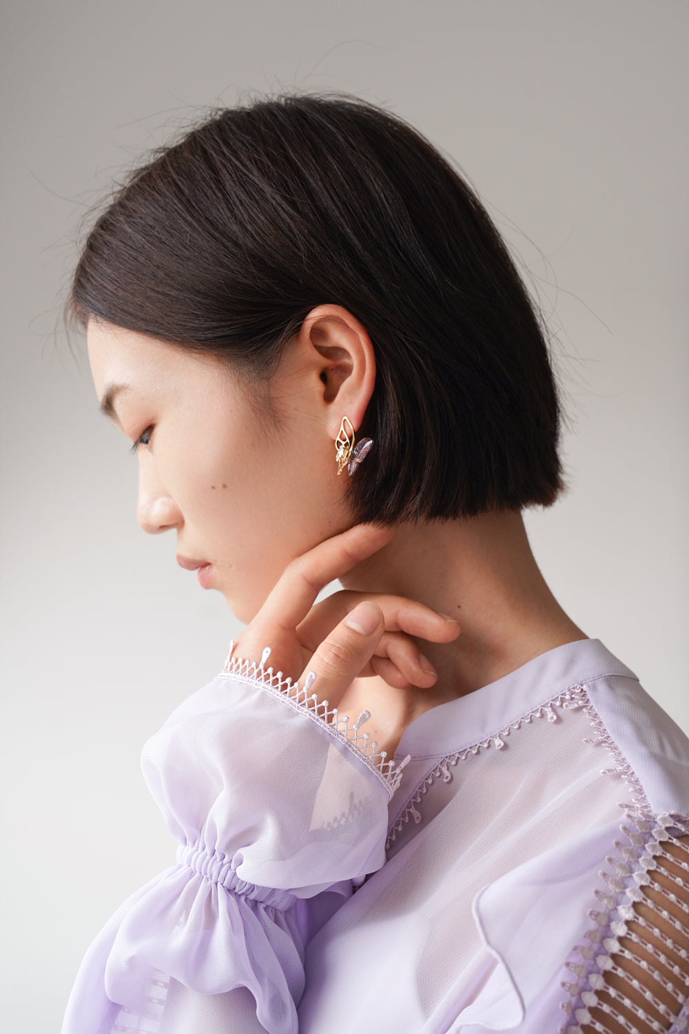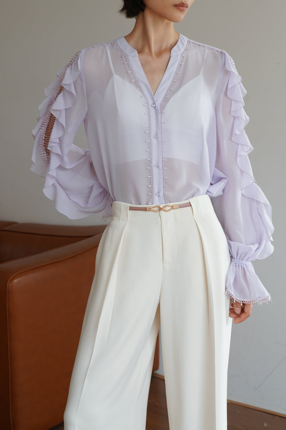 Our Mon Cheri top is made from white lace with customed love heart embroideries.
