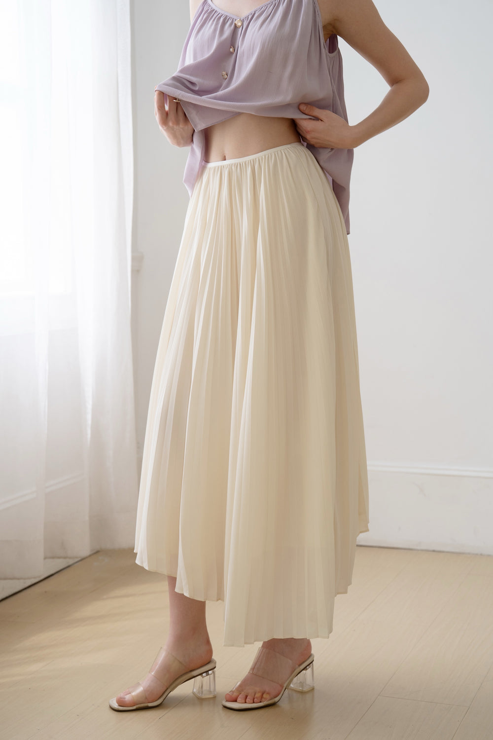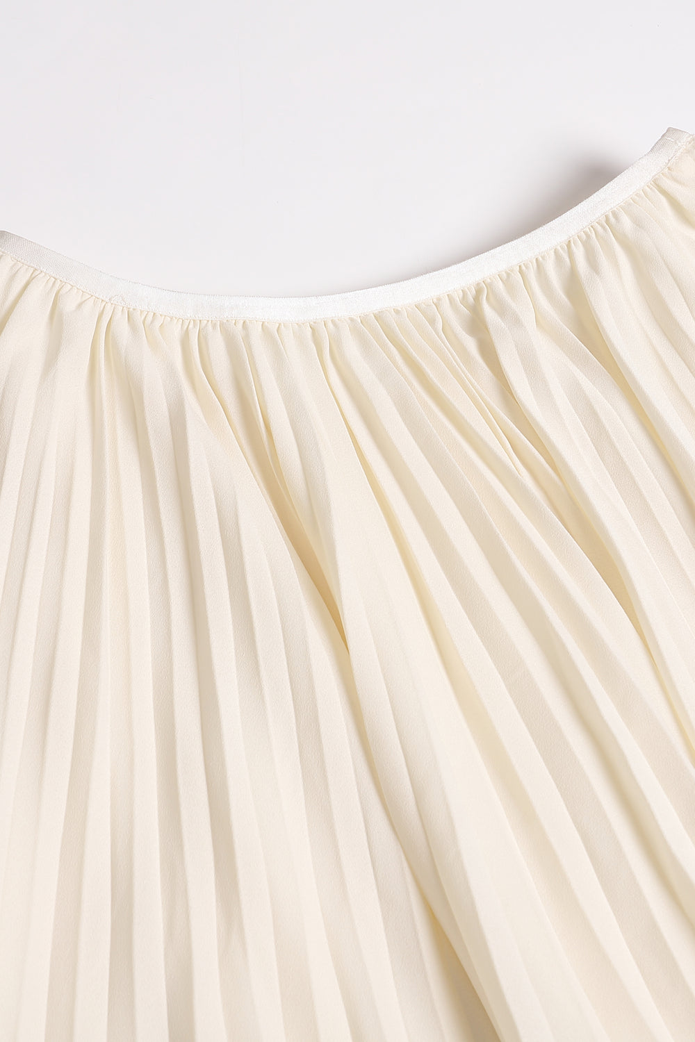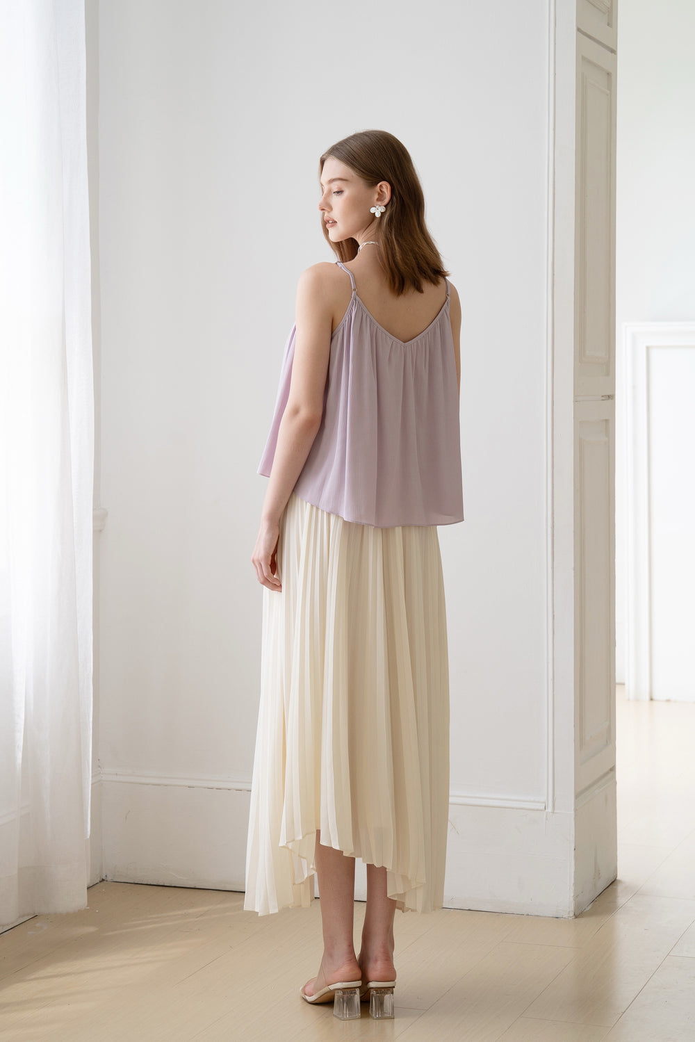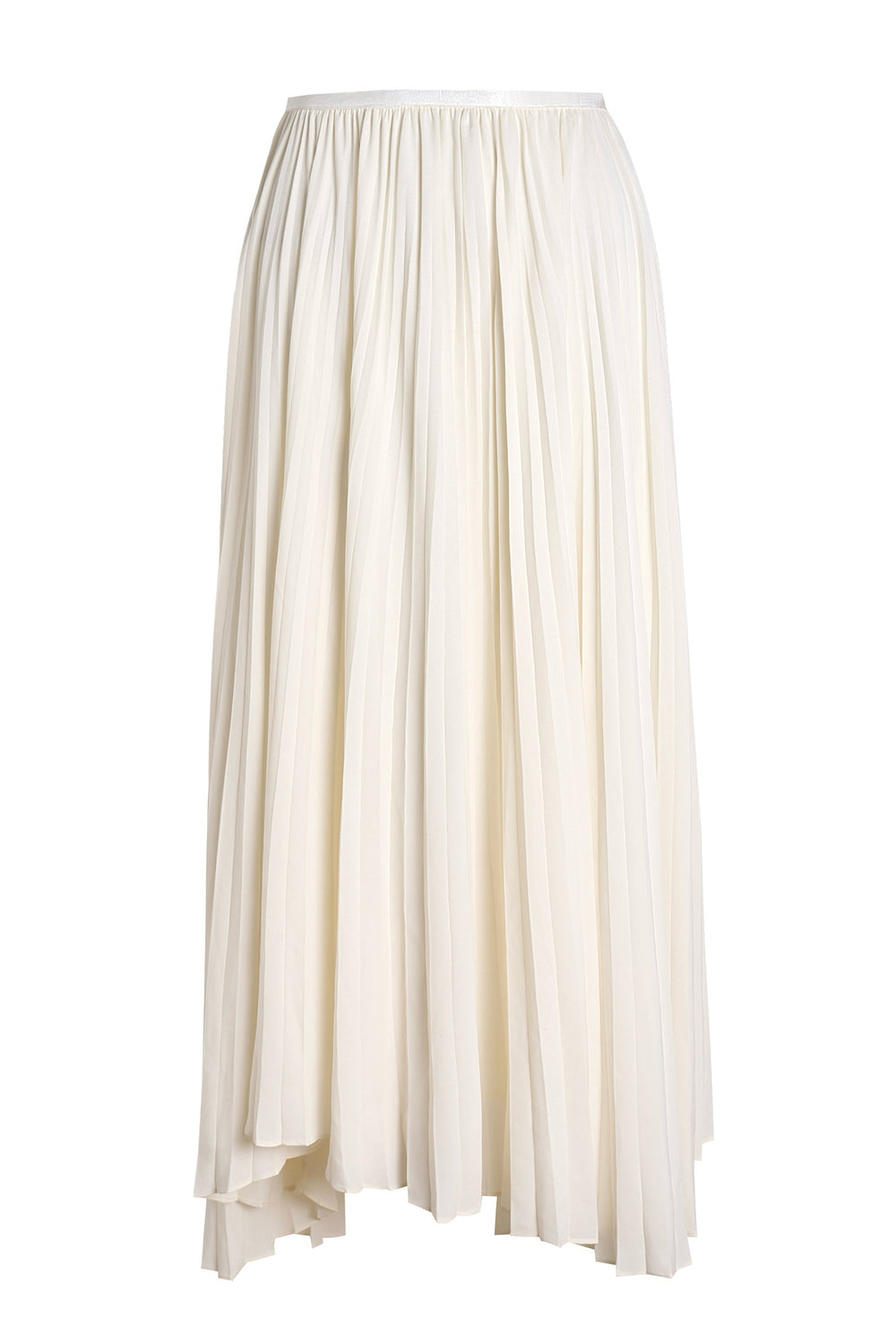 Cut from lightweight chiffon and has sharp hand-pressed pleated with an asymmetric hem.