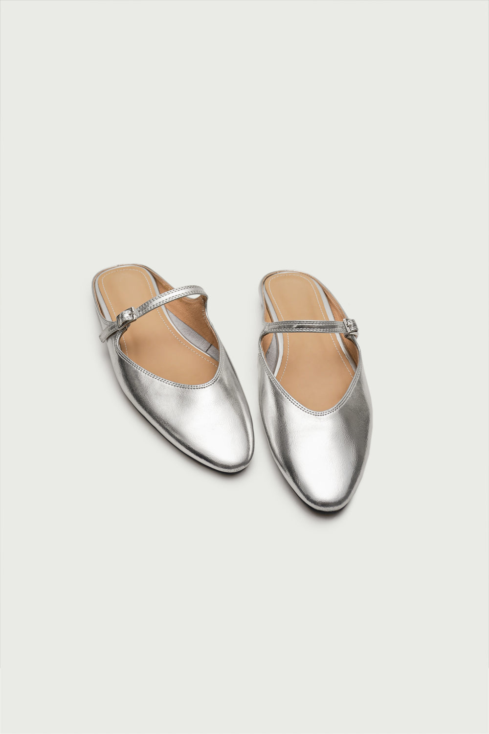 Lily slippers are hand made from shimmering metallic leather in a Mary Jane style