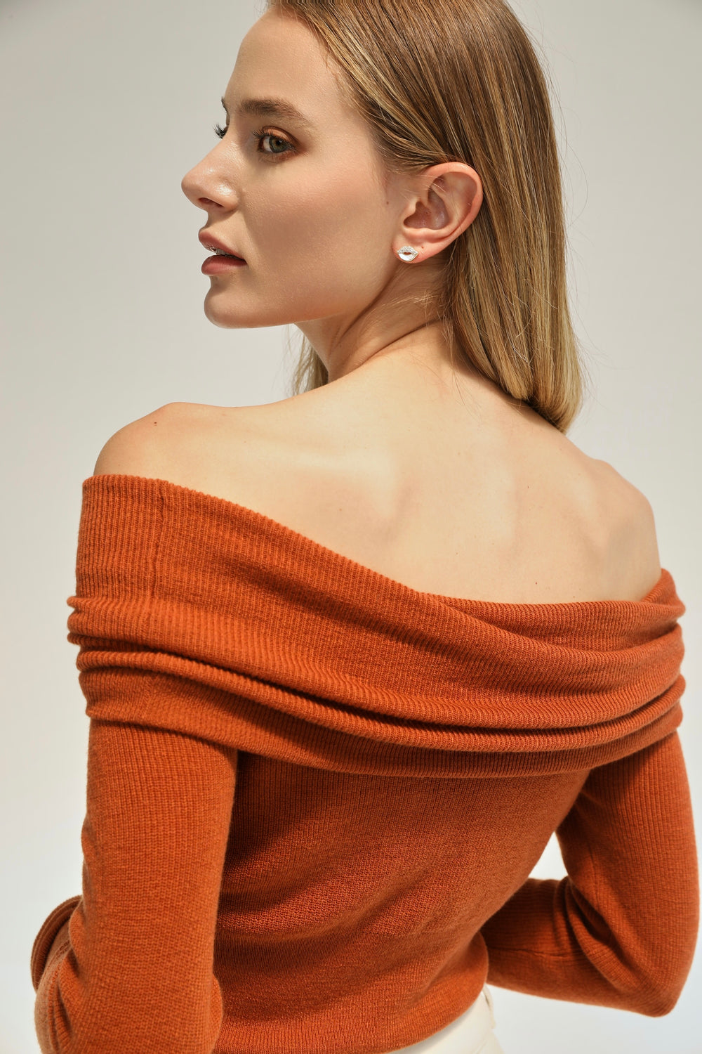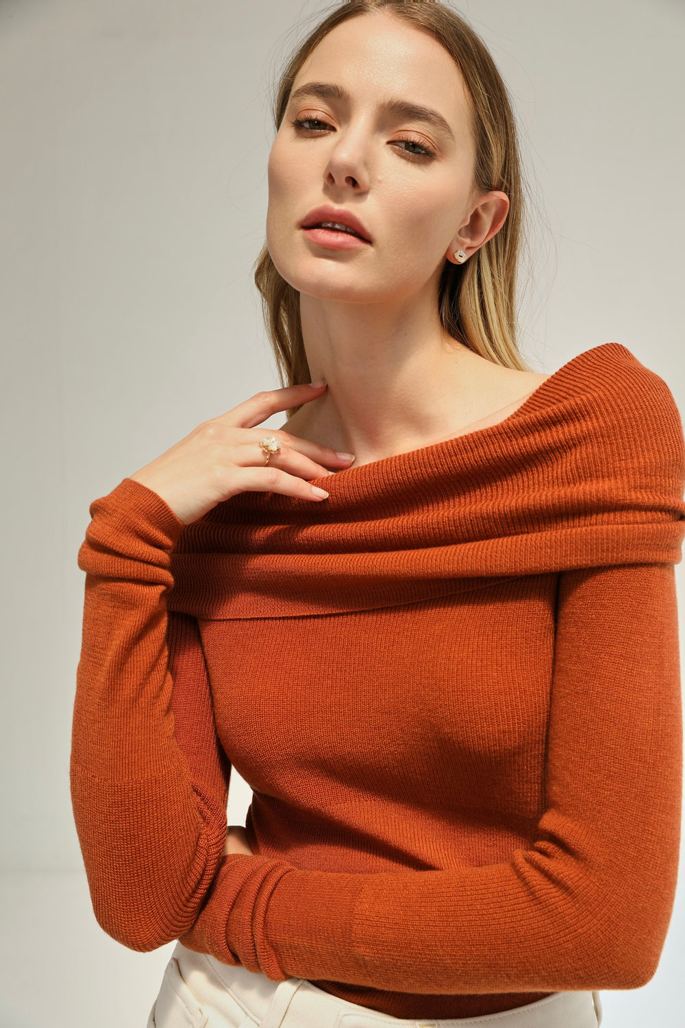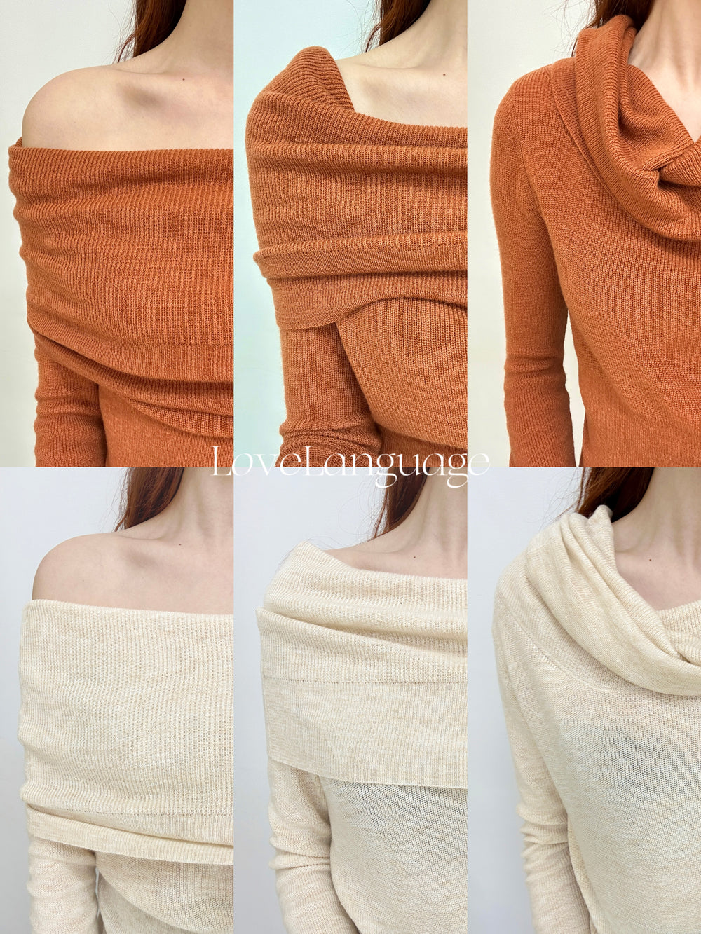 This top can be either worn us a cowl-neck top or pull down as an off the shoulder top