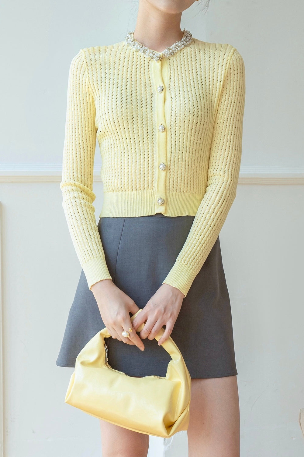 Sitting halfway between knitwear and a jacket,this cardigan is as glamorous enough for an important night.