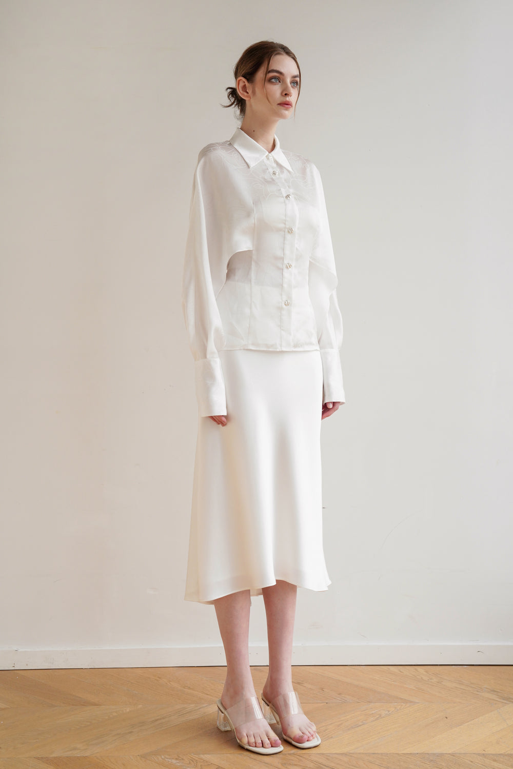 Our elegance Mackenzie blouse is made from fluid satin.