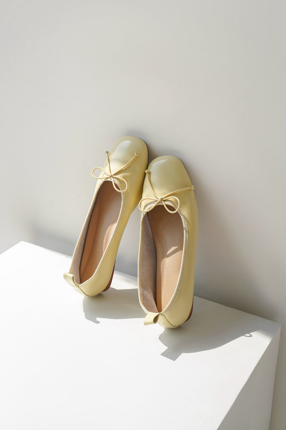 Our Miss Jane flats are made in from soft calf leather and is detailed with slightly squared toes topped with a bow.