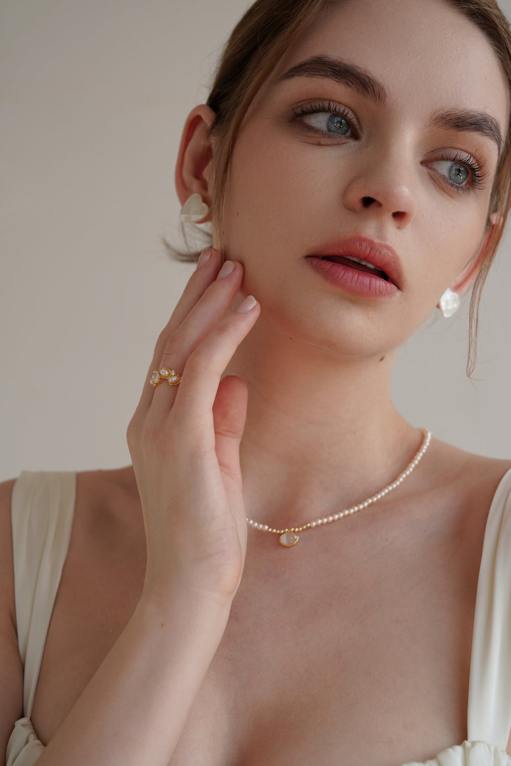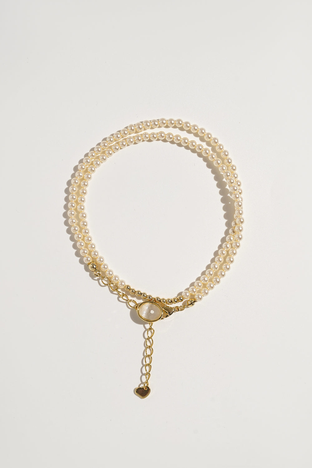 Strung with a beige cat’s eye pendant, believed to provide a protective energy.