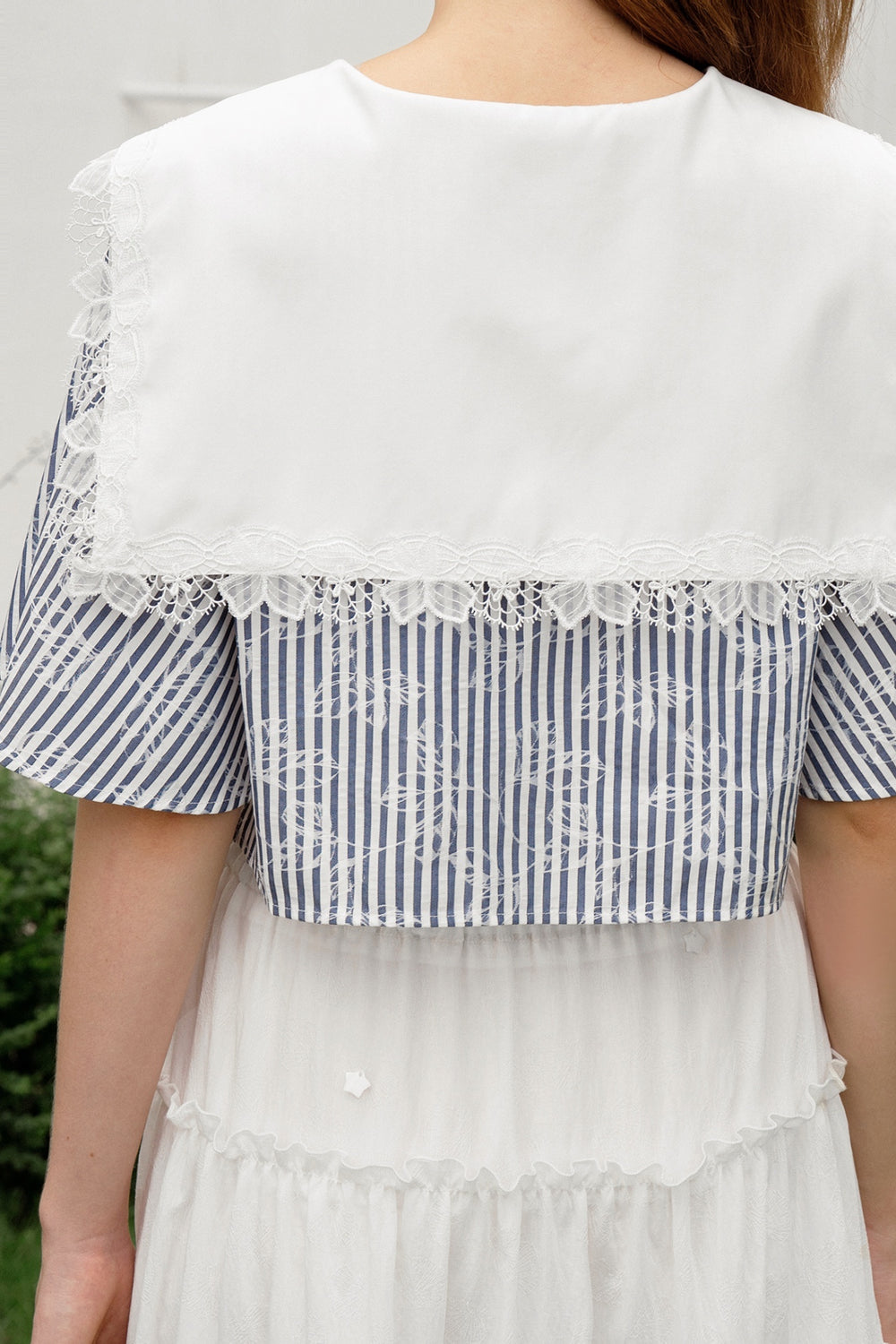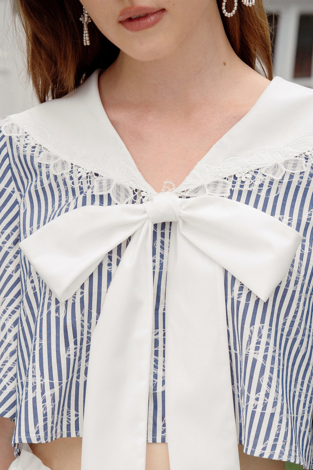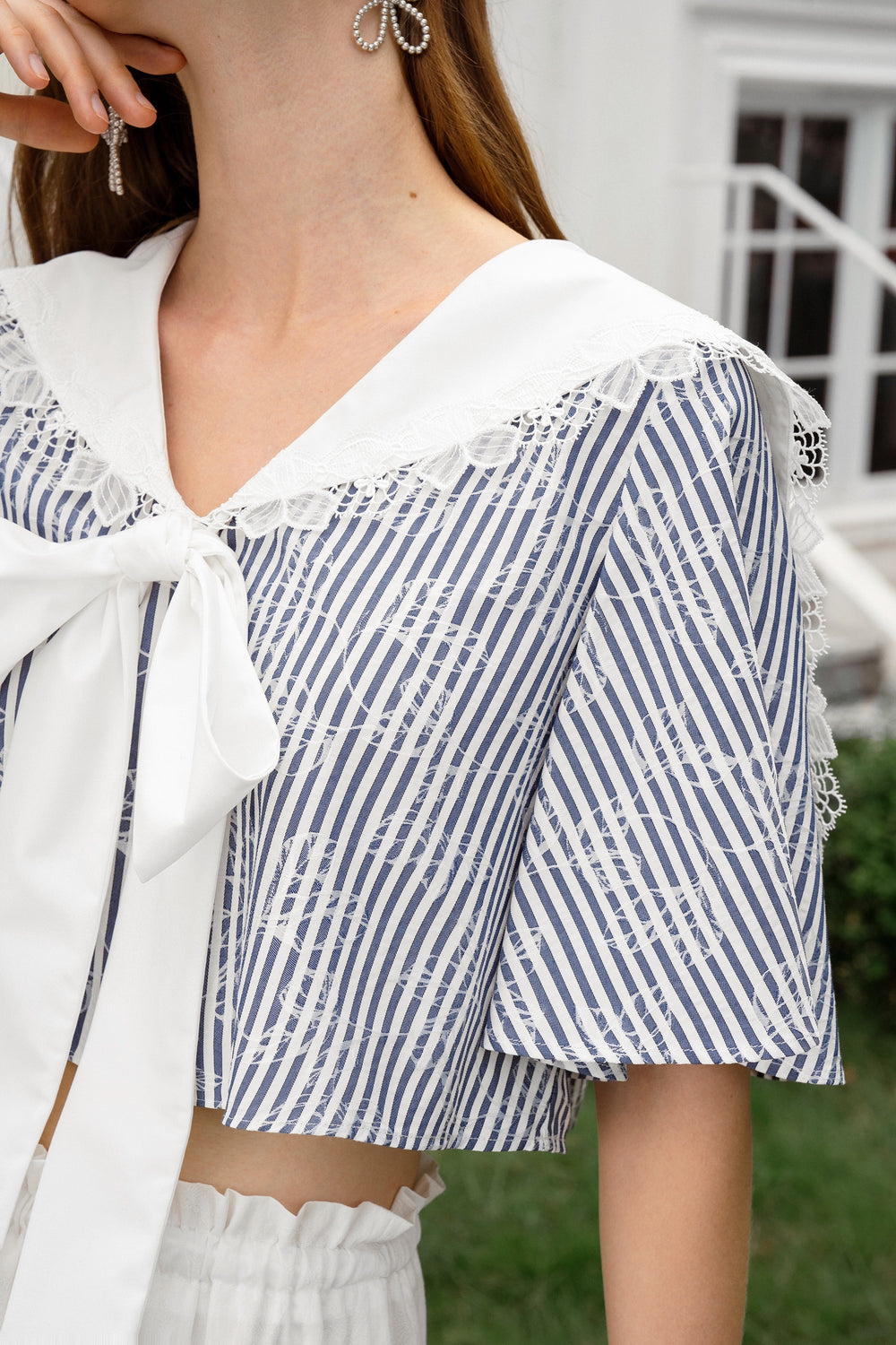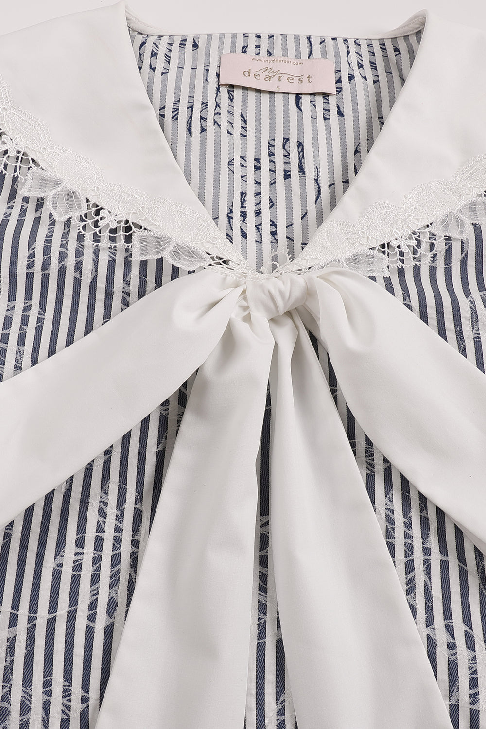Cut from striped yarn-dyed fabric with a subtle floral pattern for a loose fit.