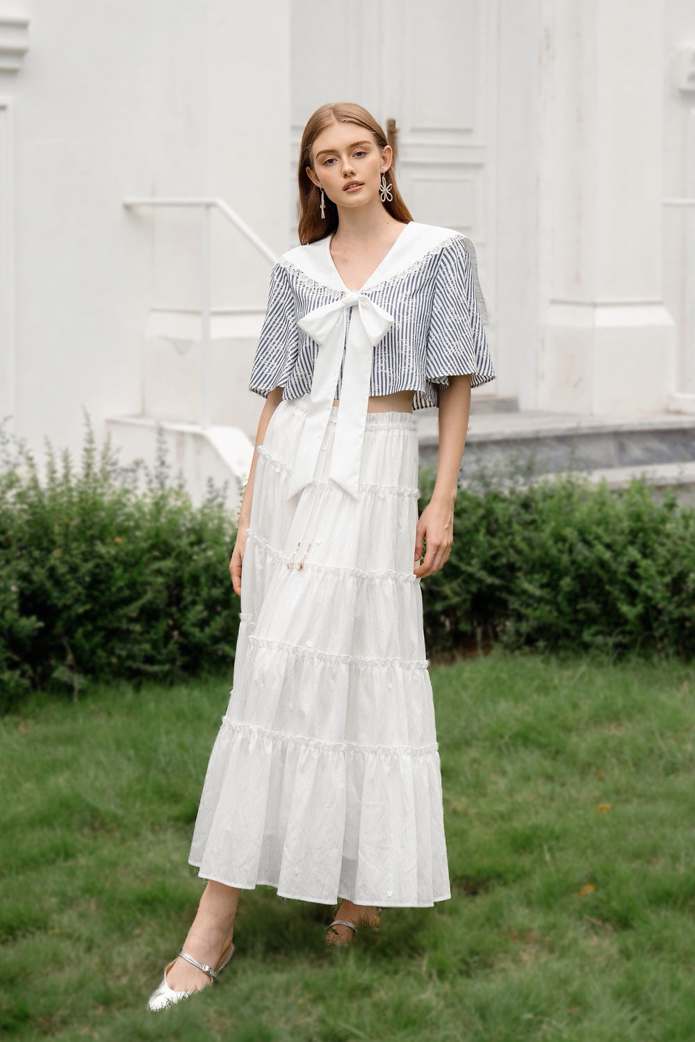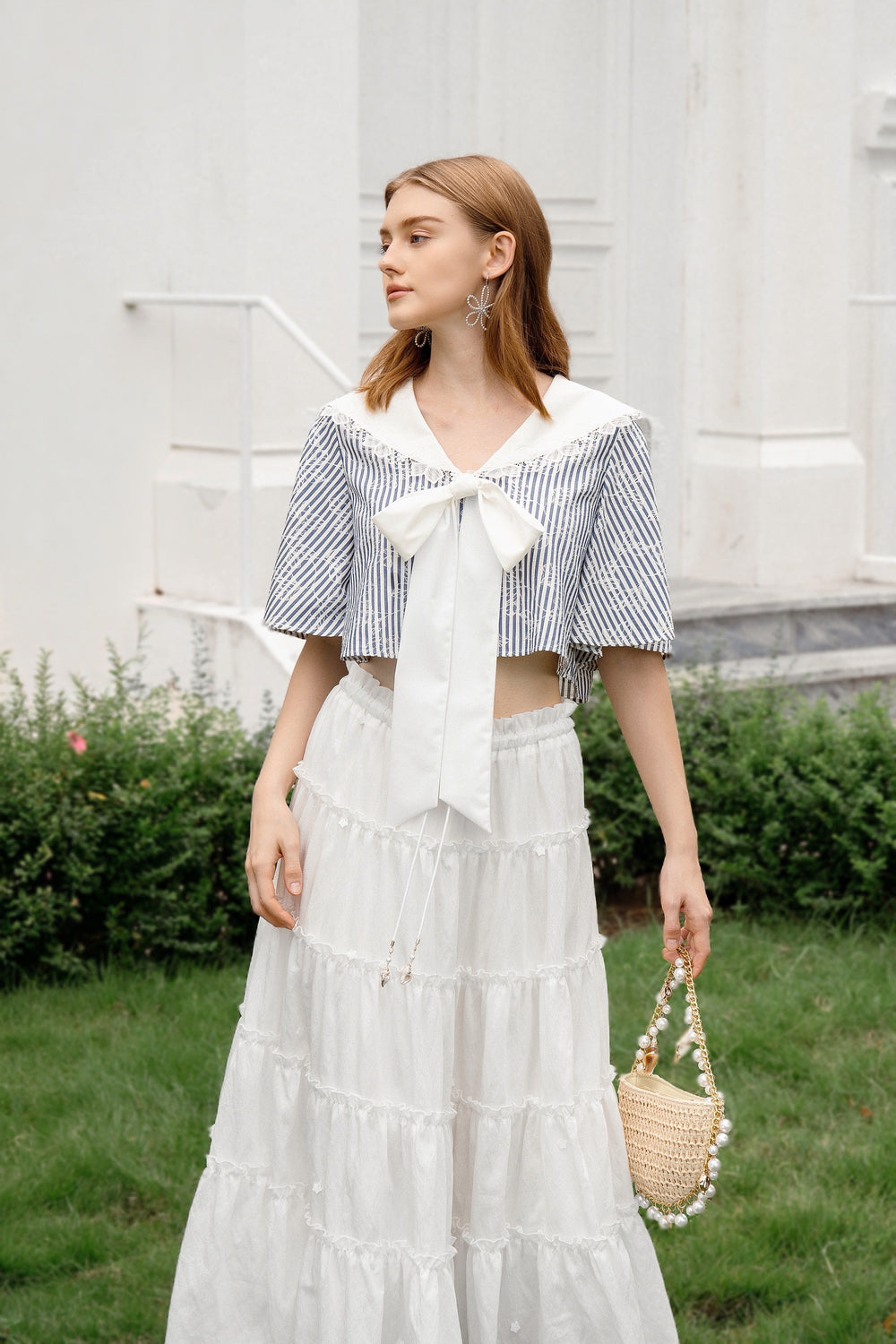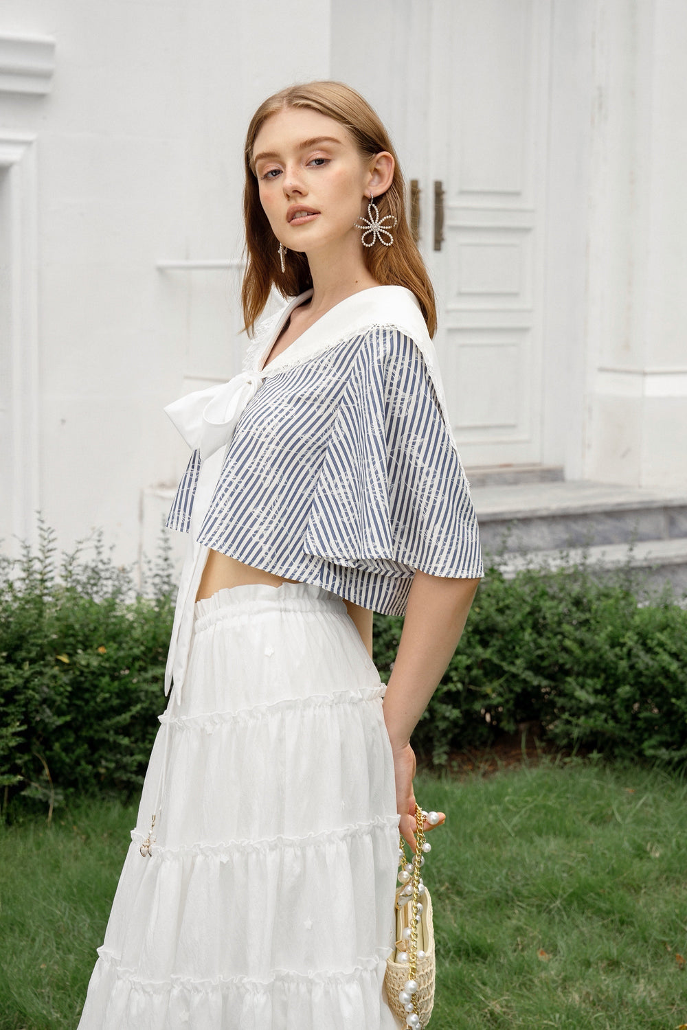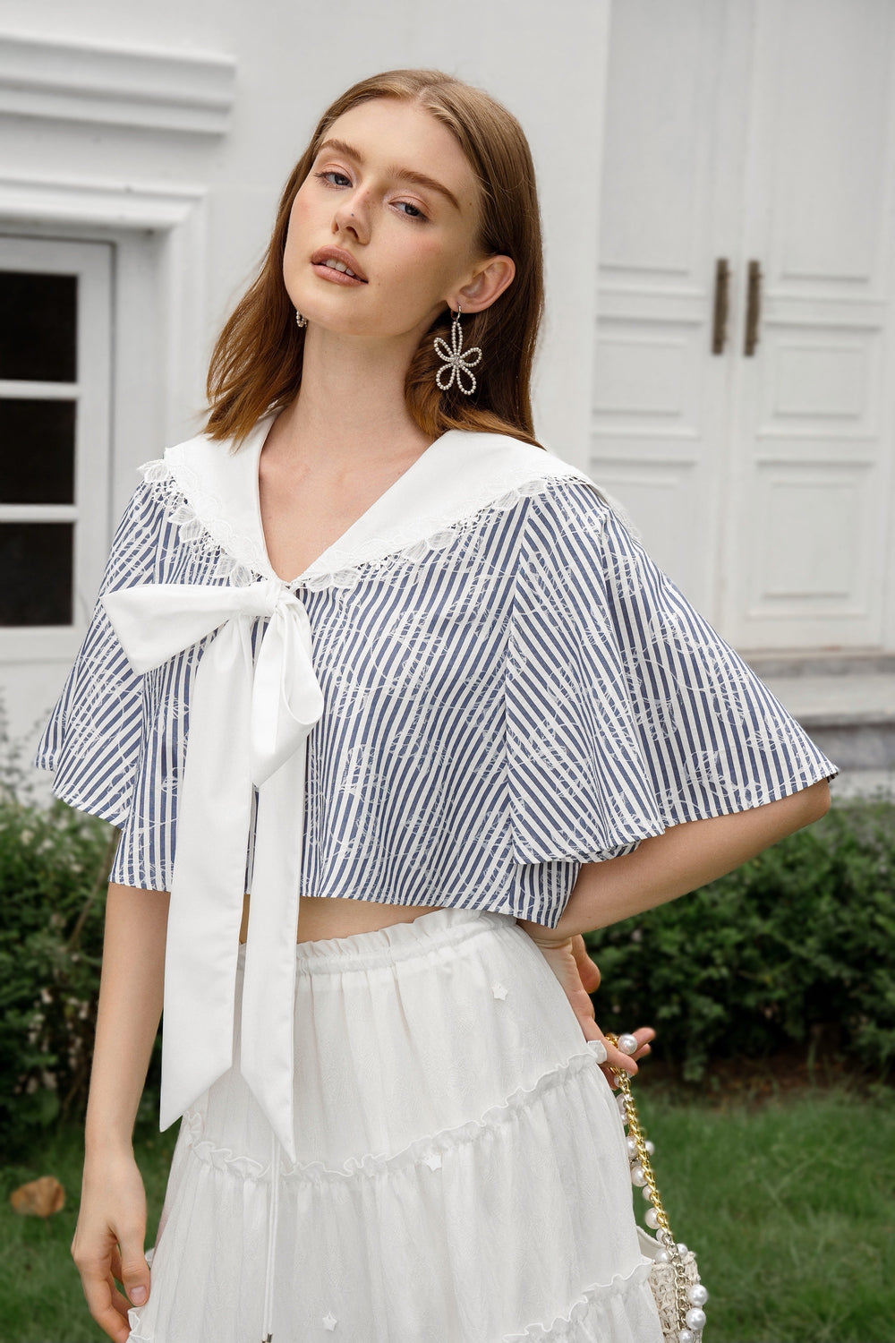 Cut from striped yarn-dyed fabric with a subtle floral pattern for a loose fit.