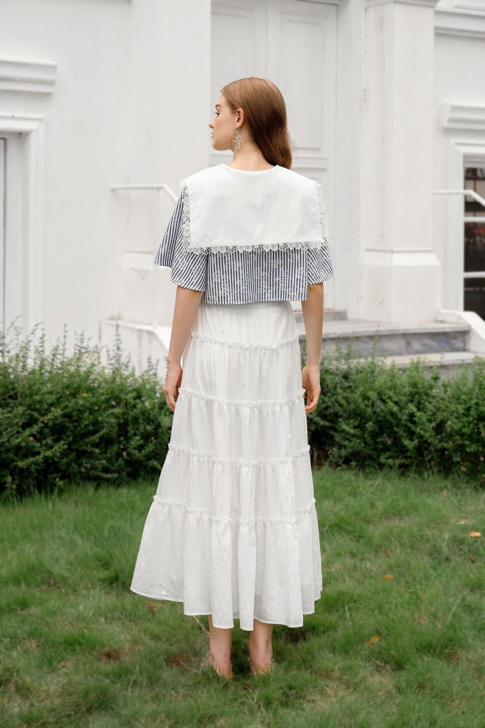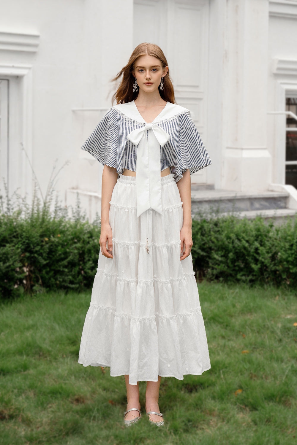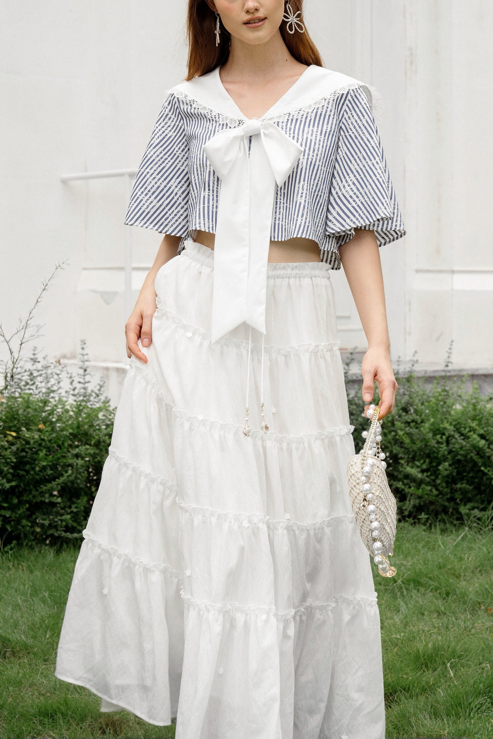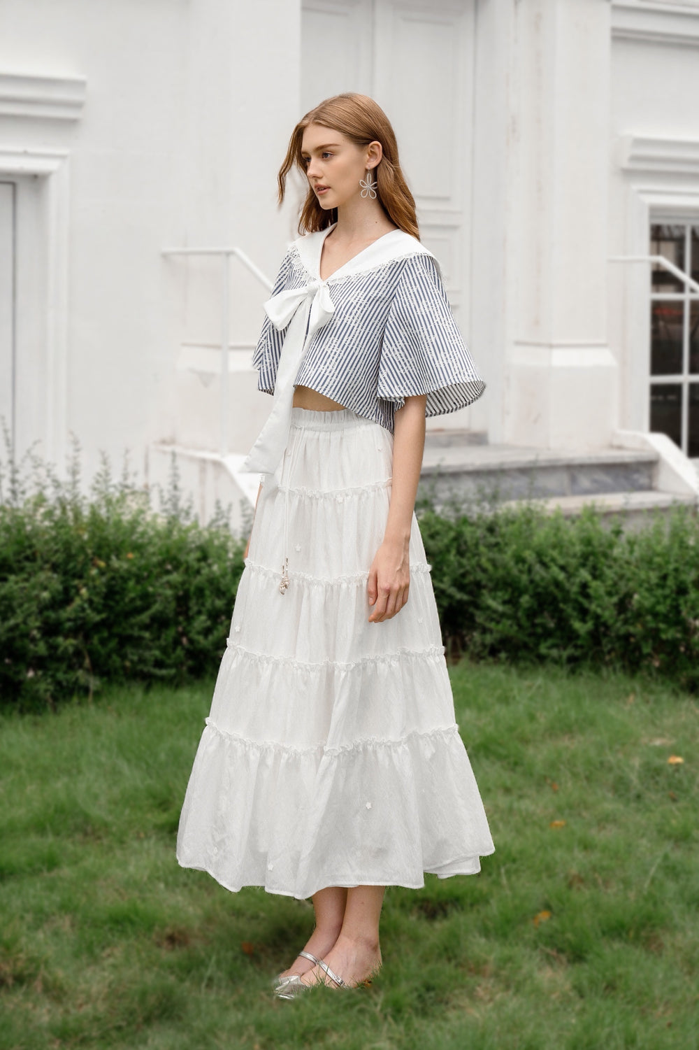 Cut from striped yarn-dyed fabric with a subtle floral pattern for a loose fit.