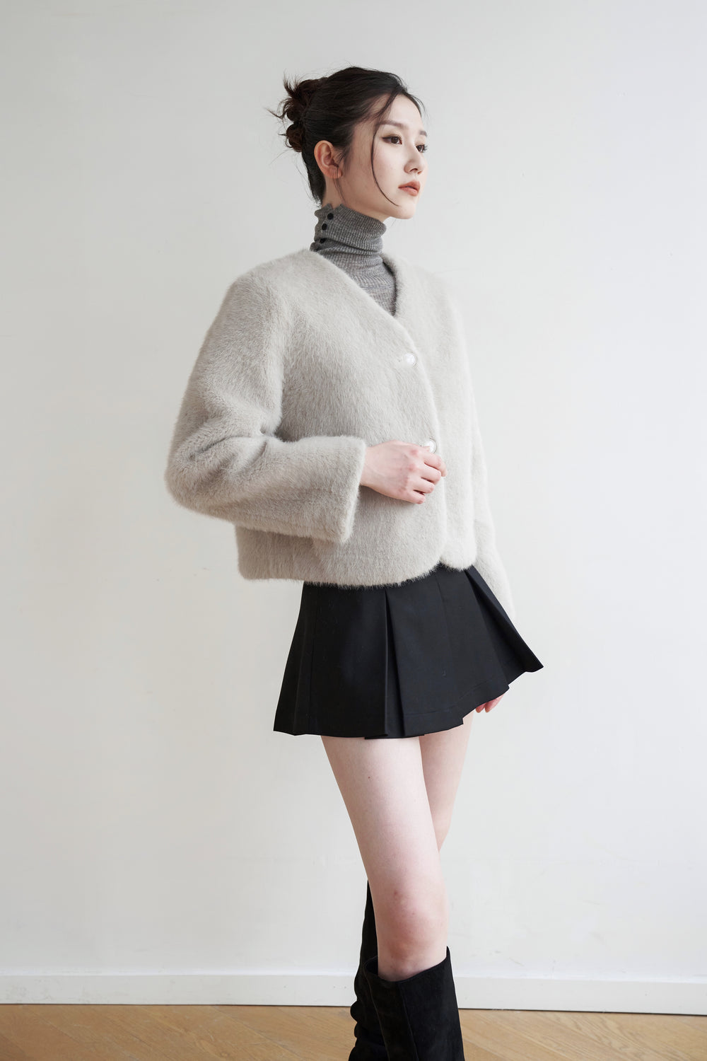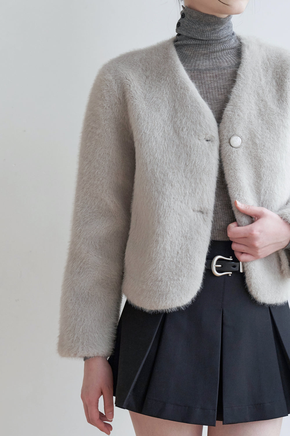 Our Nicole coat is made from faux fur that feels just as soft as you would imagine.