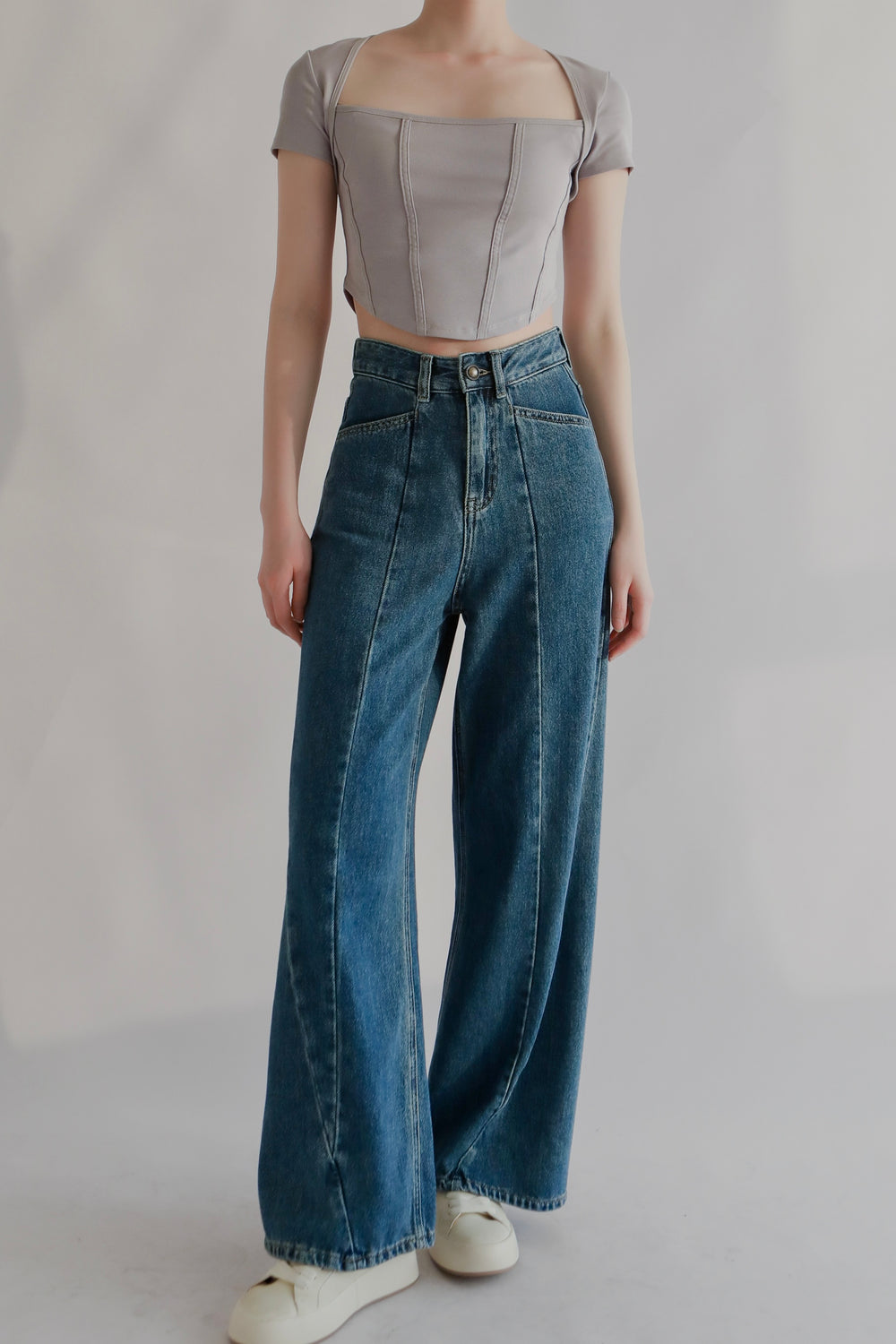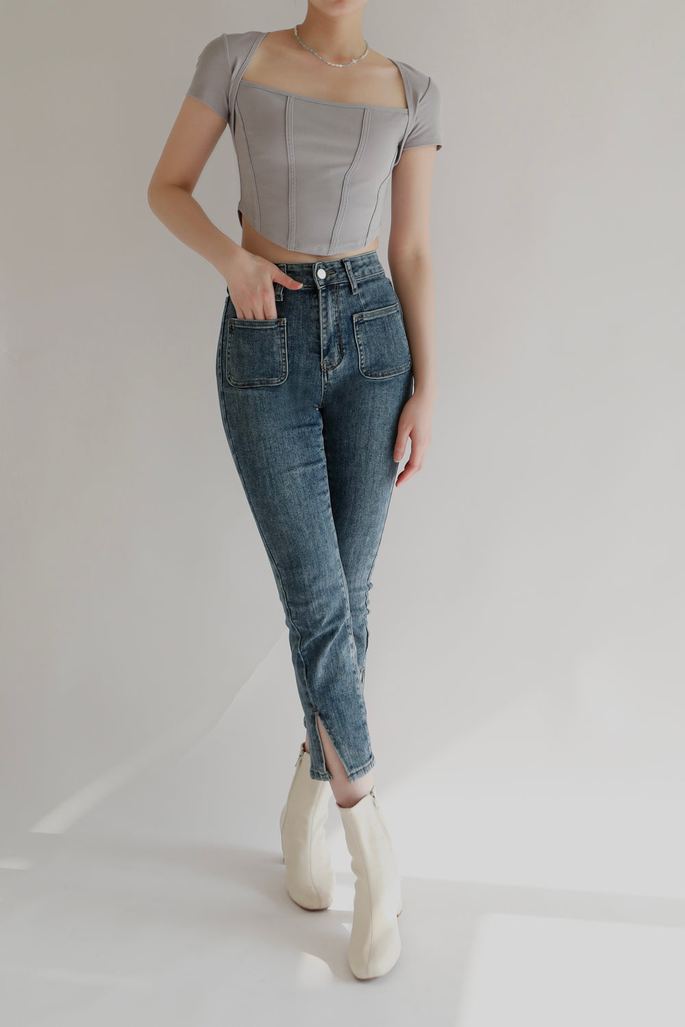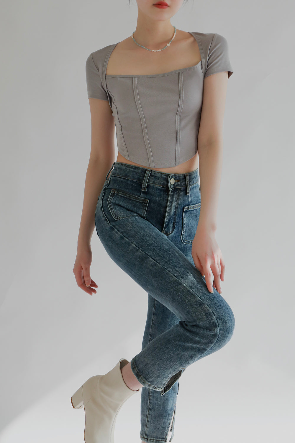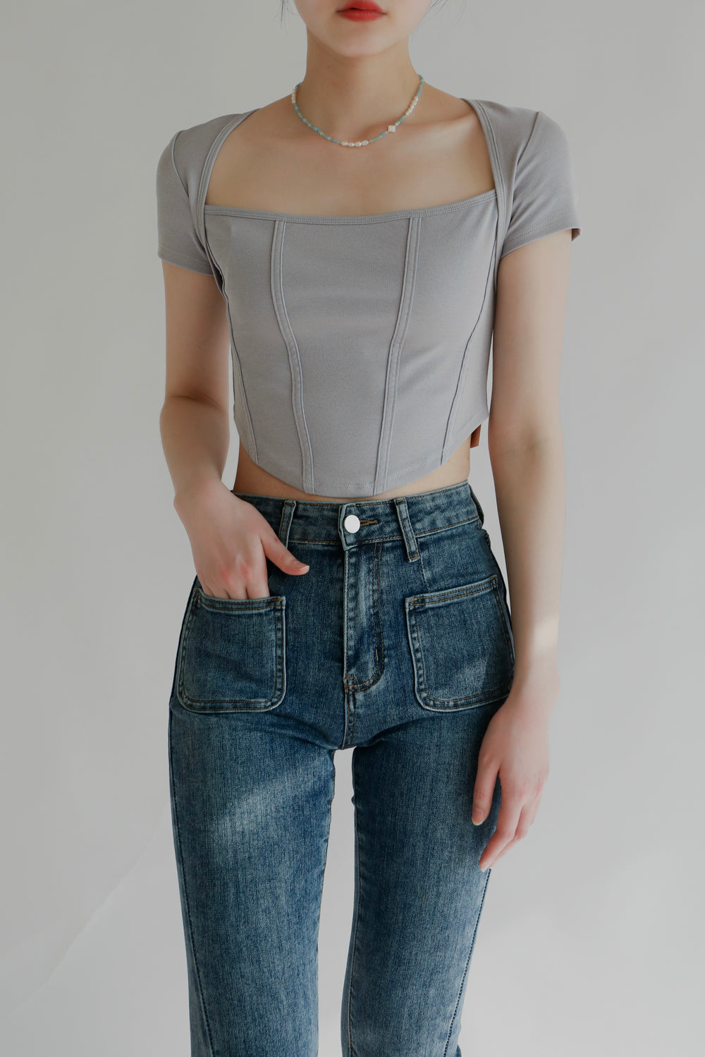 Cropped top is a must have in summer. Our On the Verge top is cut from stretch-cotton jersey and has a corset-inspired bodice.