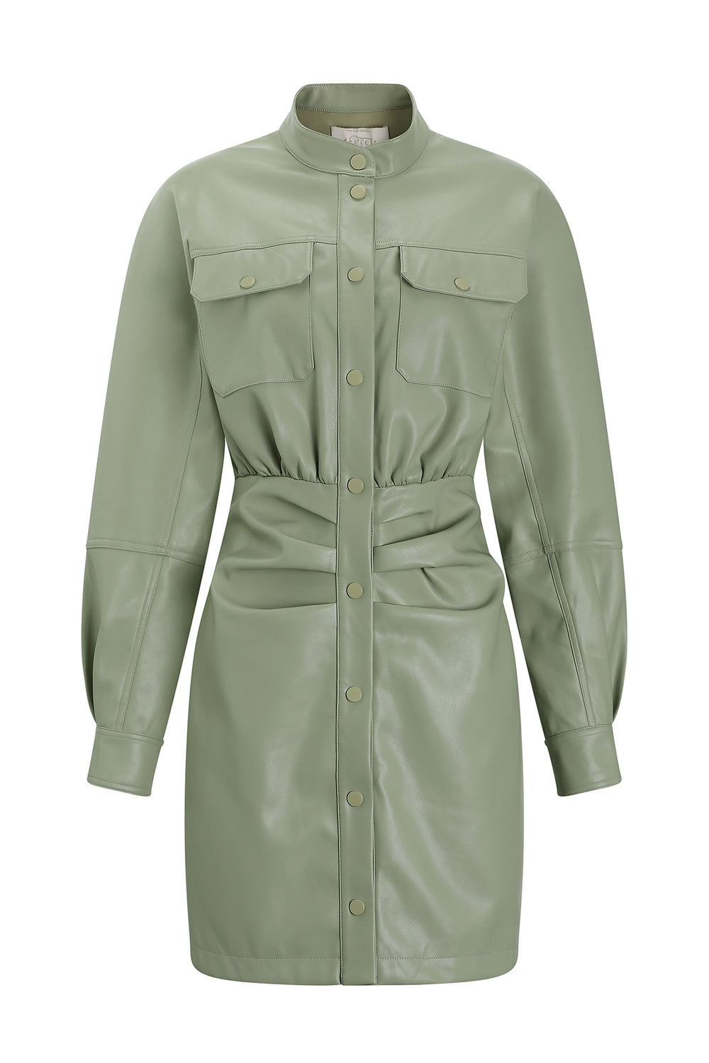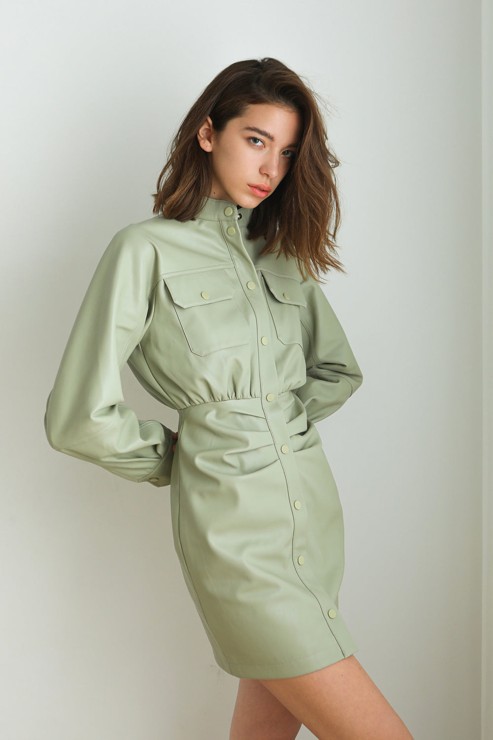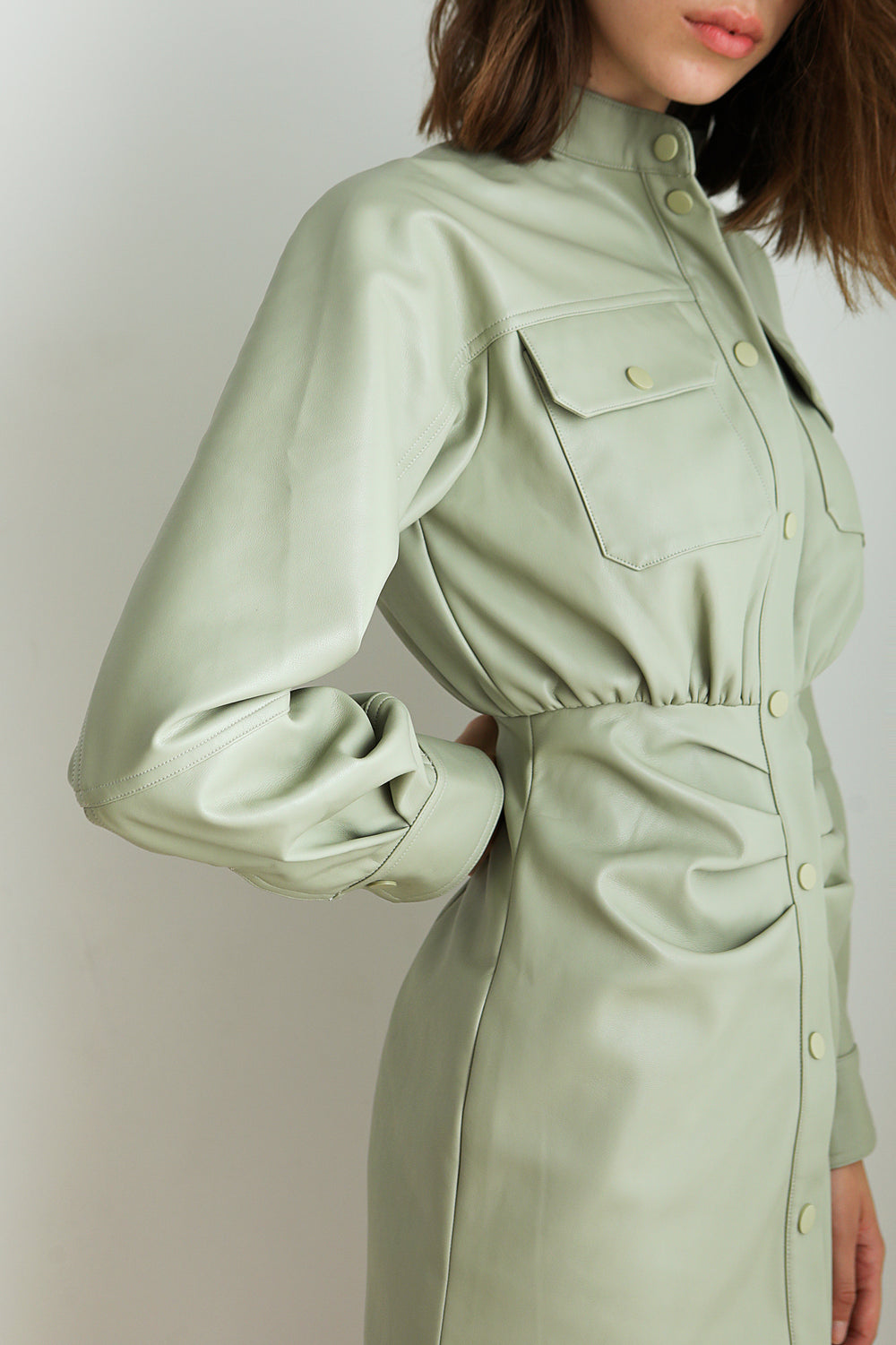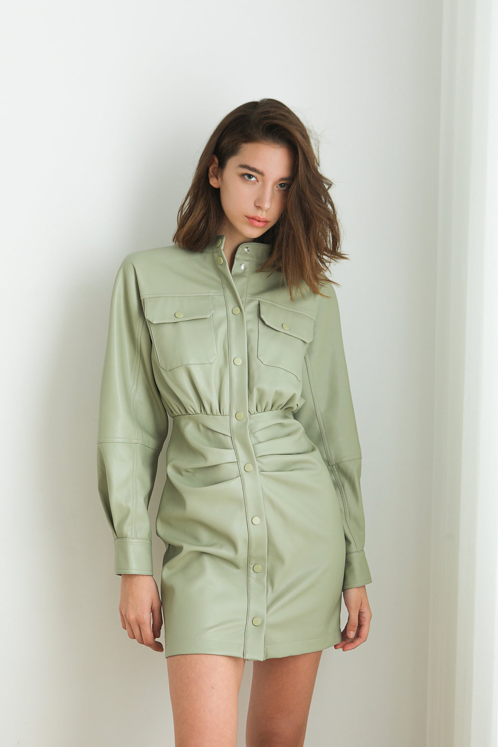 Our Pistachio dress is cut from supple vegan leather that feels as soft as the real thing.