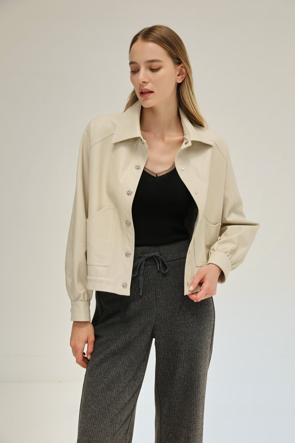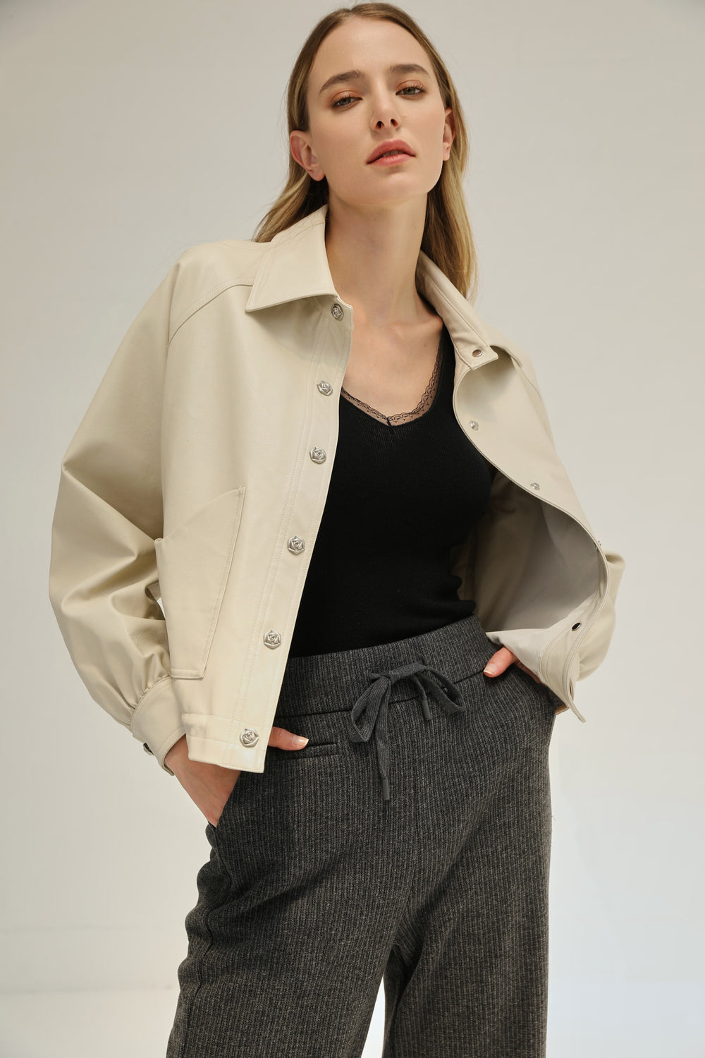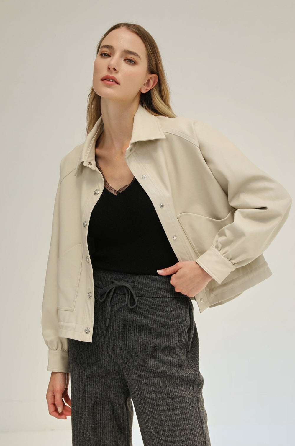 The neutral shades that promise to go with plenty in your wardrobe. Cut from vegan leather with an exaggerated front pocket.