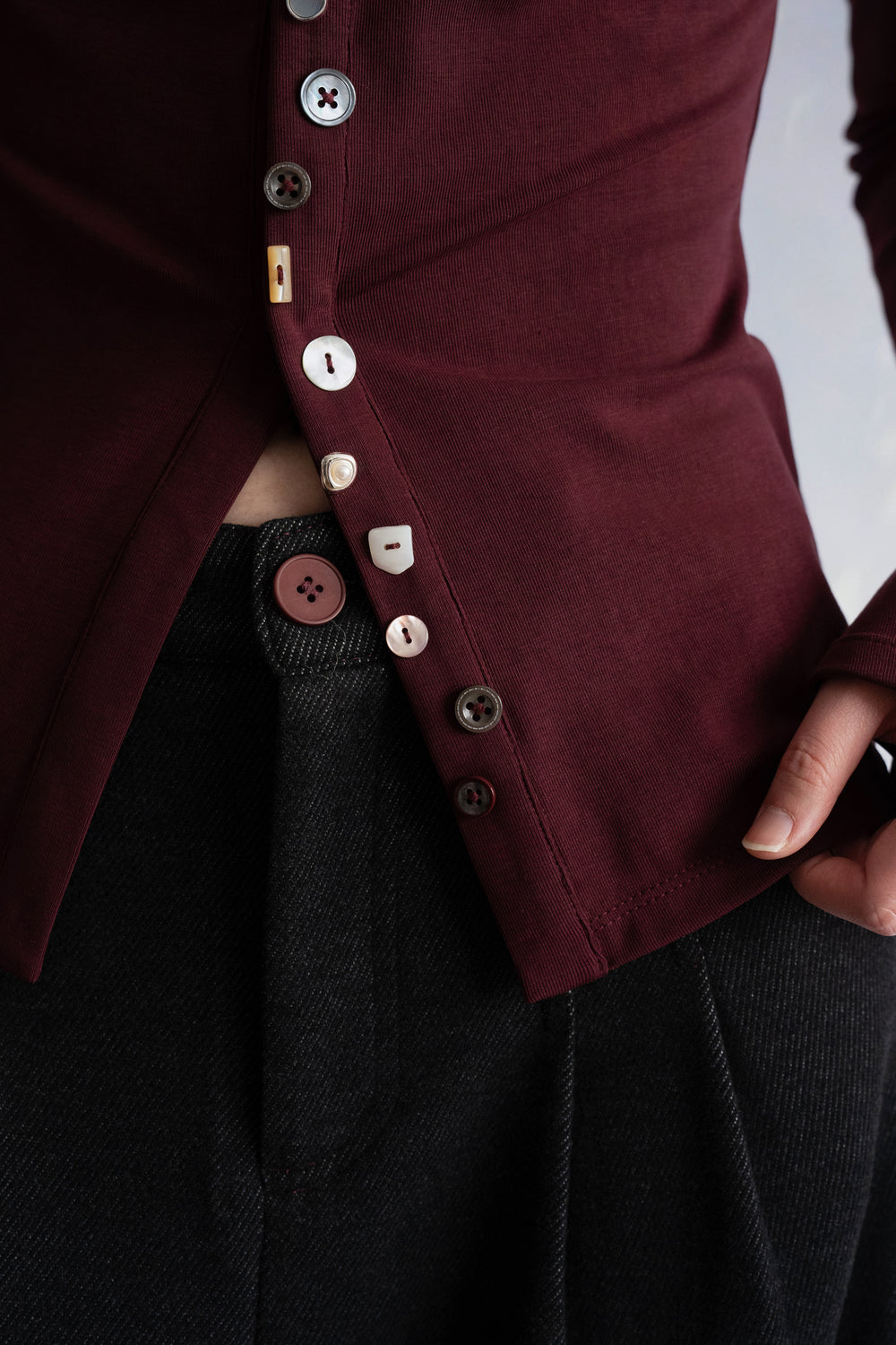 Crafted from premium Lyocell jersey in an exclusive custom-dyed rum red, this piece boasts an exquisite vintage vibe.