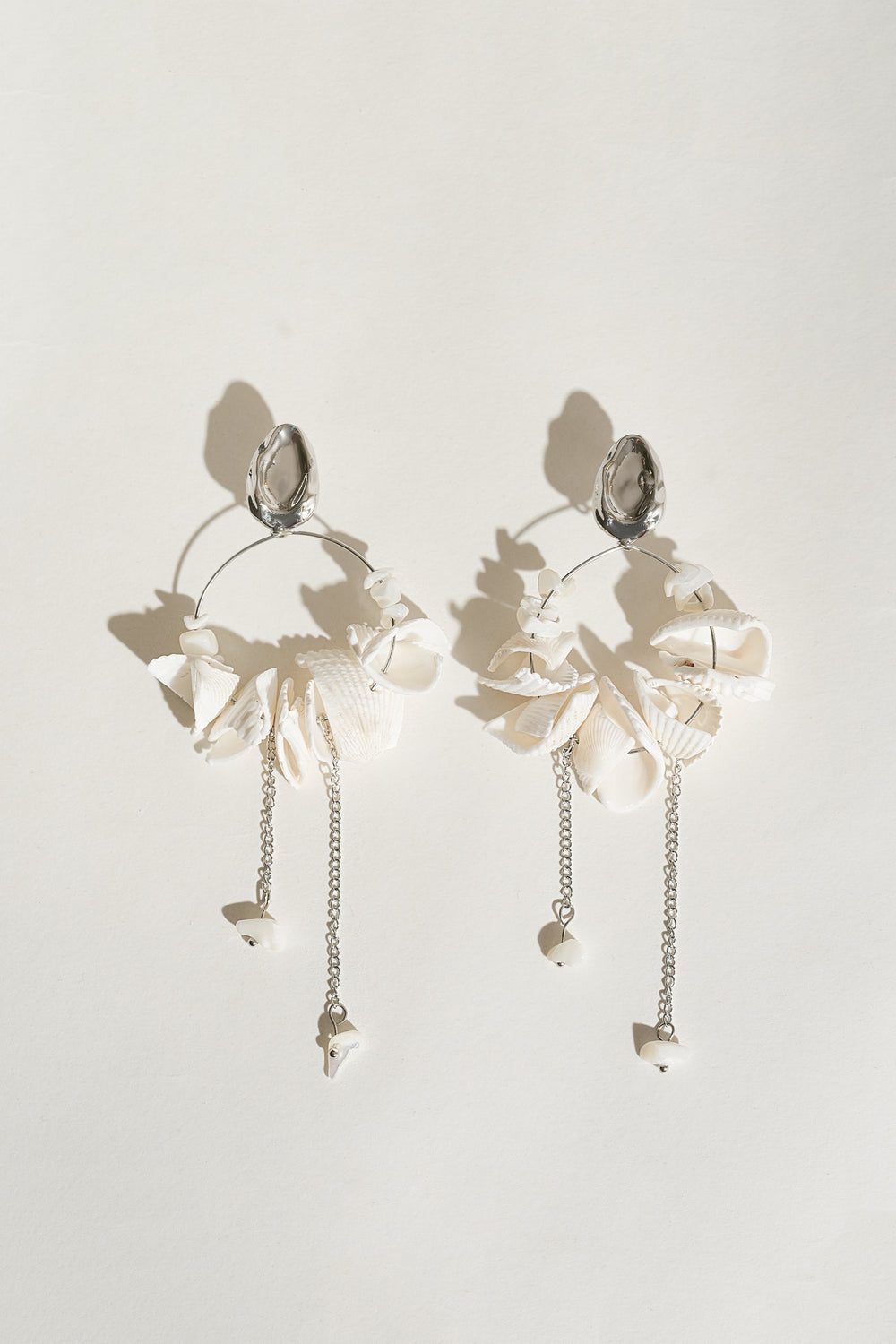 Our Shell Play earrings are hand made from strung with shells that vary in size for a unique oversized shape.