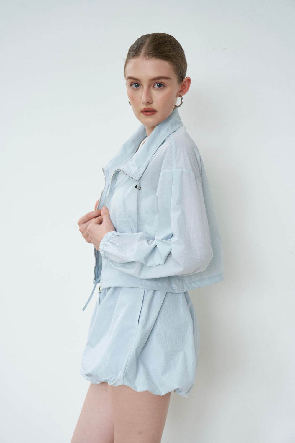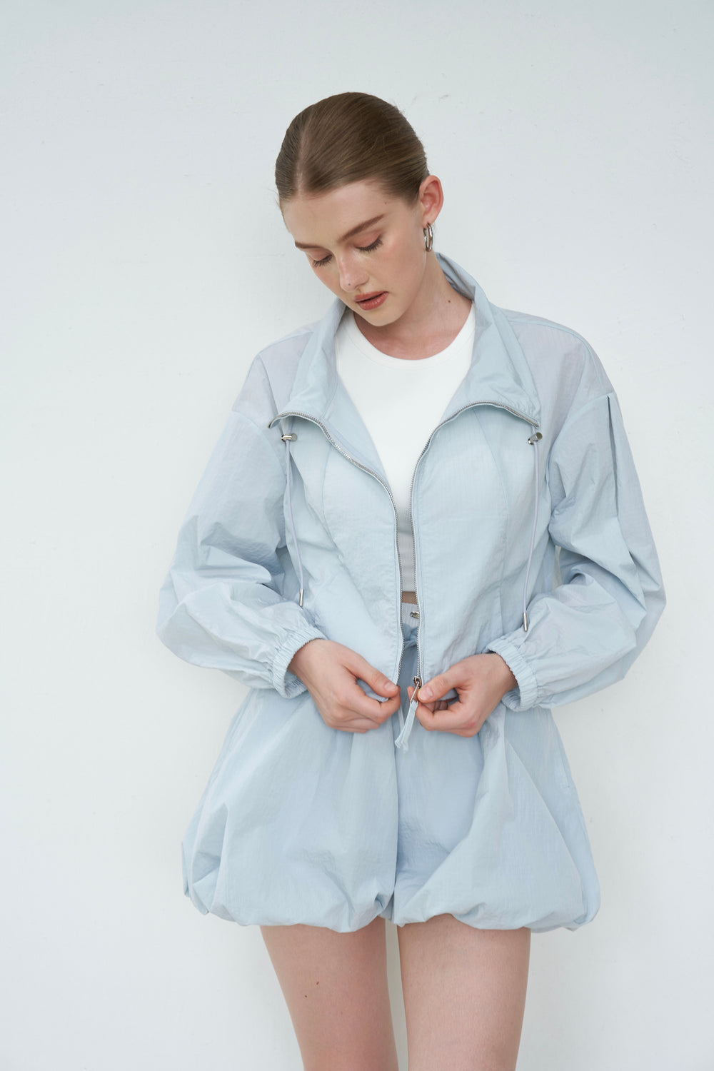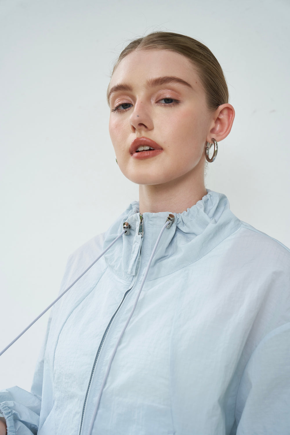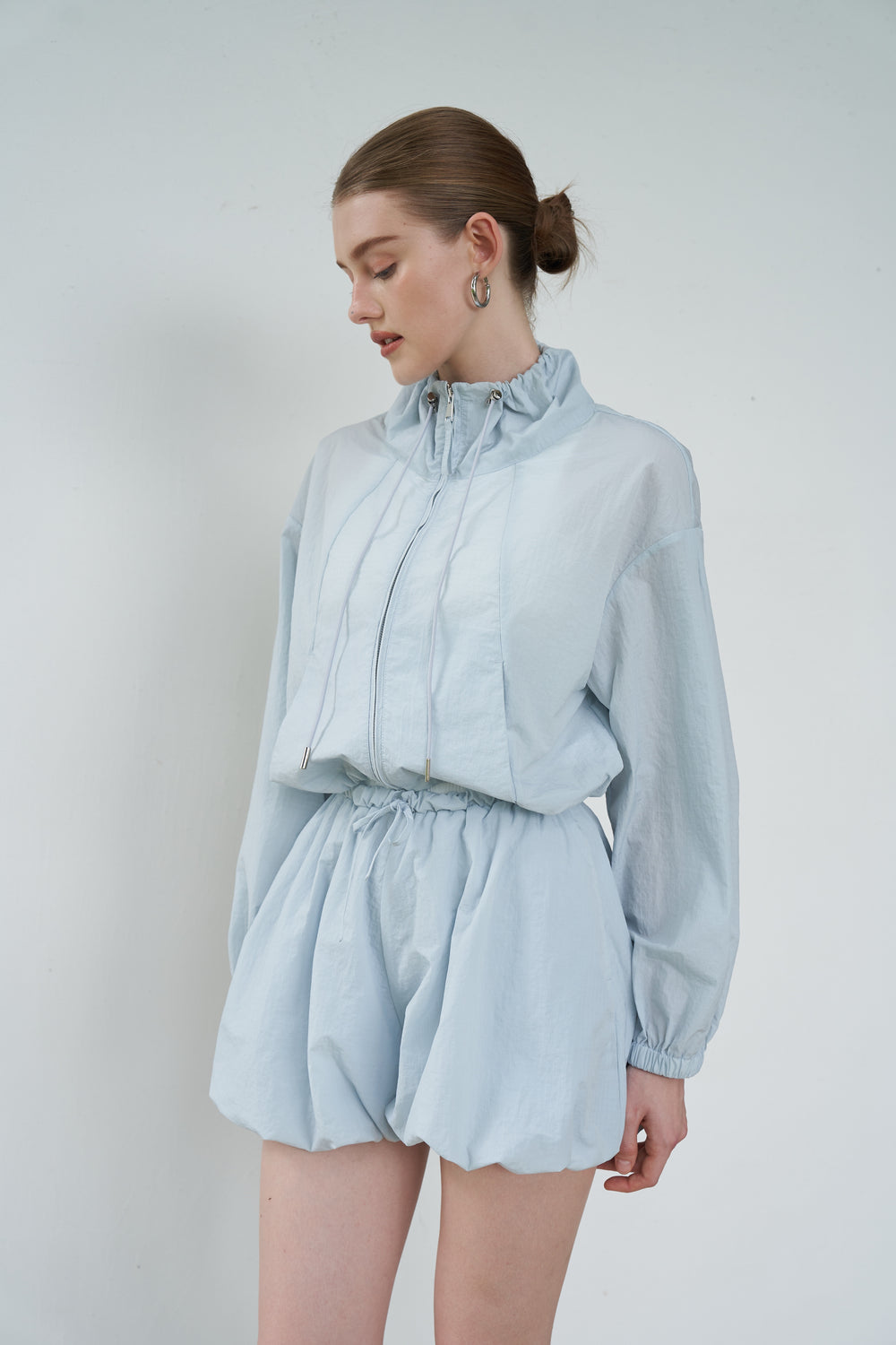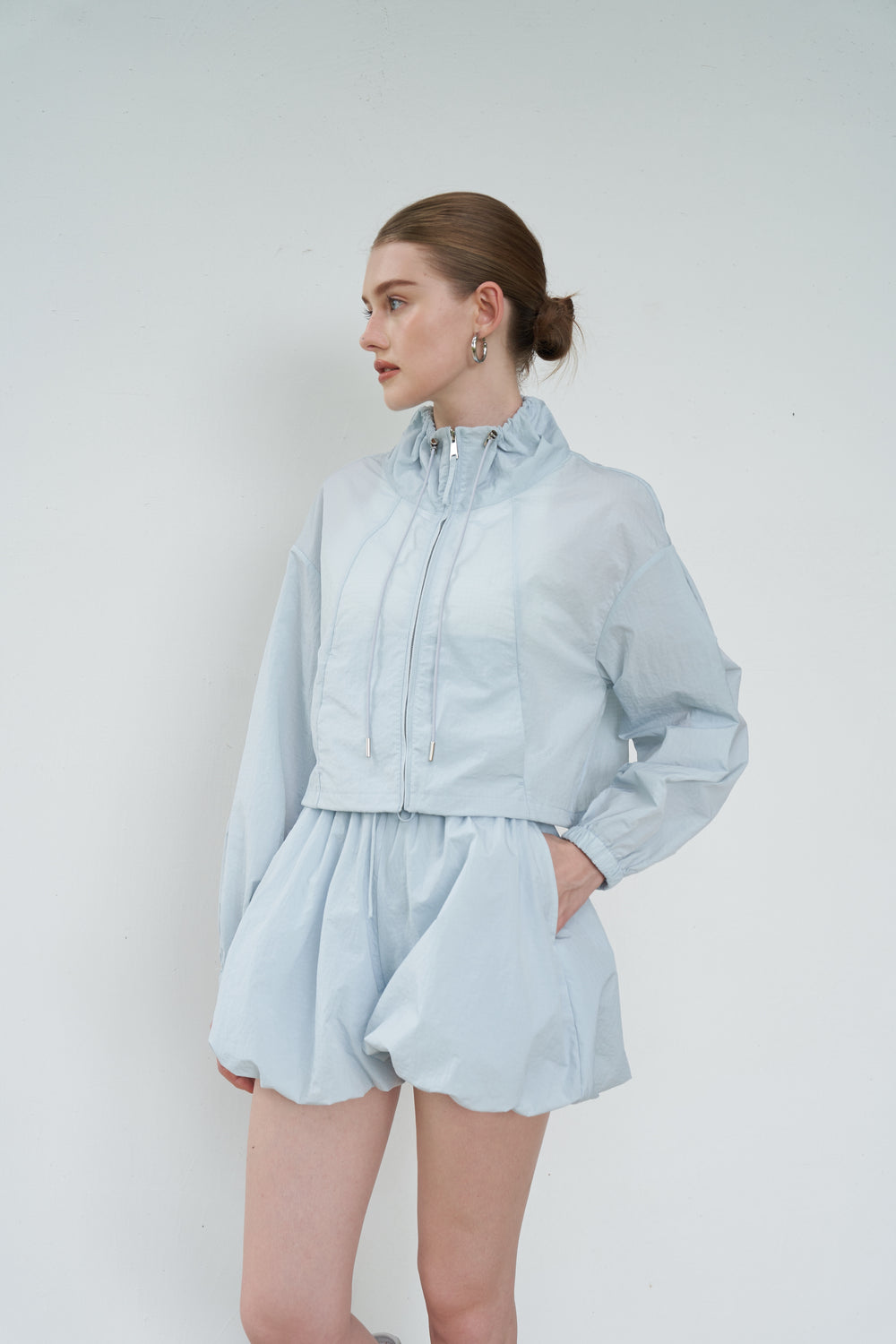 Cut from slightly crinkled waterproof, windproof shell that's breathable.