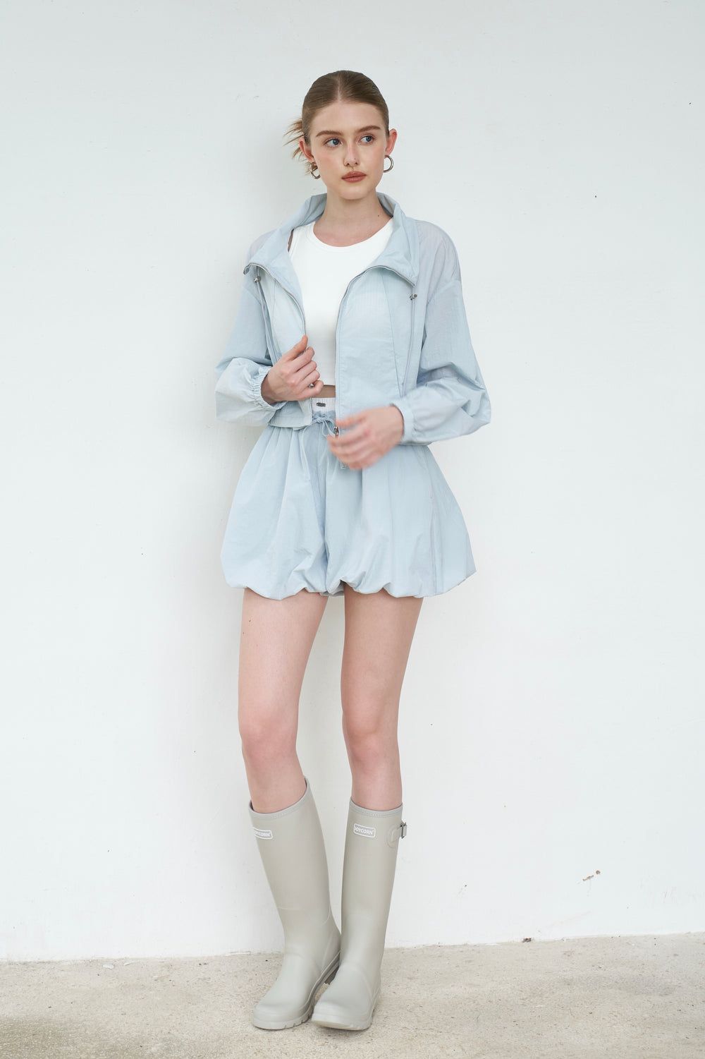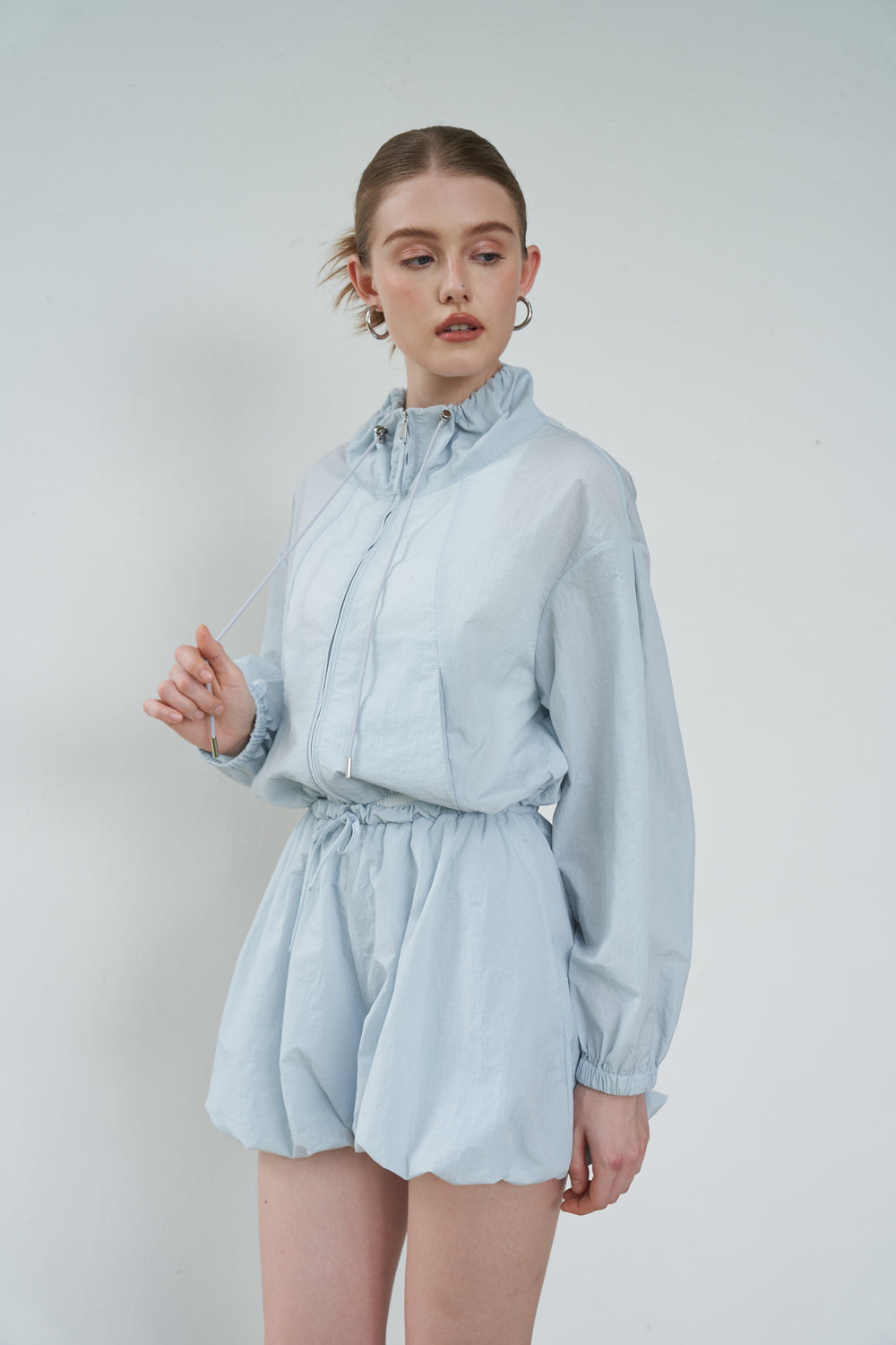 Our skyline set is cut from slightly crinkled waterproof, windproof shell that's breathable.