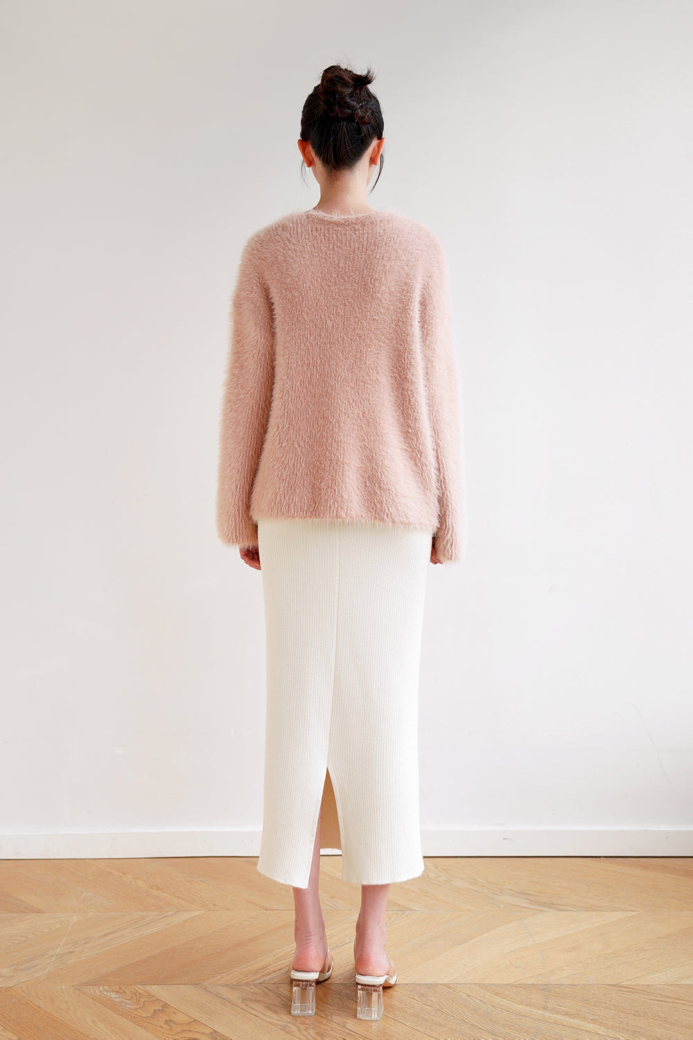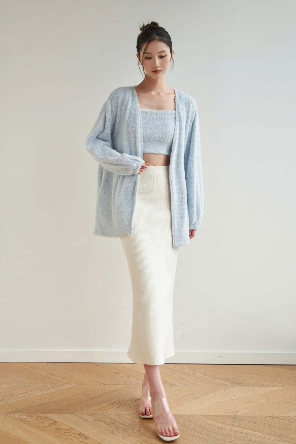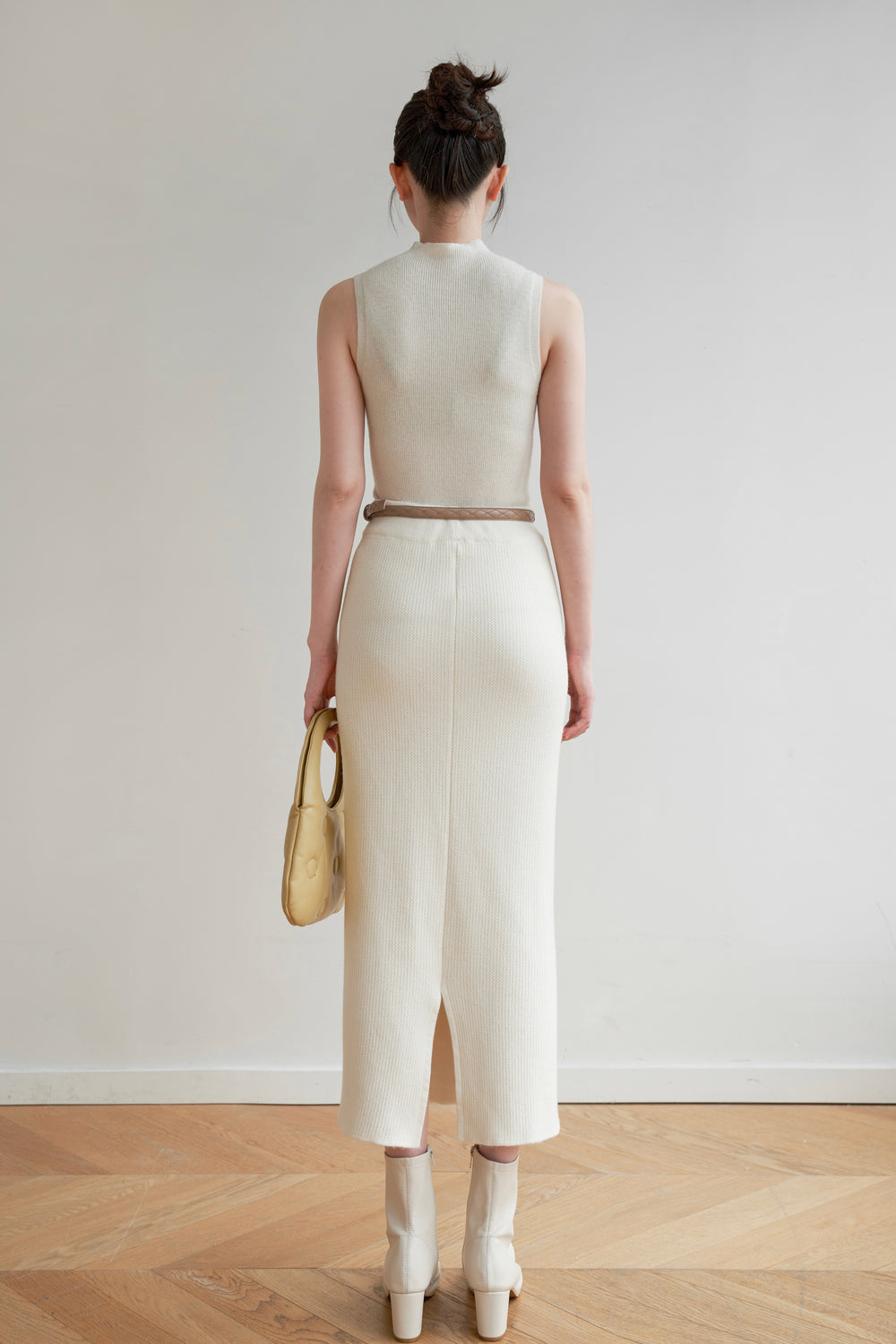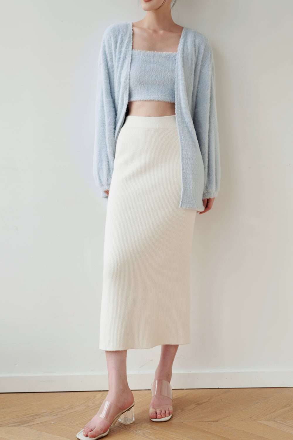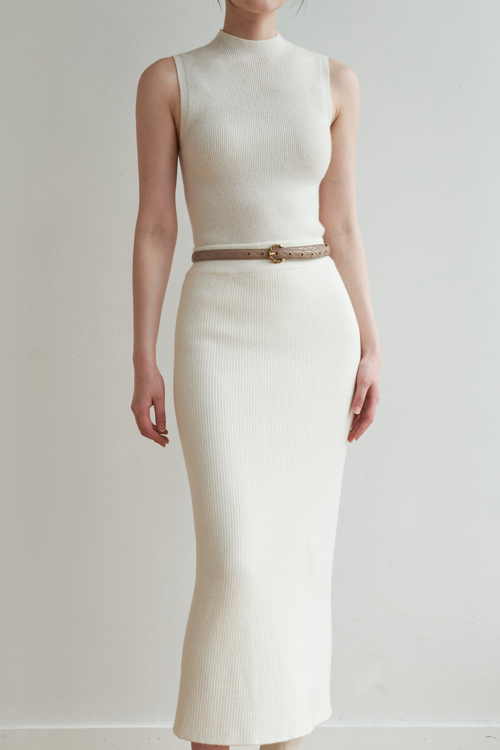 Our cozy takes on the classic pencil skirt is made from waffle-knit.