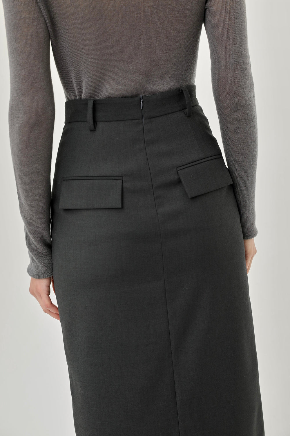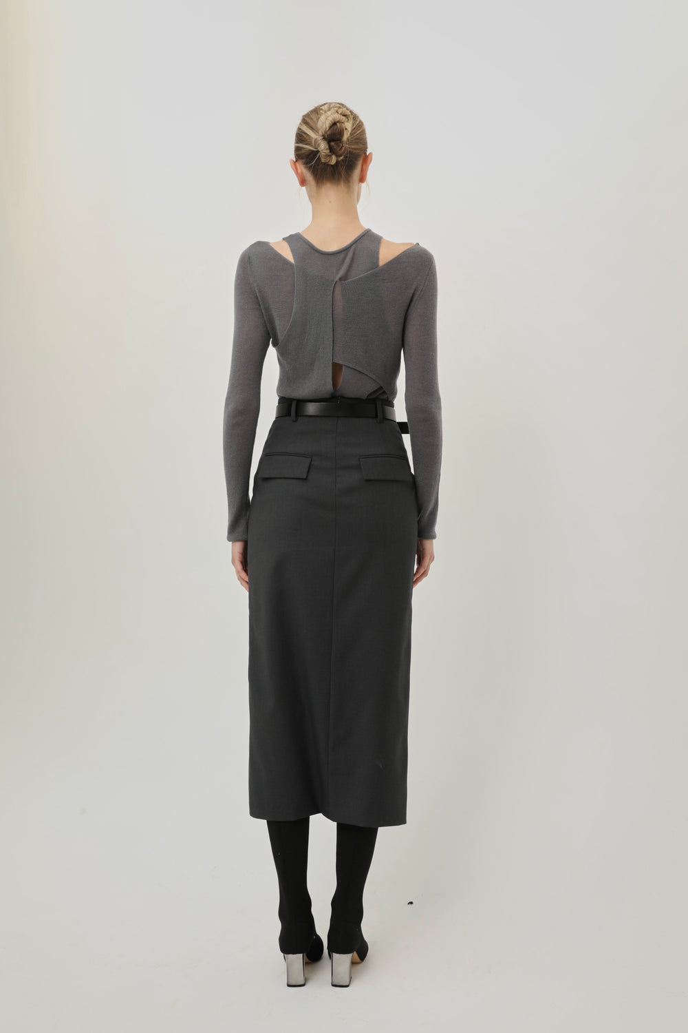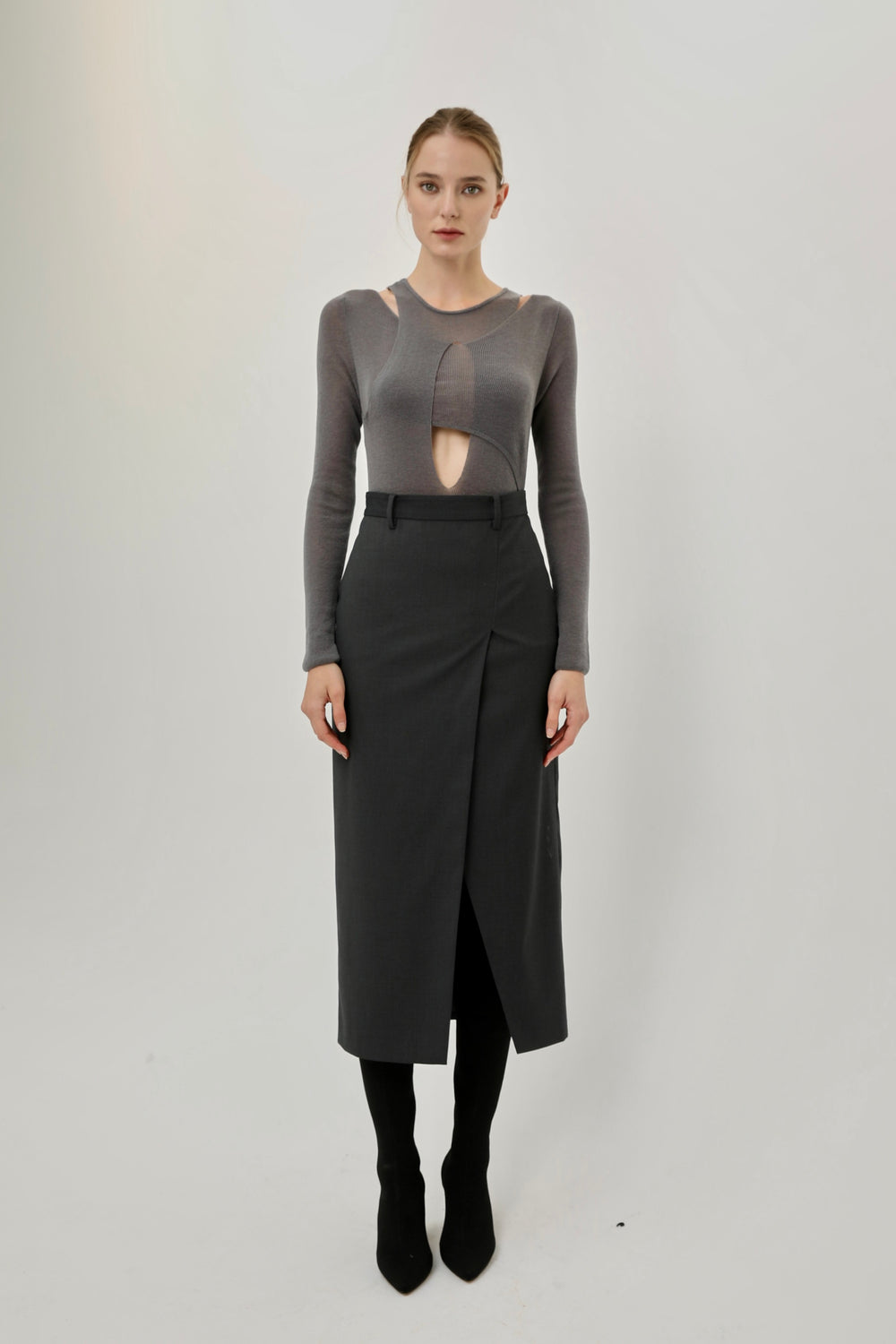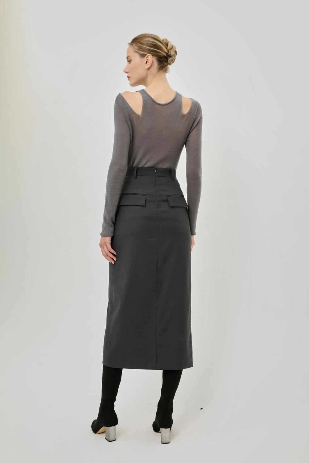 Inspired by the classic pencil styles, our Stimulation skirt falls in an elegant maxi length and a dramatic front split.