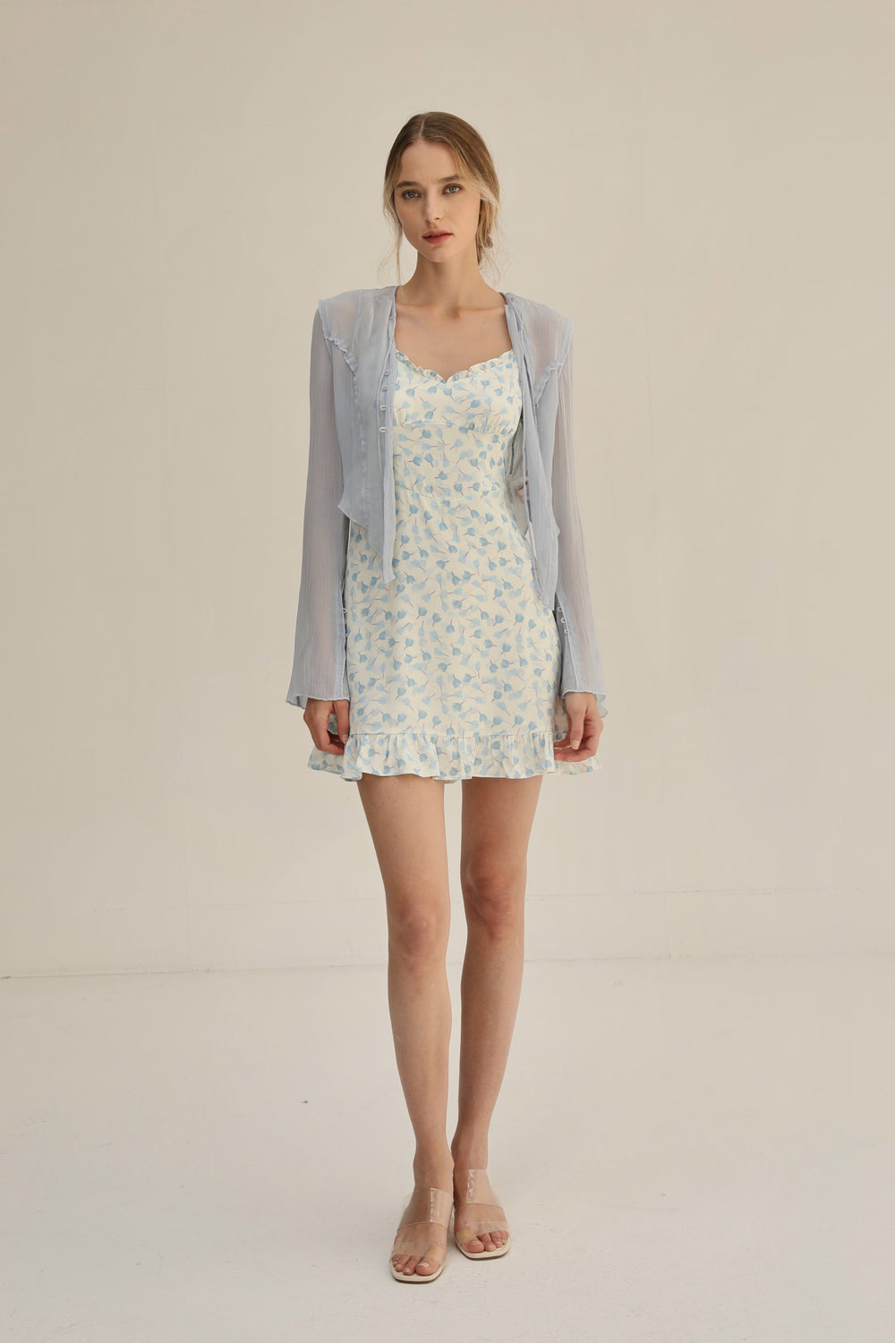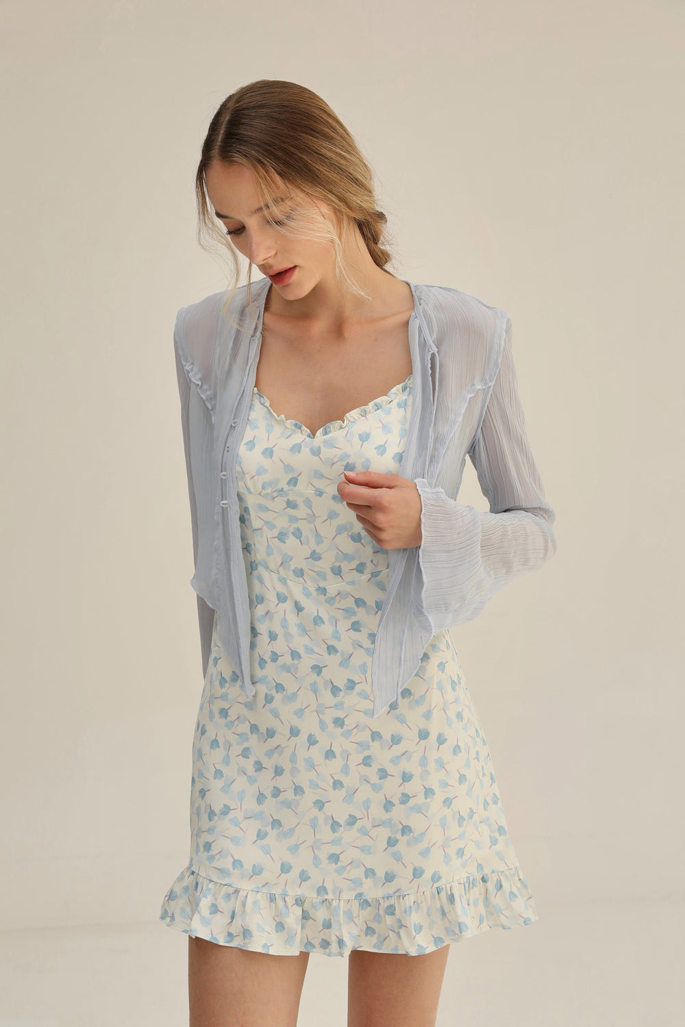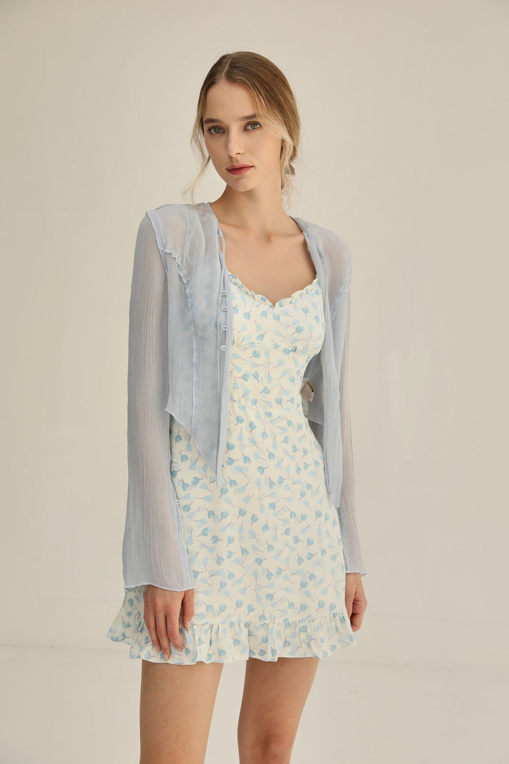 Soaking in the sunshine. Made from lightweight viscose and rayon blend with tonal blue