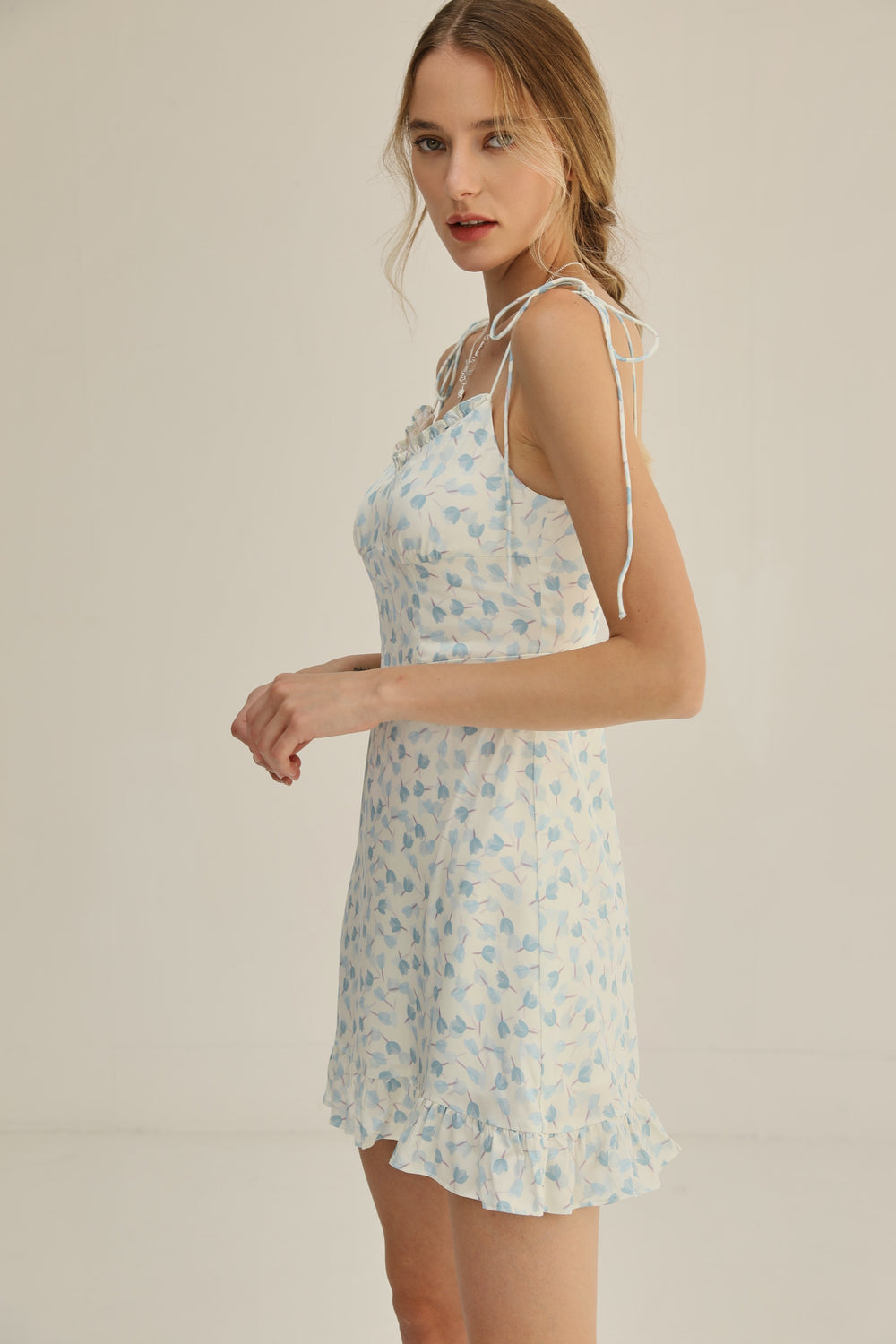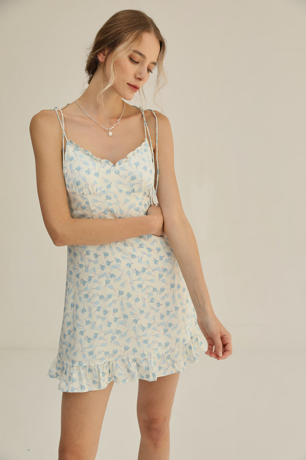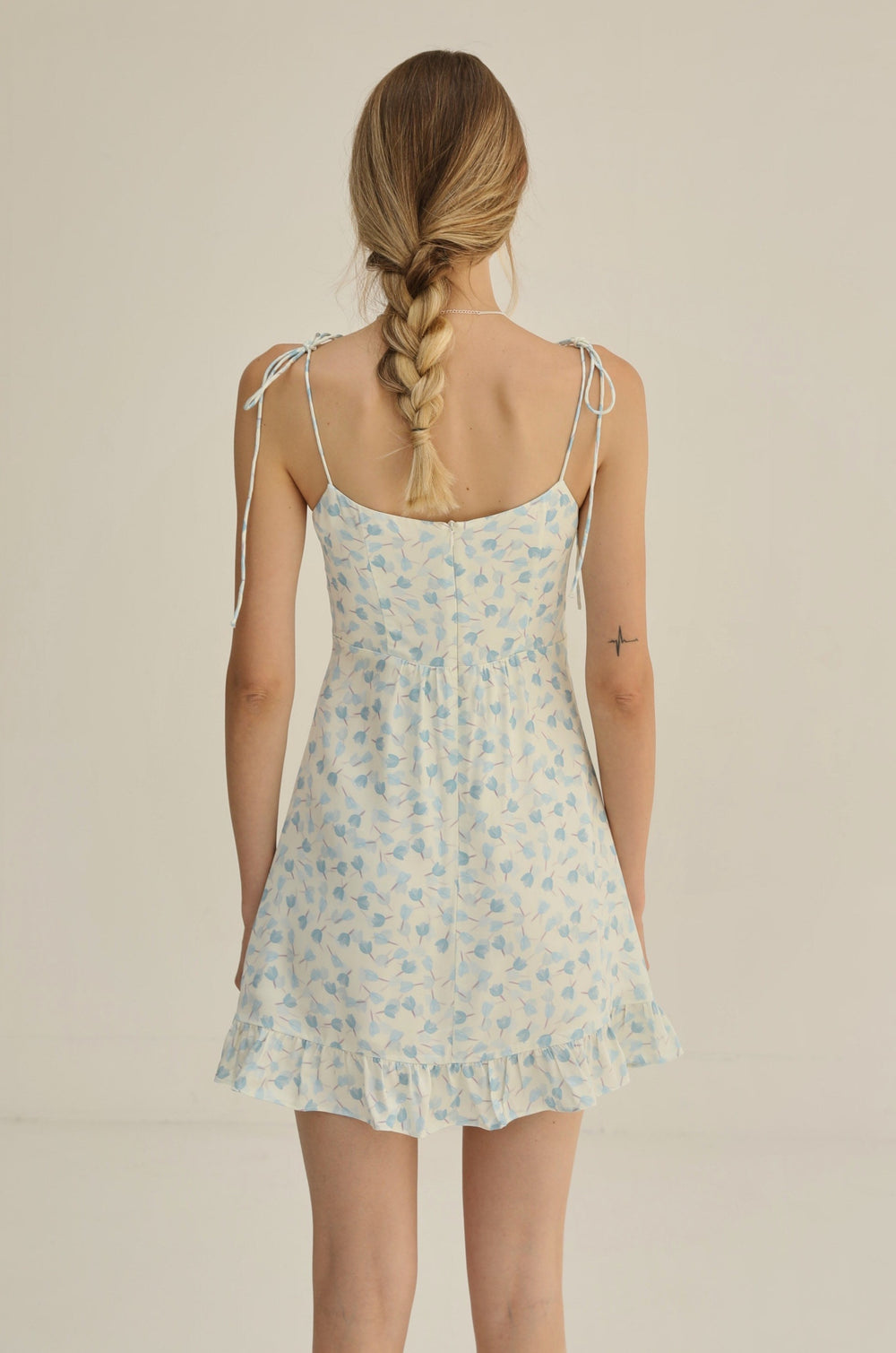 Soaking in the sunshine. Made from lightweight viscose and rayon blend with tonal blue