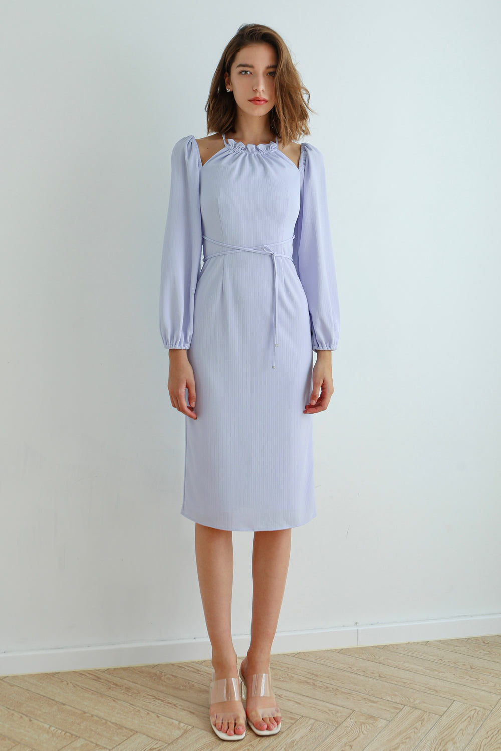 Cold shoulders break up the otherwise demure silhouette of our Vivian dress.