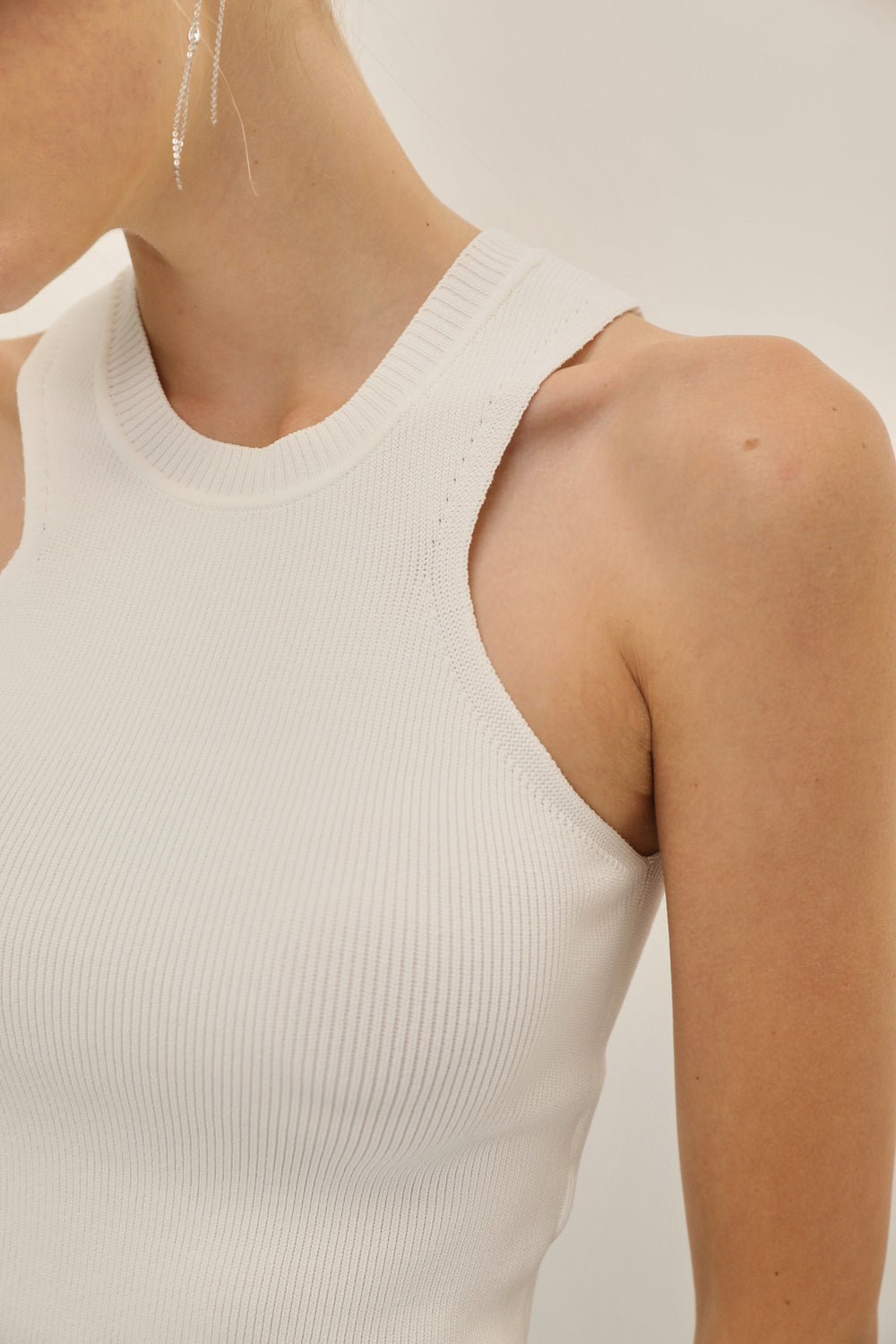Endless versatile. Our Vince tank is cut from white ribbed-knit for a close fit.