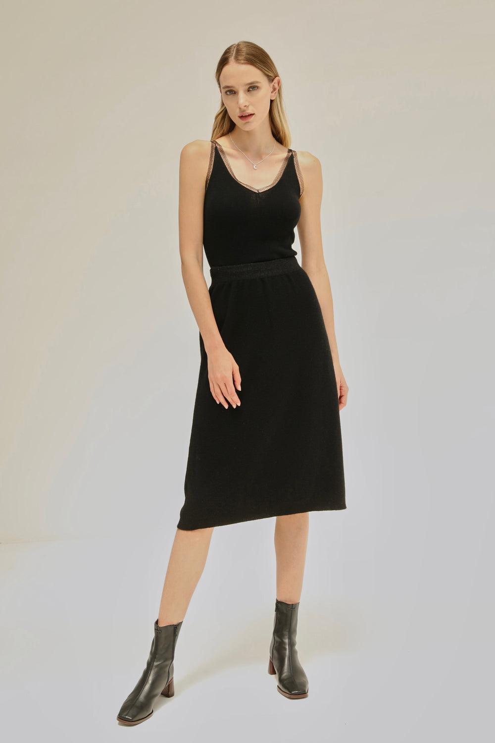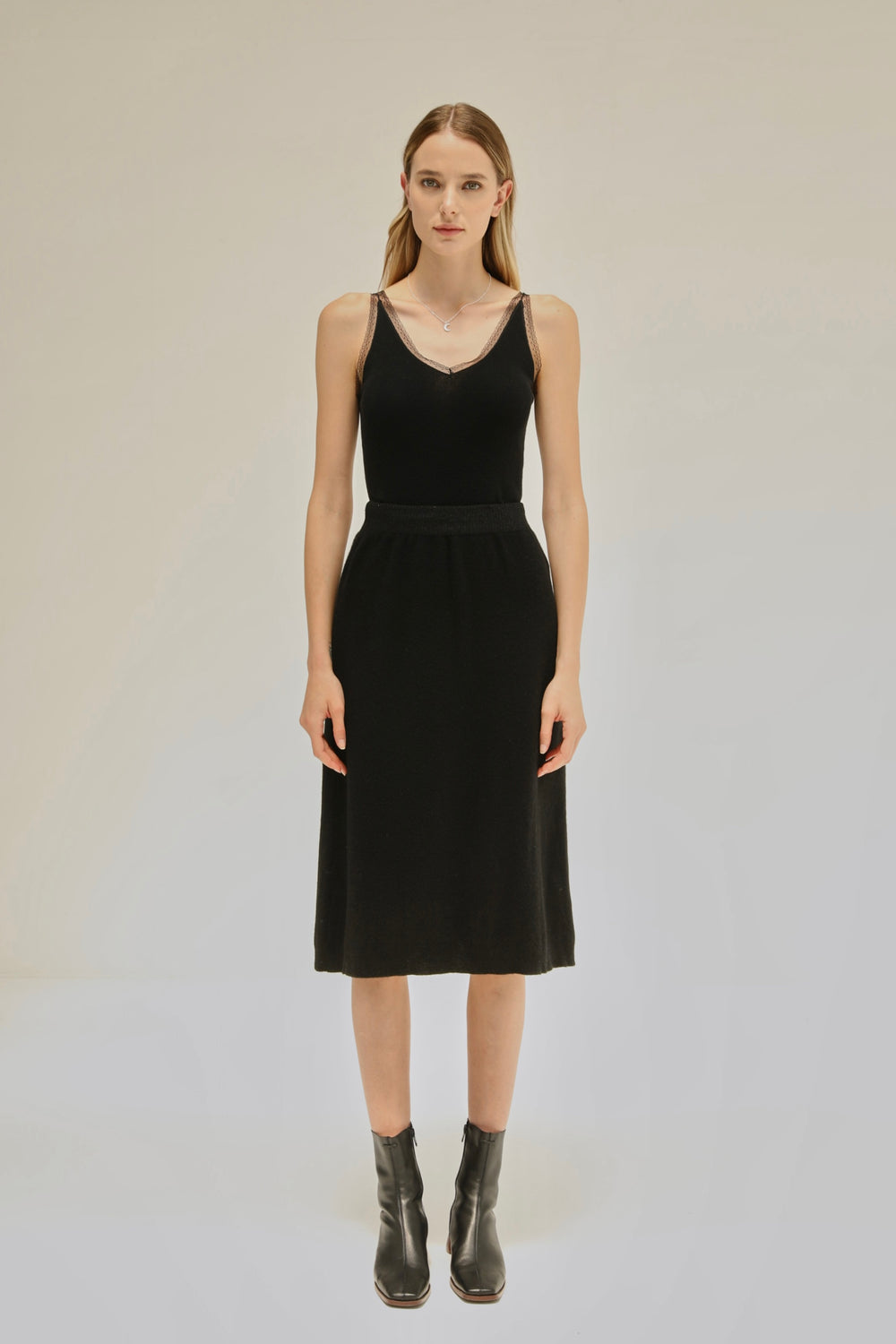 Equally suited for the office or leisure hour, this wool midi skirt has a soft handle and a ribbed elasticated waistband.